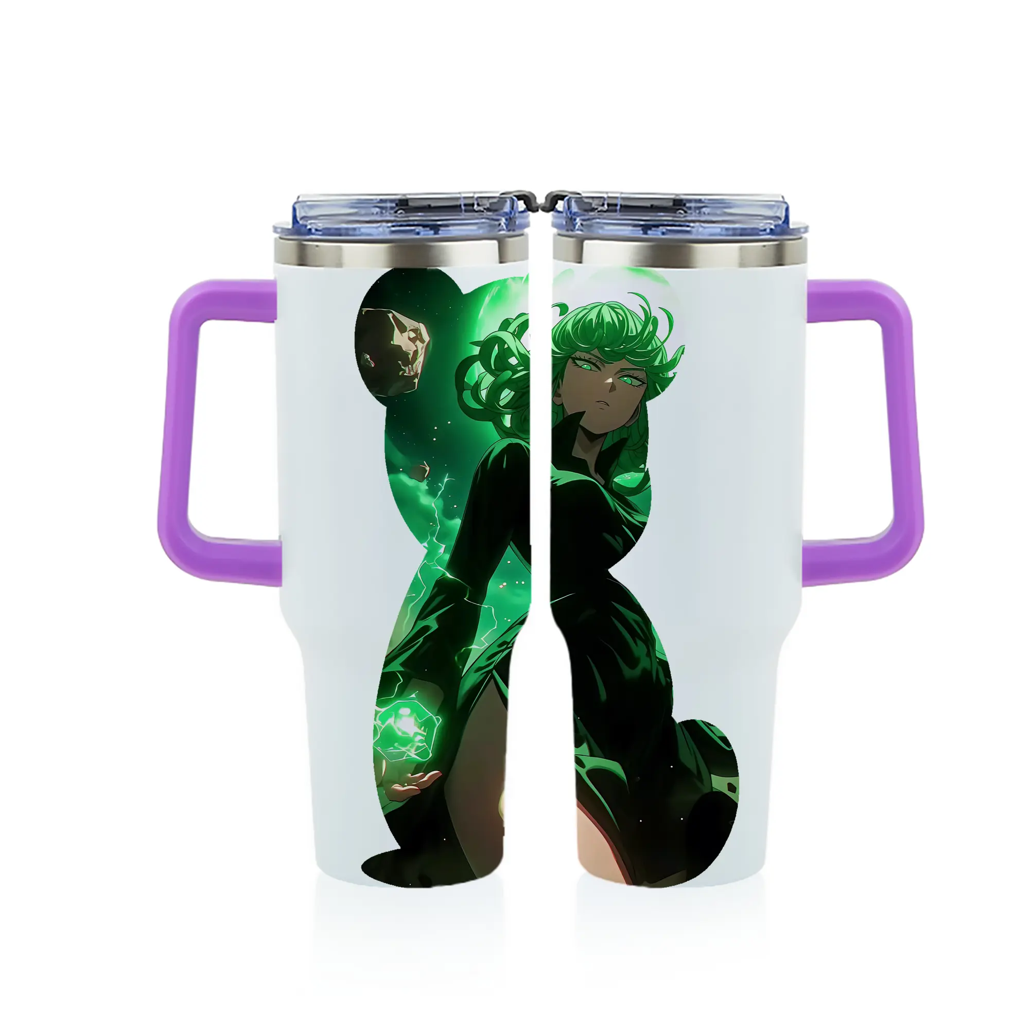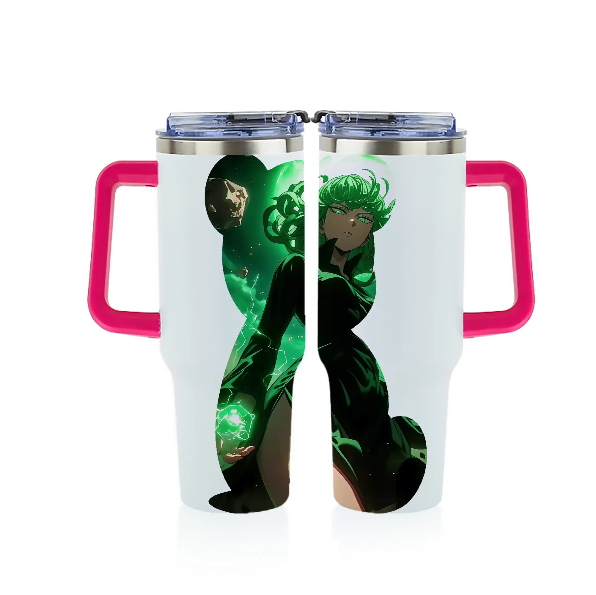 ワンパンマン グッズ 戦慄のタツマキ - 1200mL フルプリント車用タンブラー ・ 304ステンレス 内側 ・ 201ステンレス 外側 ・ 保温 保冷 ・ 通勤 ドライブ アウトドア用