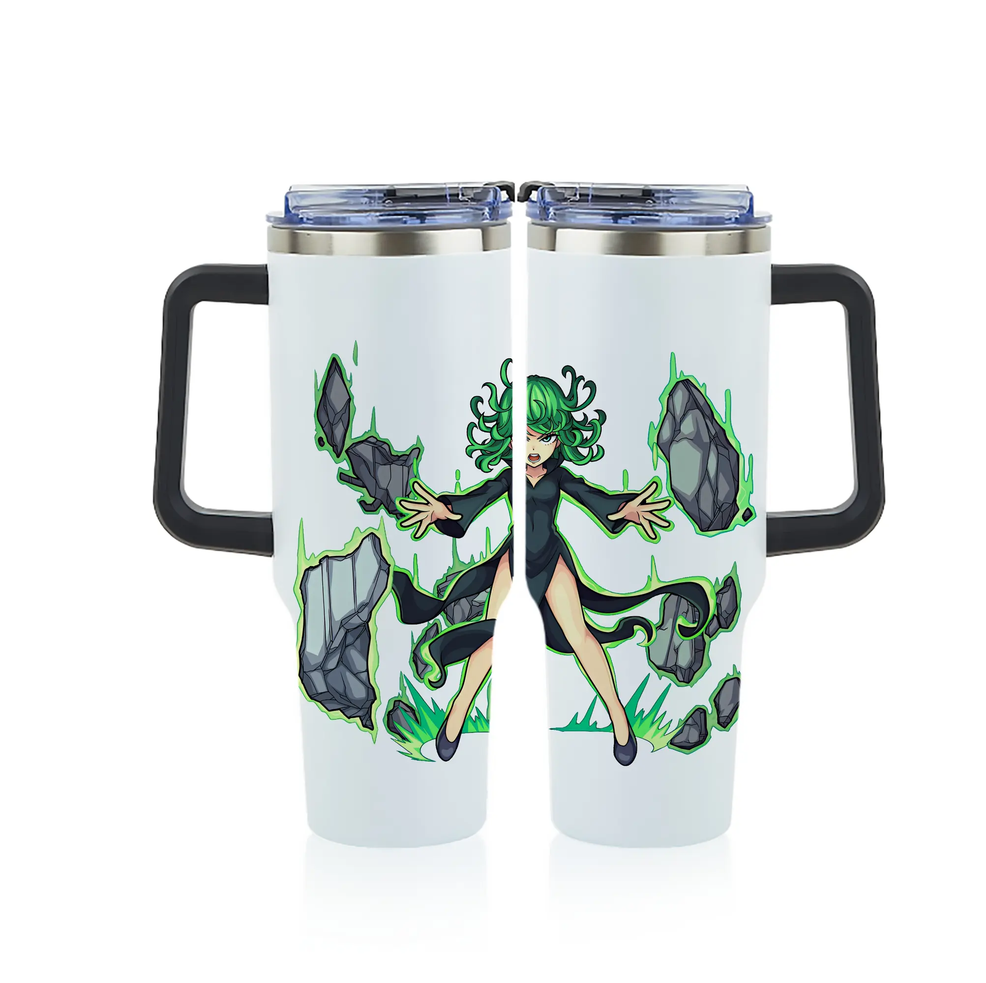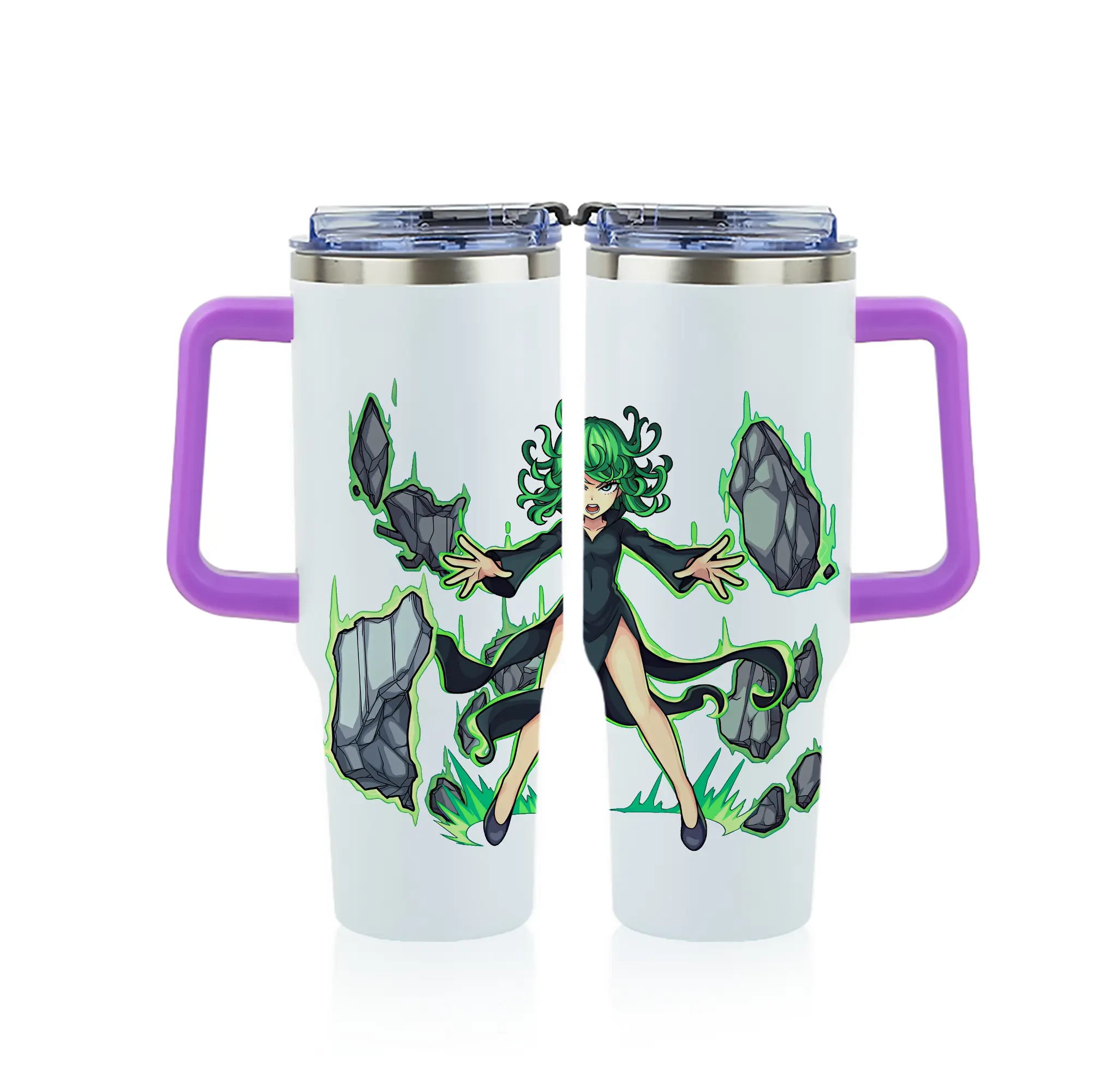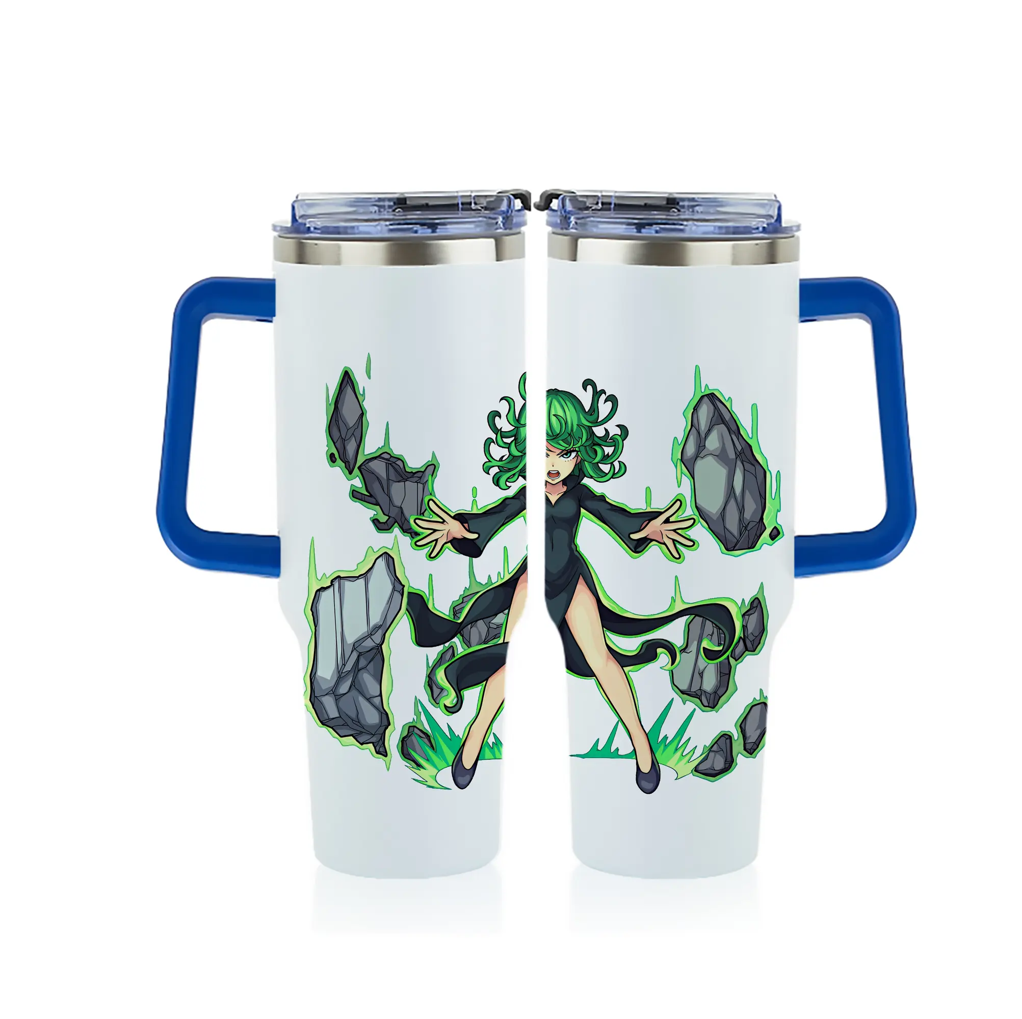 ワンパンマン グッズ 戦慄のタツマキ - 1200mL フルプリント車用タンブラー ・ 304ステンレス 内側 ・ 201ステンレス 外側 ・ 保温 保冷 ・ 通勤 ドライブ アウトドア用