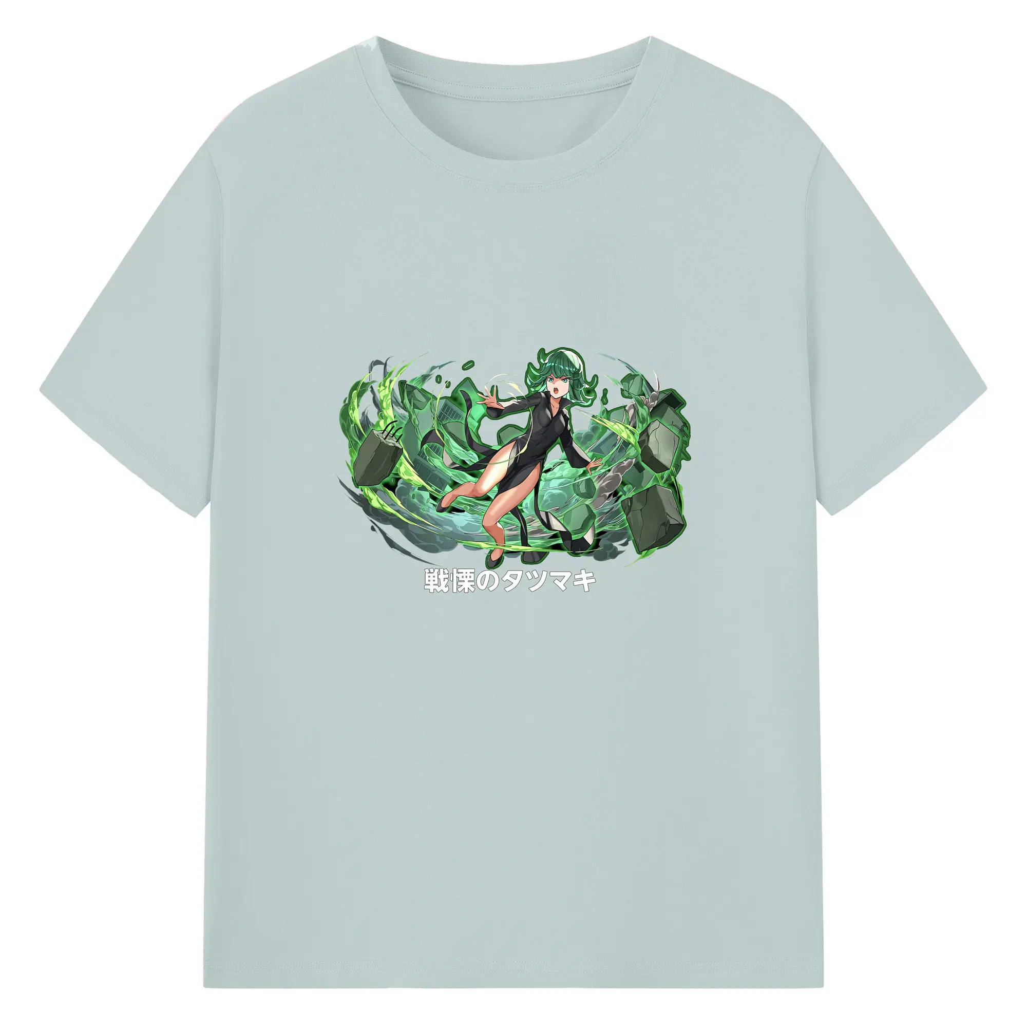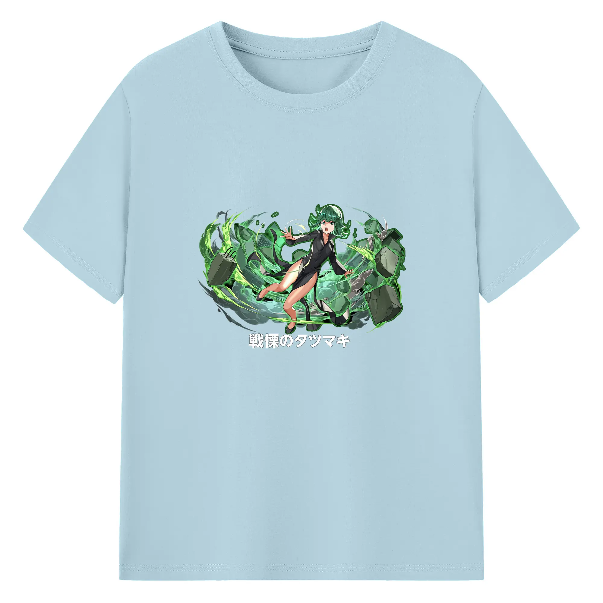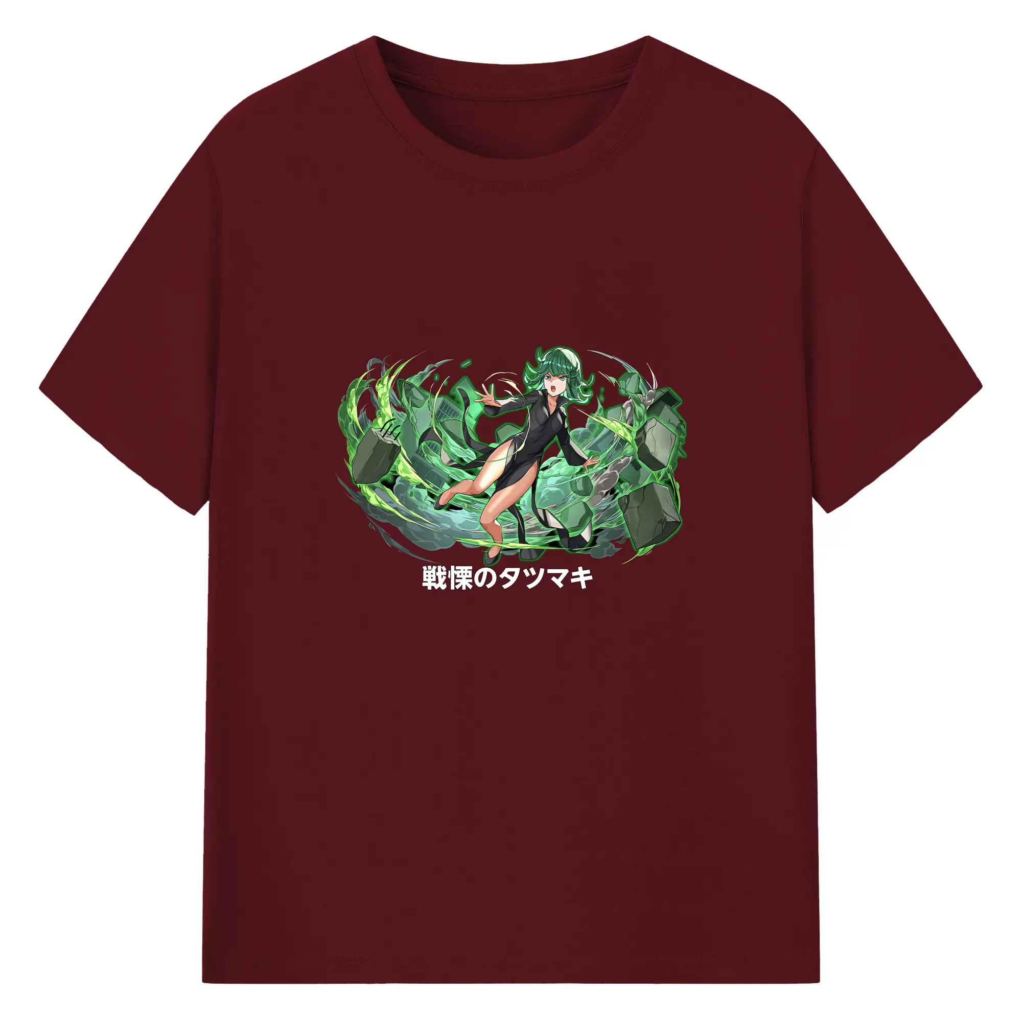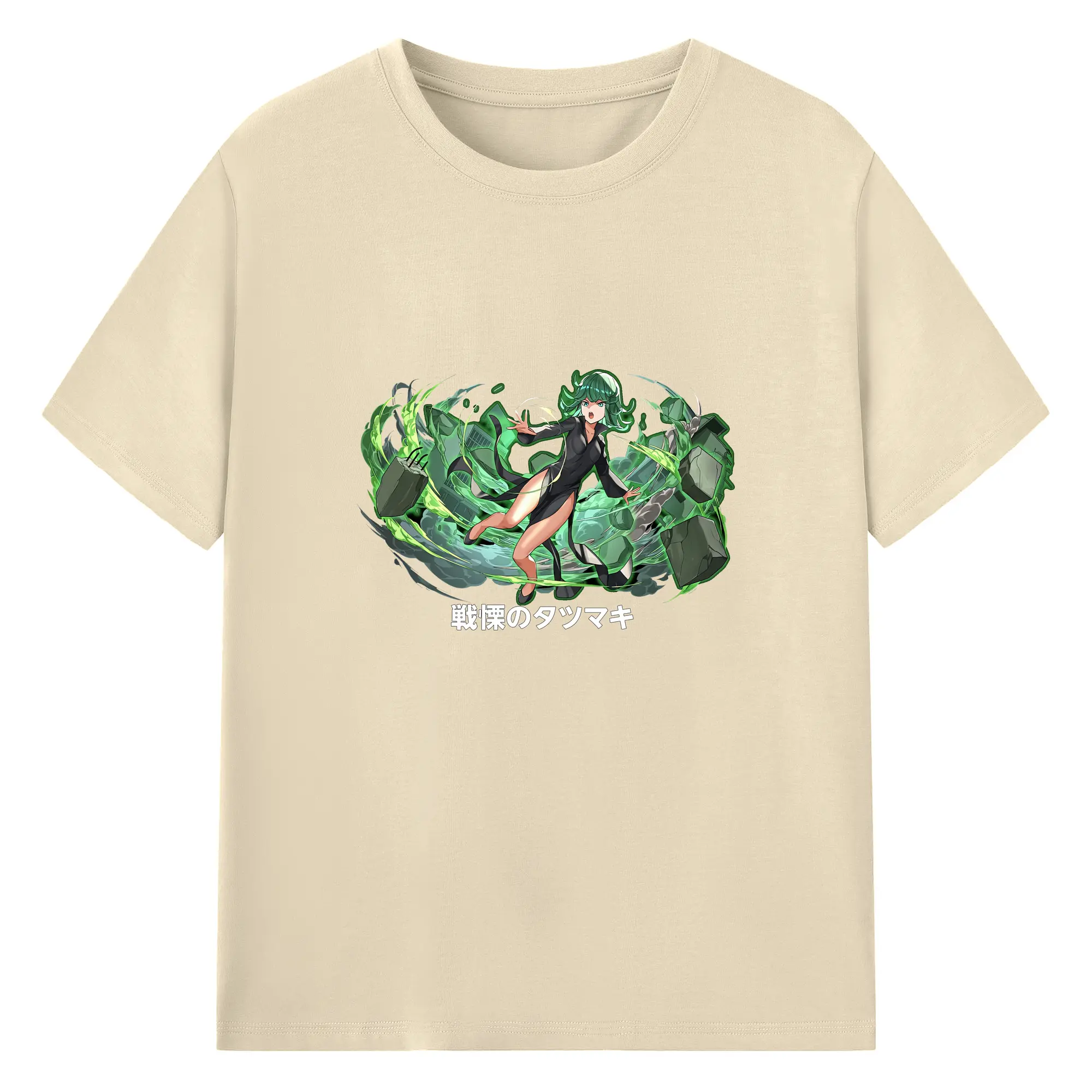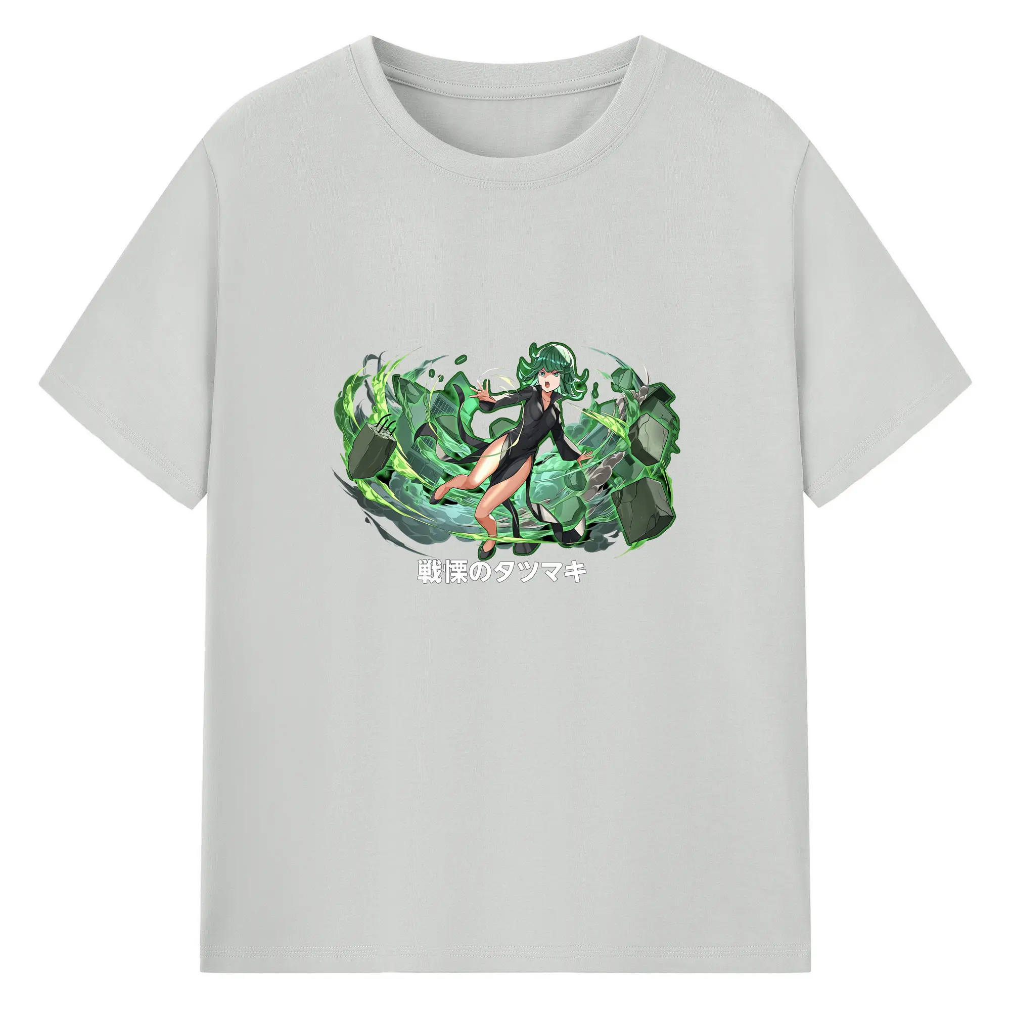 ワンパンマン グッズ 戦慄のタツマキ - 綿100% 半袖Tシャツ ・ バックプリント ・ 快適 通気性 ・ 日常使い 散歩 スポーツ用