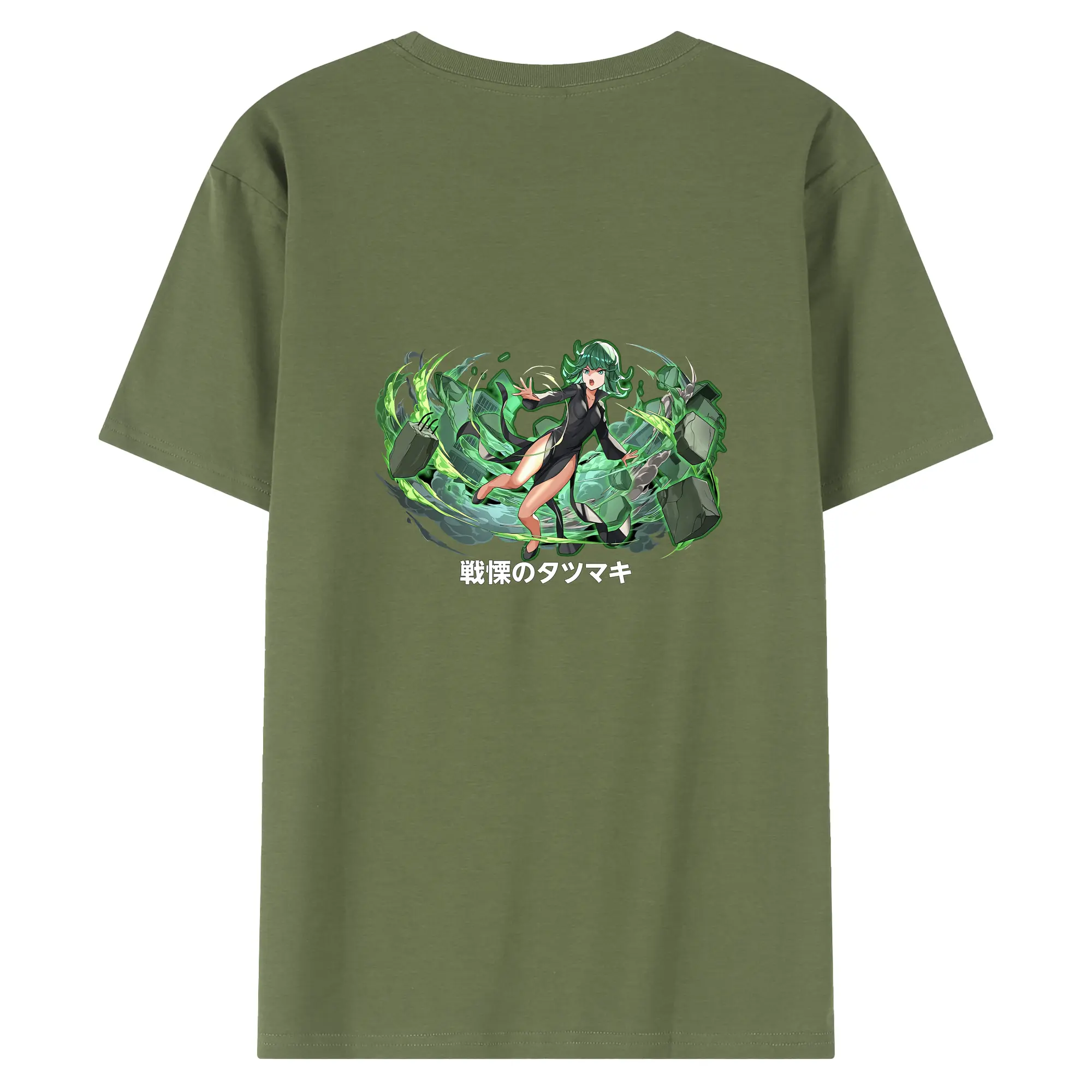 ワンパンマン グッズ 戦慄のタツマキ - 綿100% 半袖Tシャツ ・ フロントプリント ・ 快適 通気性 ・ 日常使い 散歩 スポーツ用