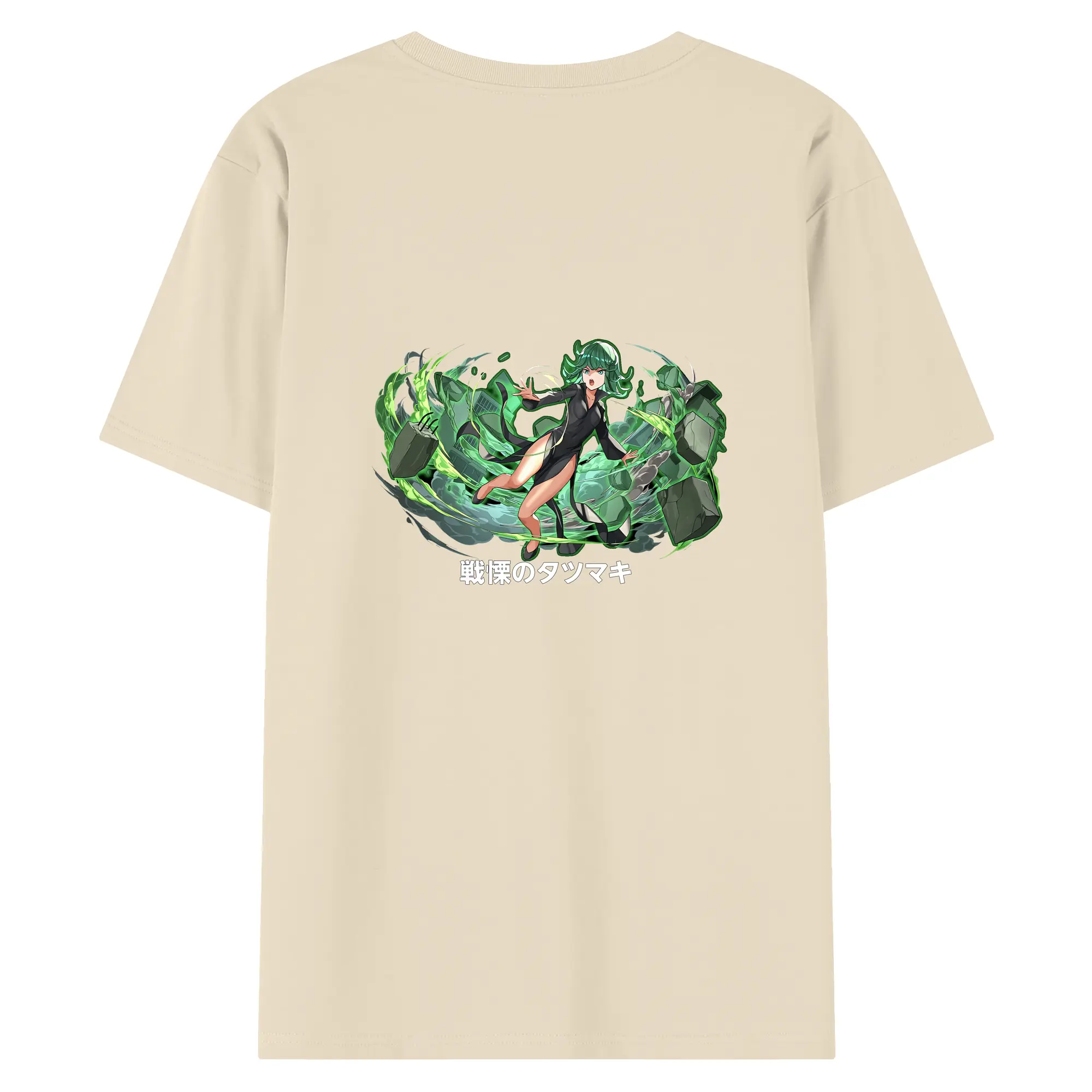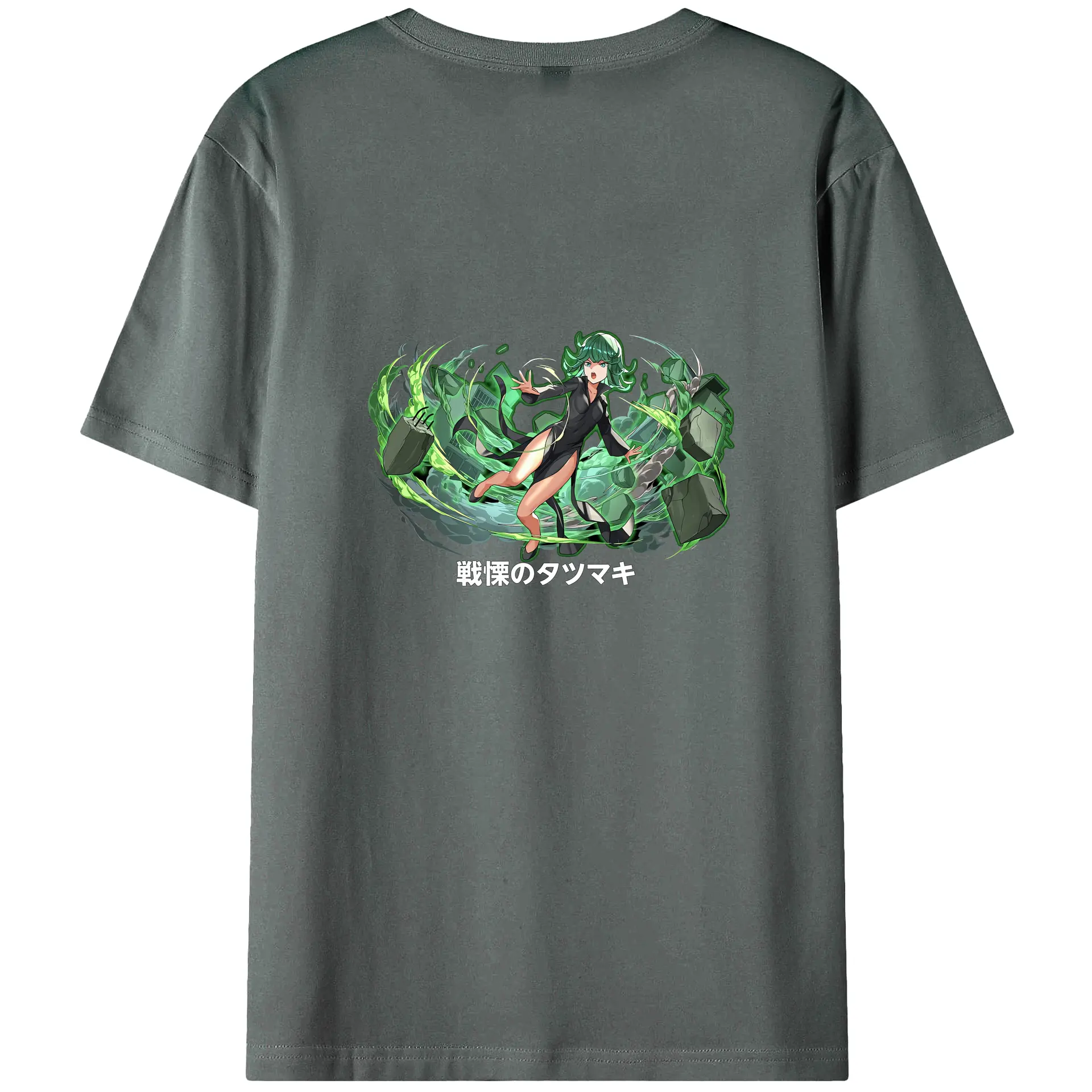 ワンパンマン グッズ 戦慄のタツマキ - 綿100% ヴィンテージ風 半袖Tシャツ ・ 背面プリント ・ 柔らか肌触り ・ 通気性 快適 ・ スポーツ カジュアル 外出用