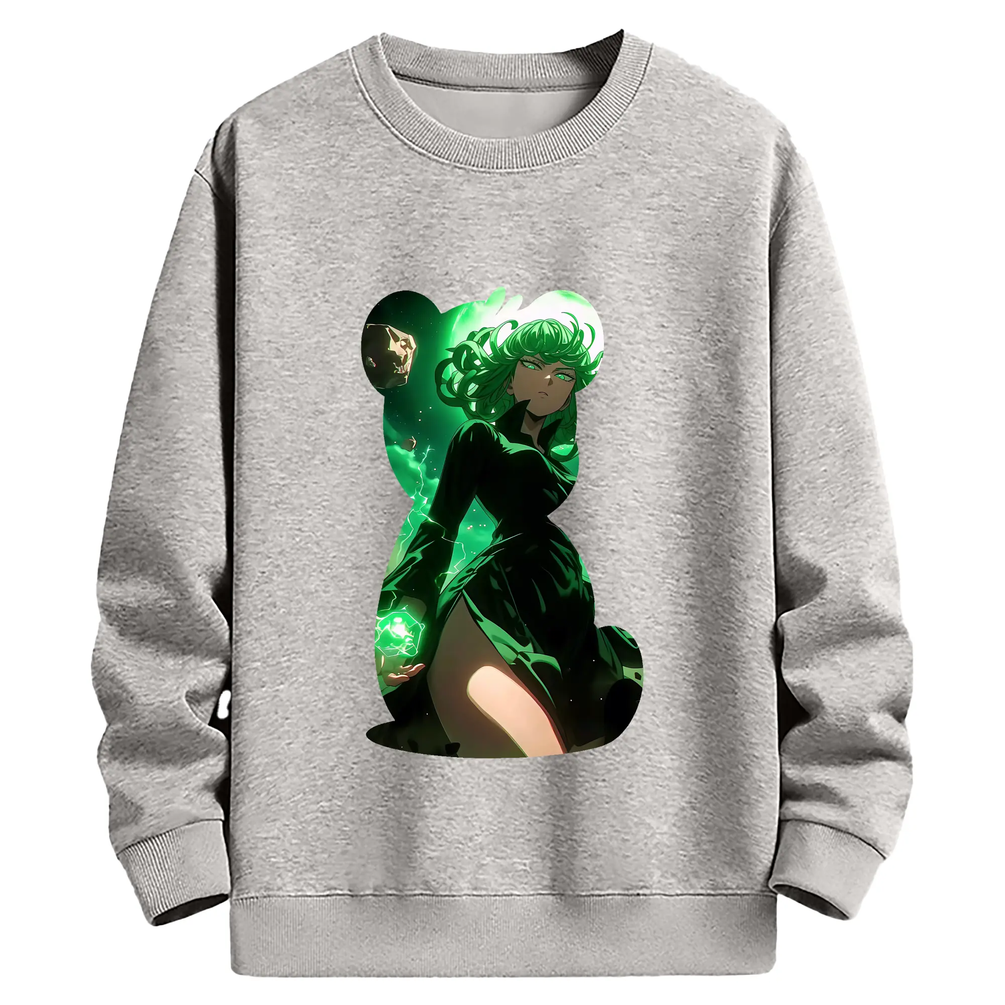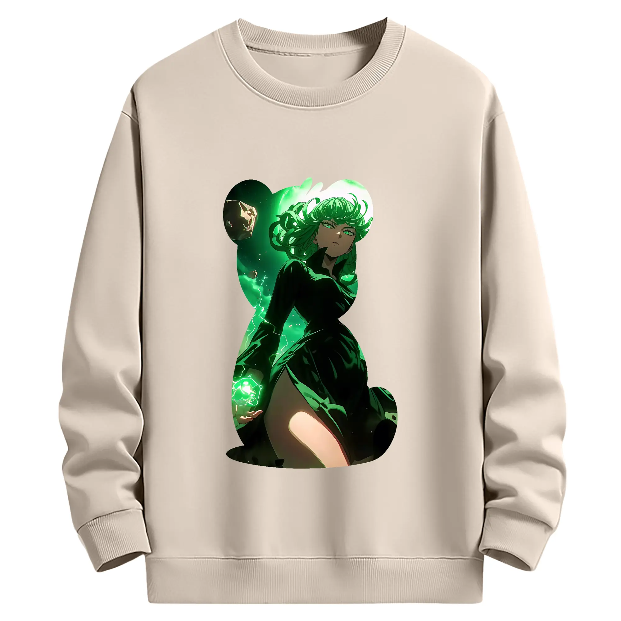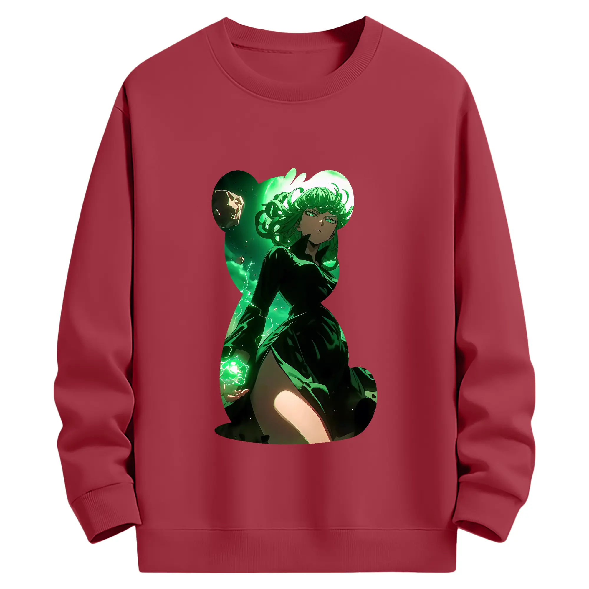 ワンパンマン グッズ 戦慄のタツマキ - 薄手 クルーネック スウェット 裏毛260g · ポリエステル 春秋向け カジュアル 男女兼用 · トレーナー デイリー スポーツ 散歩に最適