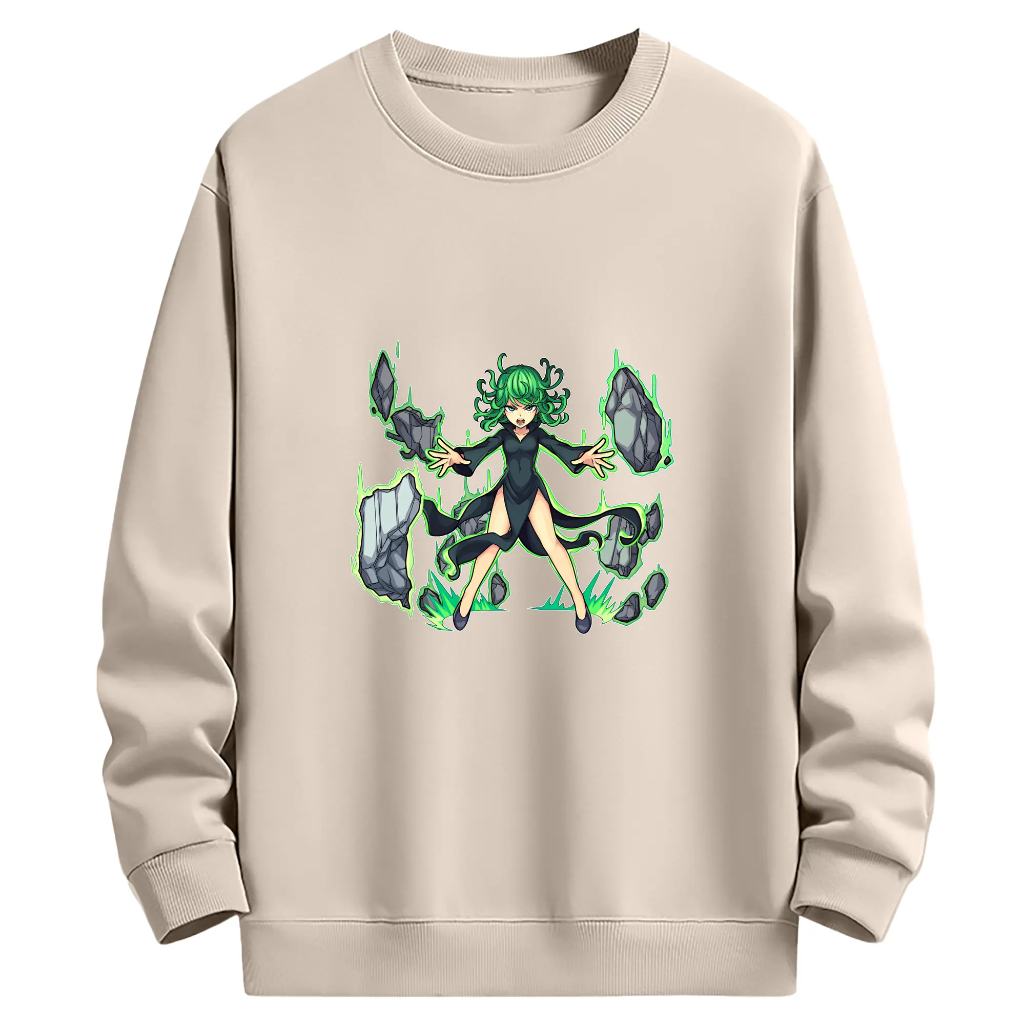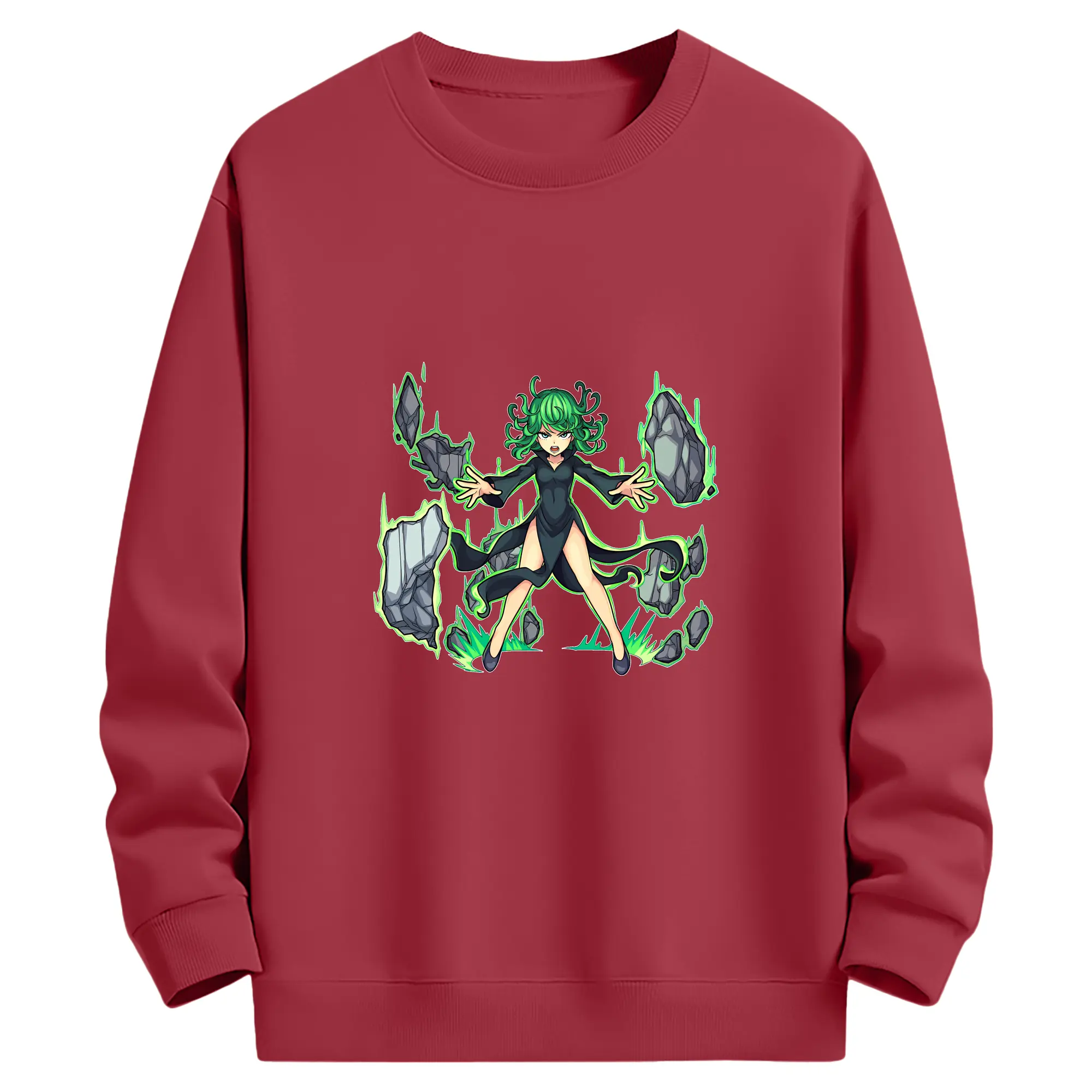 ワンパンマン グッズ 戦慄のタツマキ - 薄手 クルーネック スウェット 裏毛260g · ポリエステル 春秋向け カジュアル 男女兼用 · トレーナー デイリー スポーツ 散歩に最適