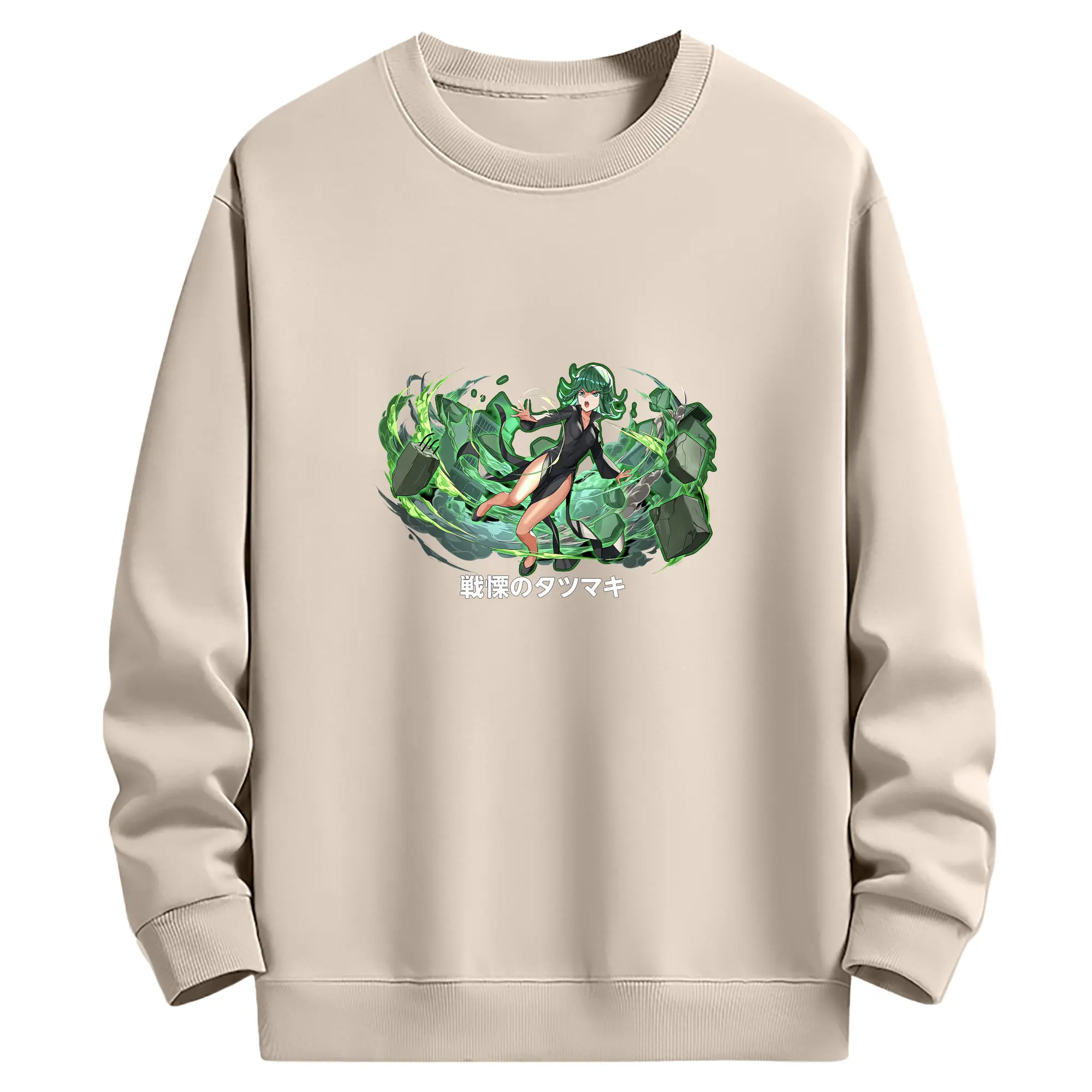ワンパンマン グッズ 戦慄のタツマキ - 薄手 クルーネック スウェット 裏毛260g · ポリエステル 春秋向け カジュアル 男女兼用 · トレーナー デイリー スポーツ 散歩に最適