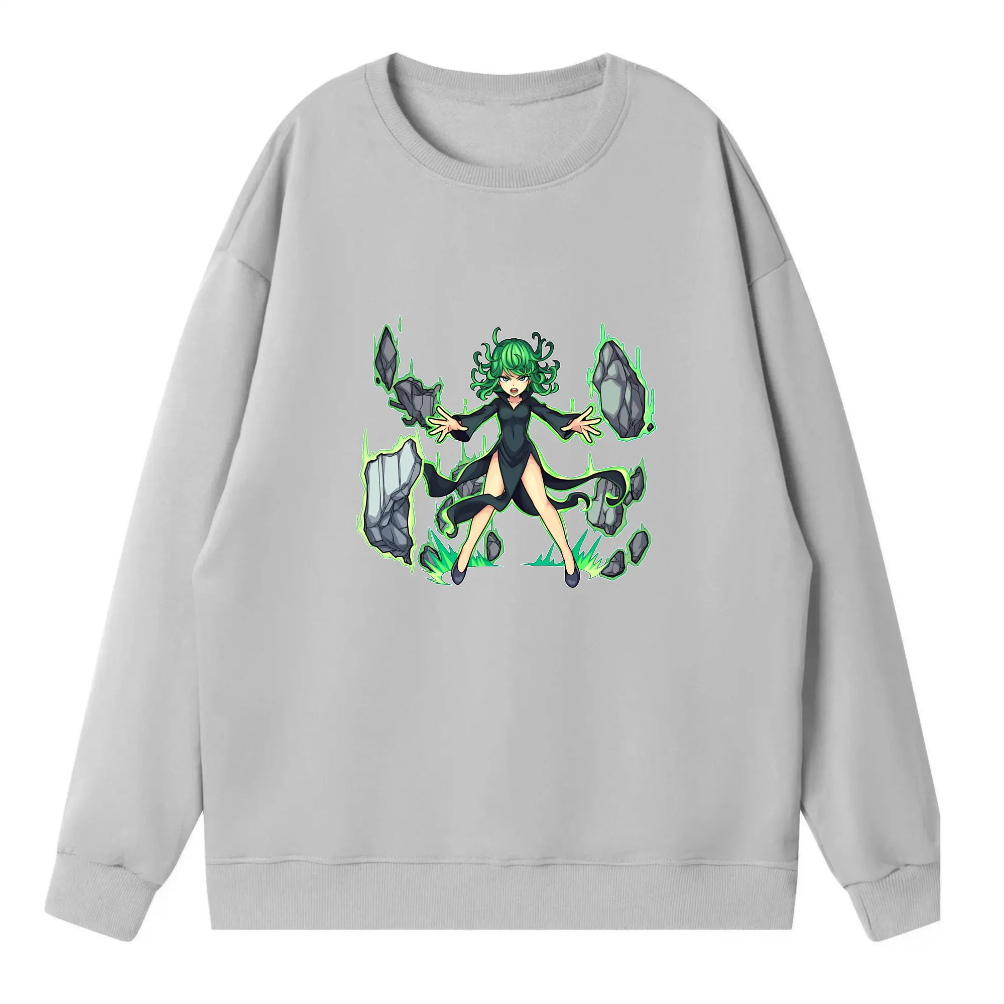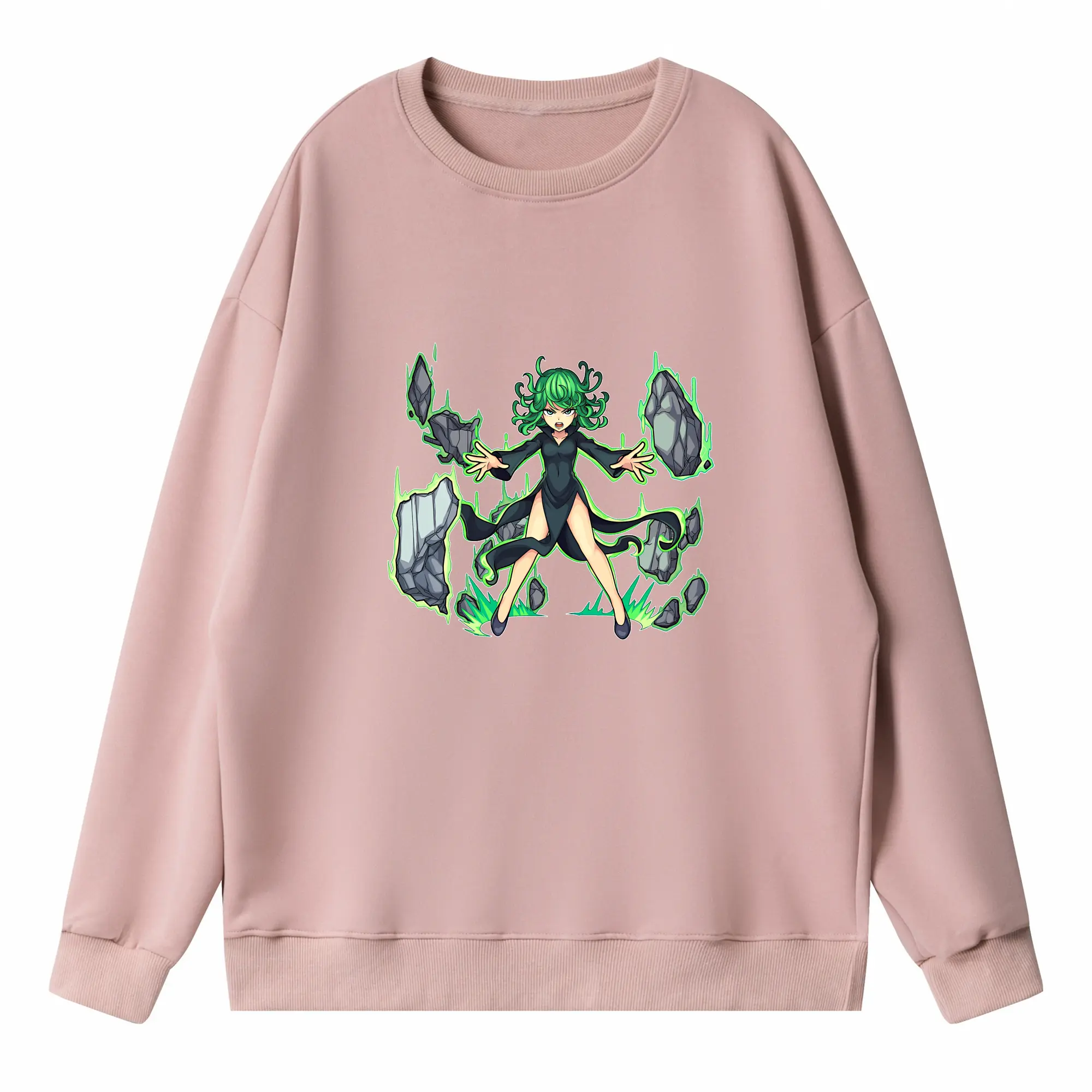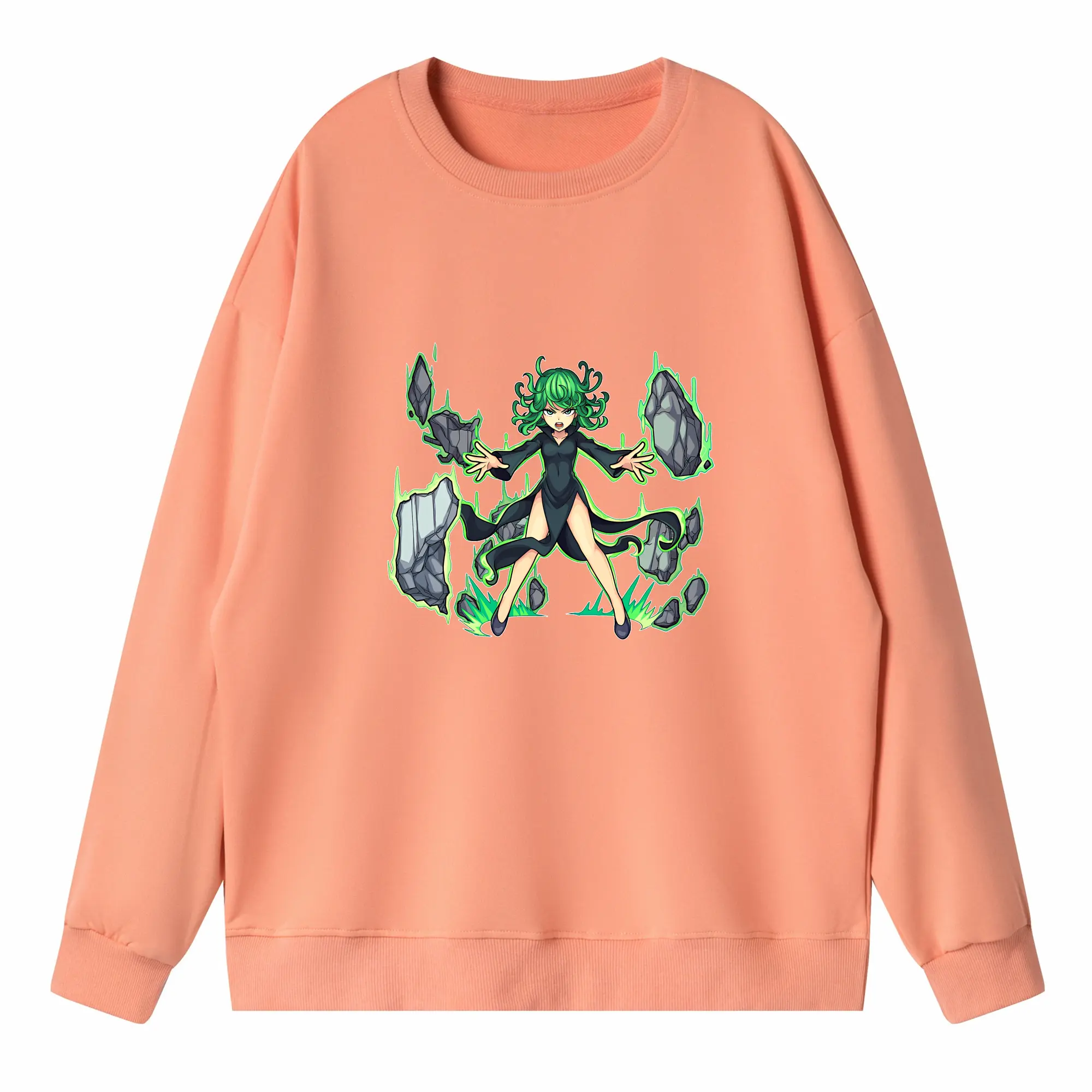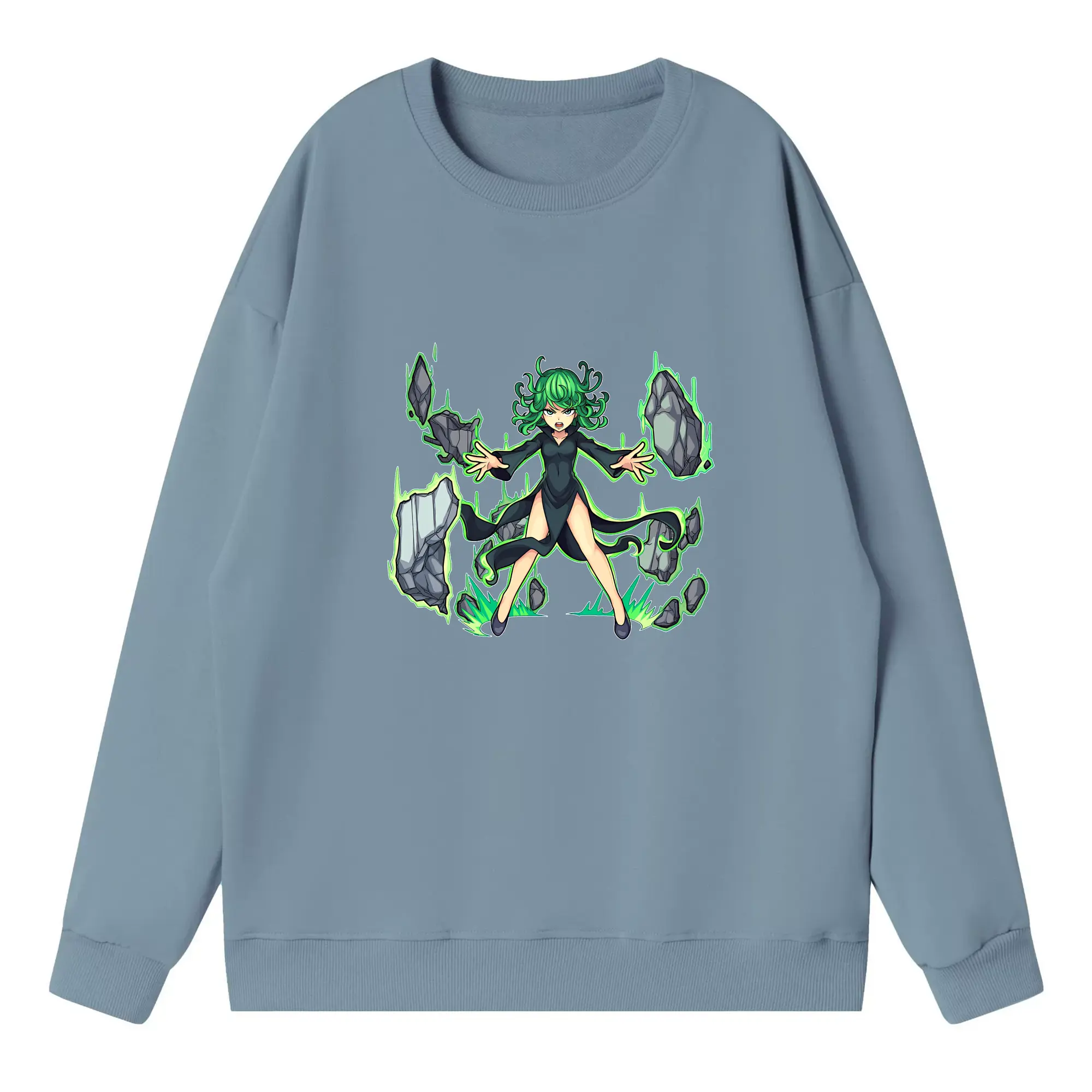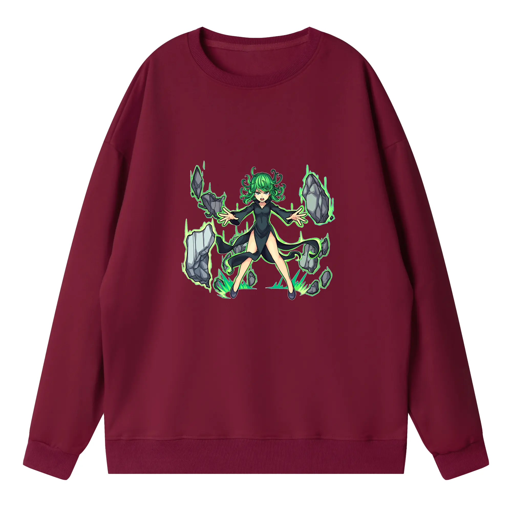 ワンパンマン グッズ 戦慄のタツマキ - 高品質 クルーネック スウェット ・ コットン59% ポリエステル41% ・ ユニセックス 長袖 トレーナー ・ カジュアル デイリー スポーツ 散歩用