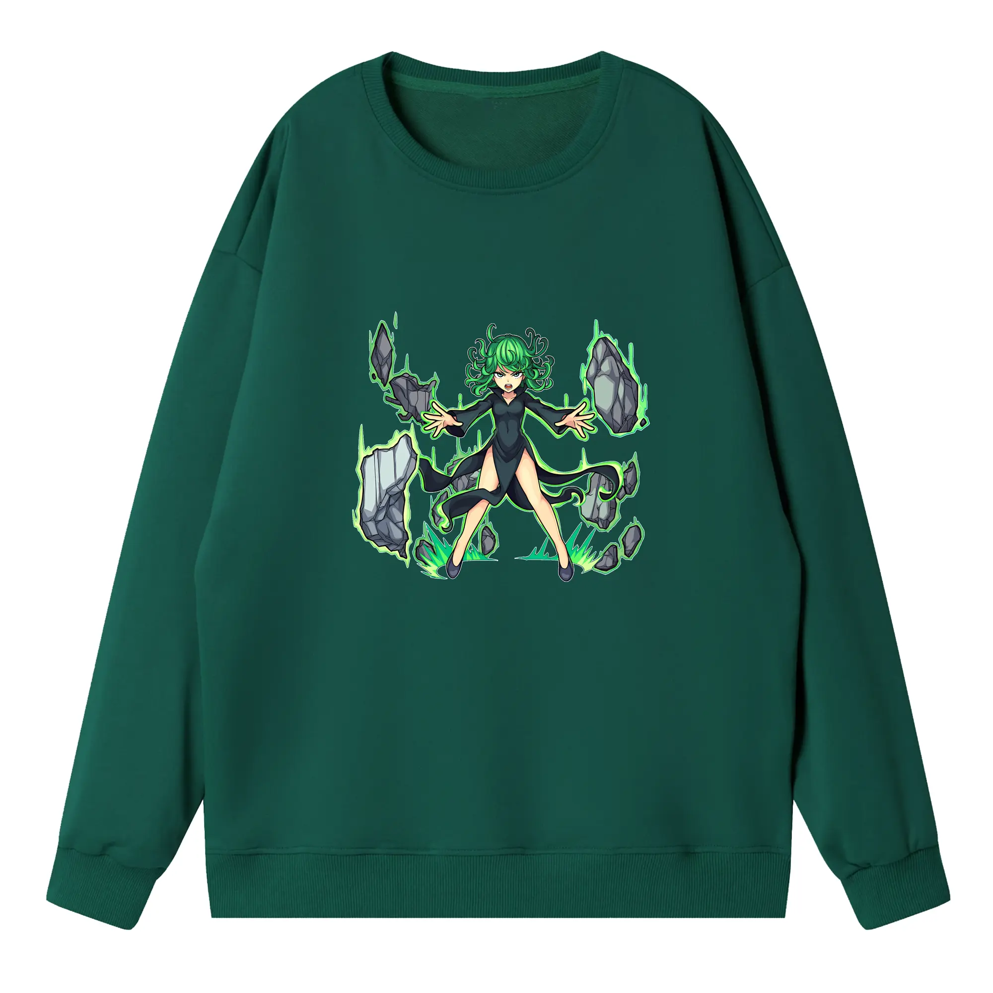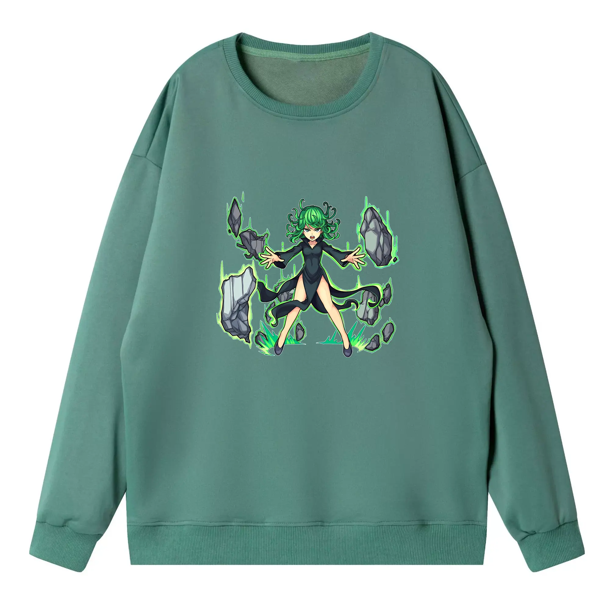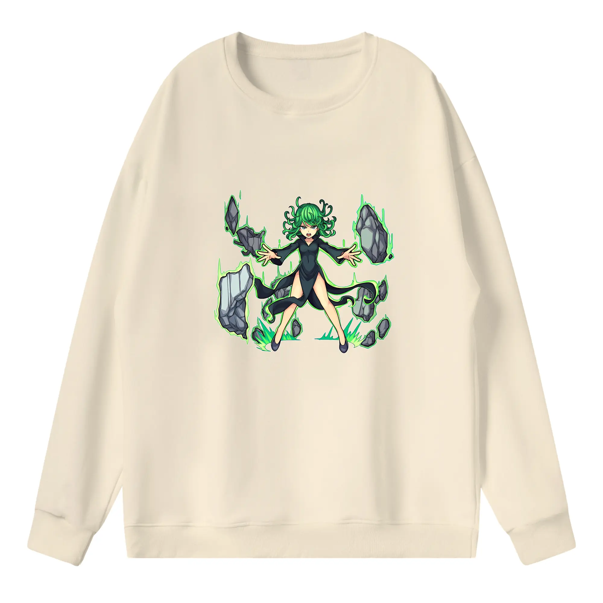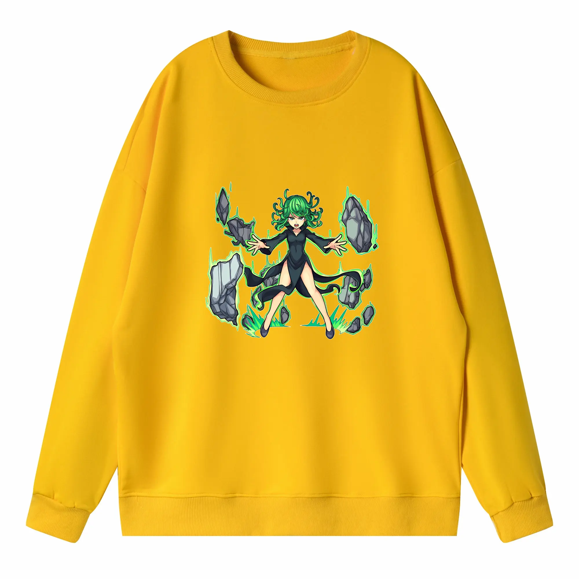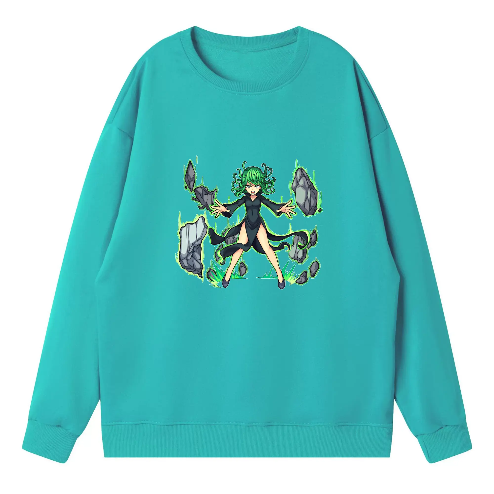ワンパンマン グッズ 戦慄のタツマキ - 高品質 クルーネック スウェット ・ コットン59% ポリエステル41% ・ ユニセックス 長袖 トレーナー ・ カジュアル デイリー スポーツ 散歩用
