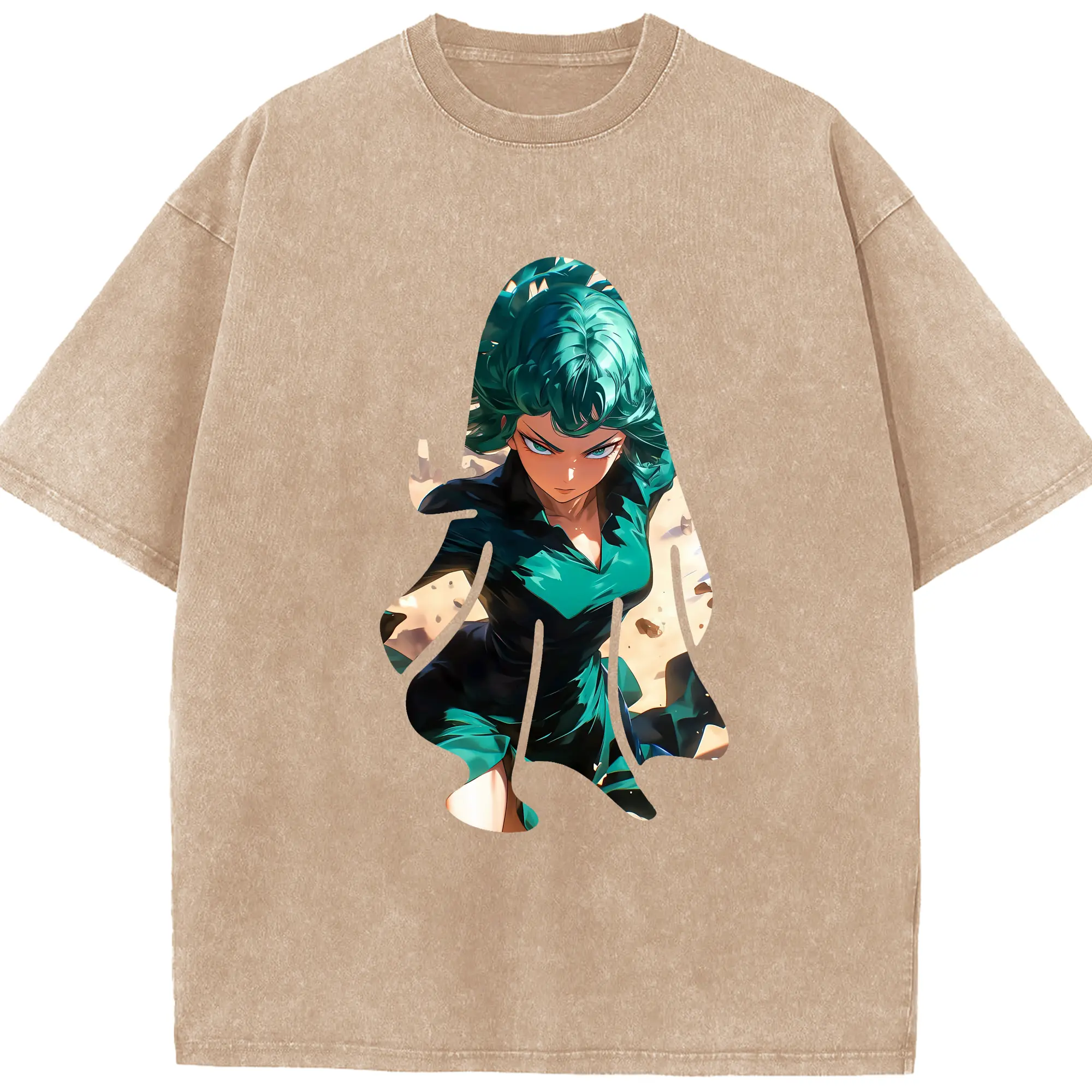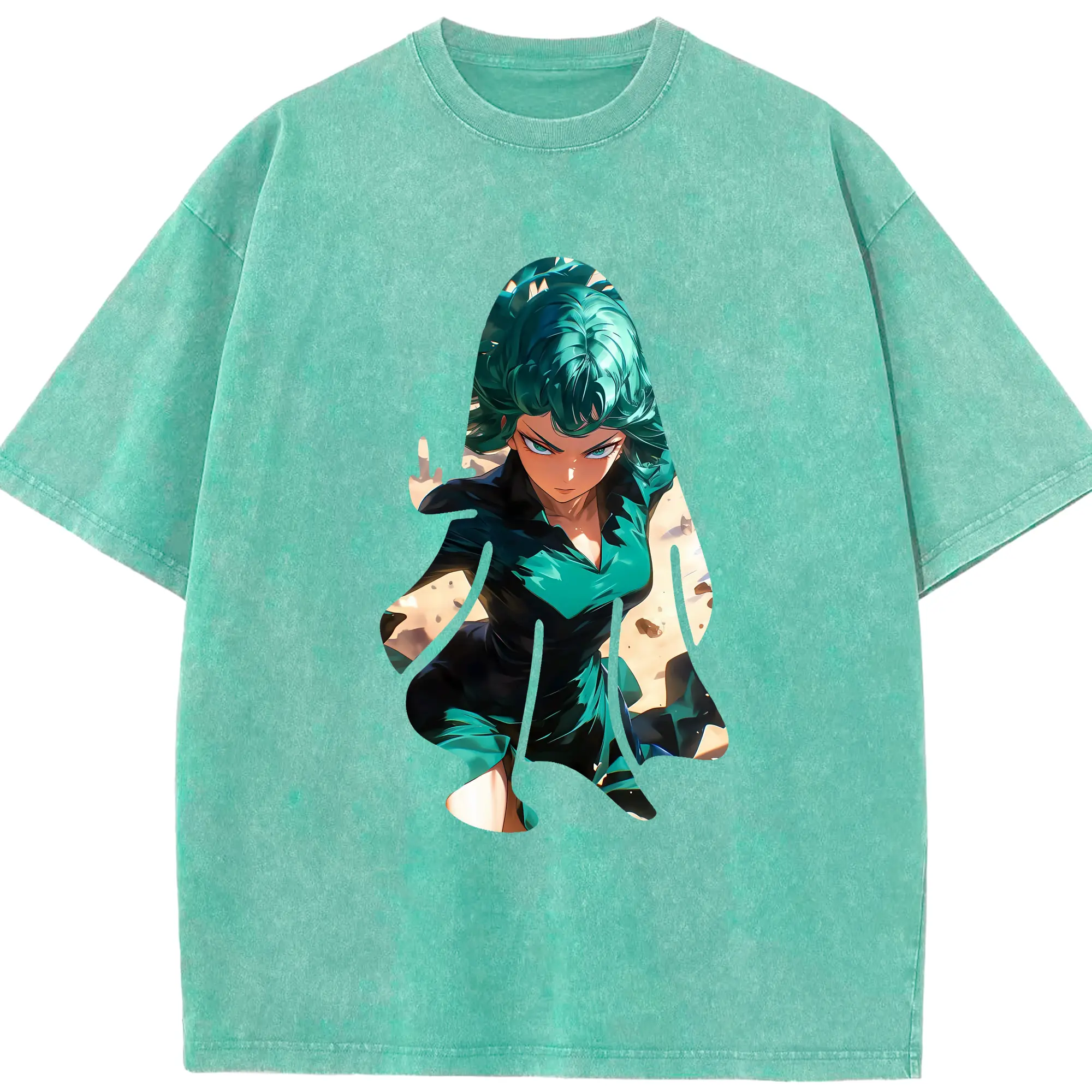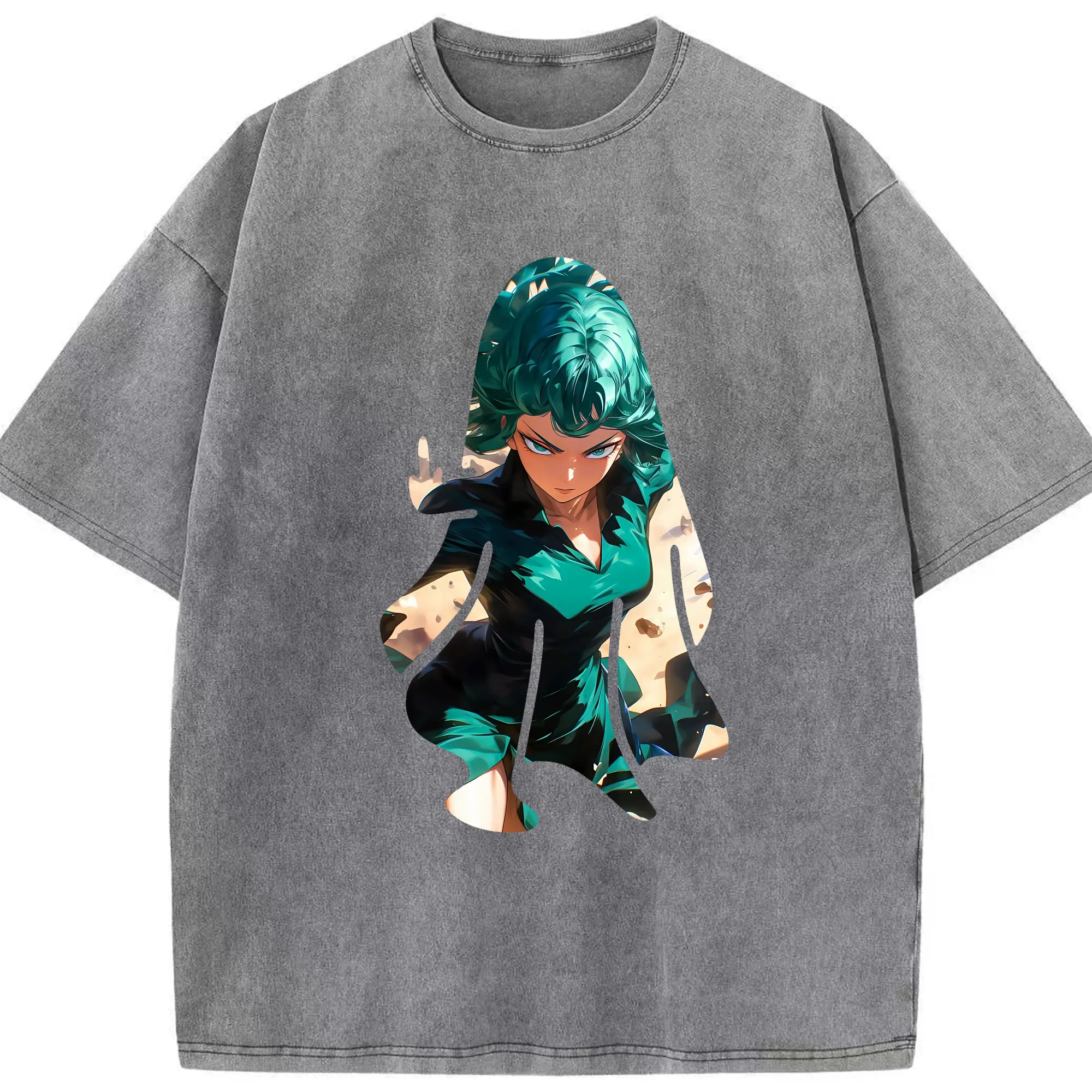 ワンパンマン グッズ 戦慄のタツマキ - 綿100% ヴィンテージ風 半袖Tシャツ ・ 背面プリント ・ 柔らか肌触り ・ 通気性 快適 ・ スポーツ カジュアル 外出用