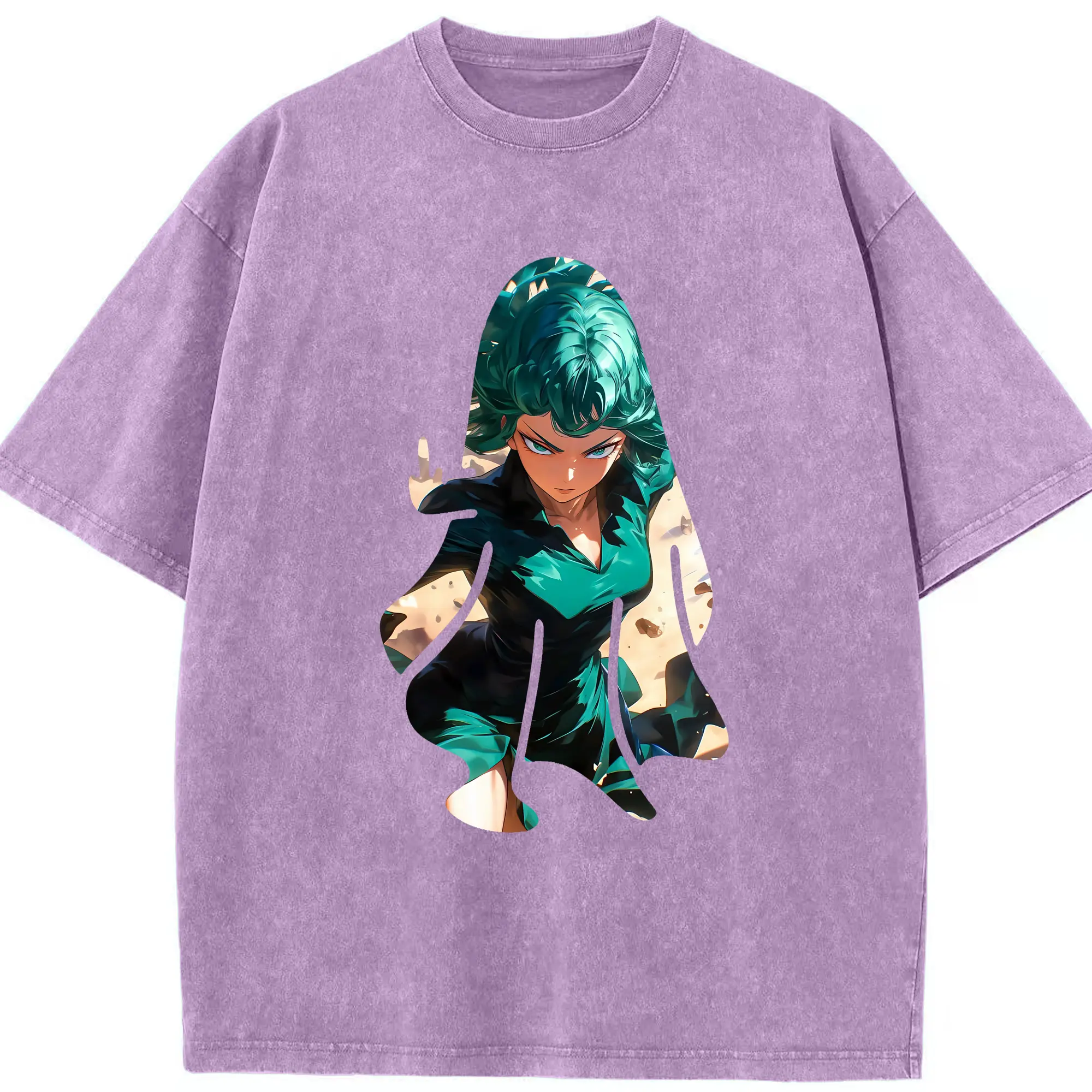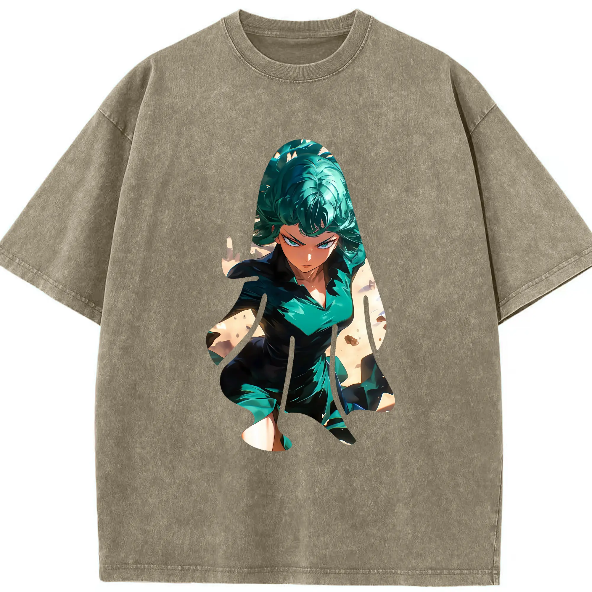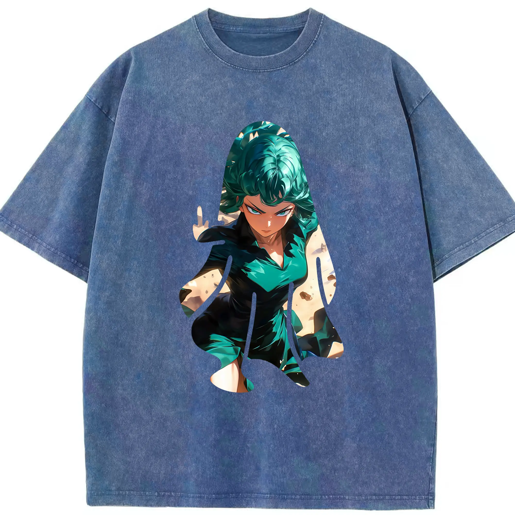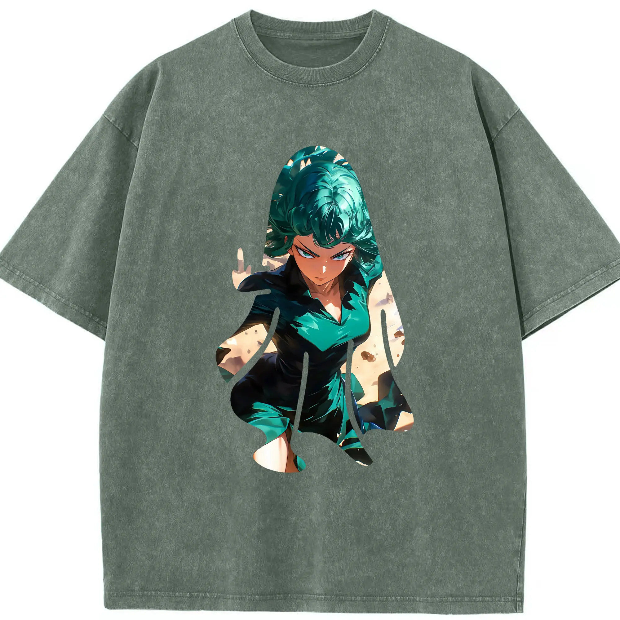 ワンパンマン グッズ 戦慄のタツマキ - 綿100% ヴィンテージ風 半袖Tシャツ ・ 背面プリント ・ 柔らか肌触り ・ 通気性 快適 ・ スポーツ カジュアル 外出用