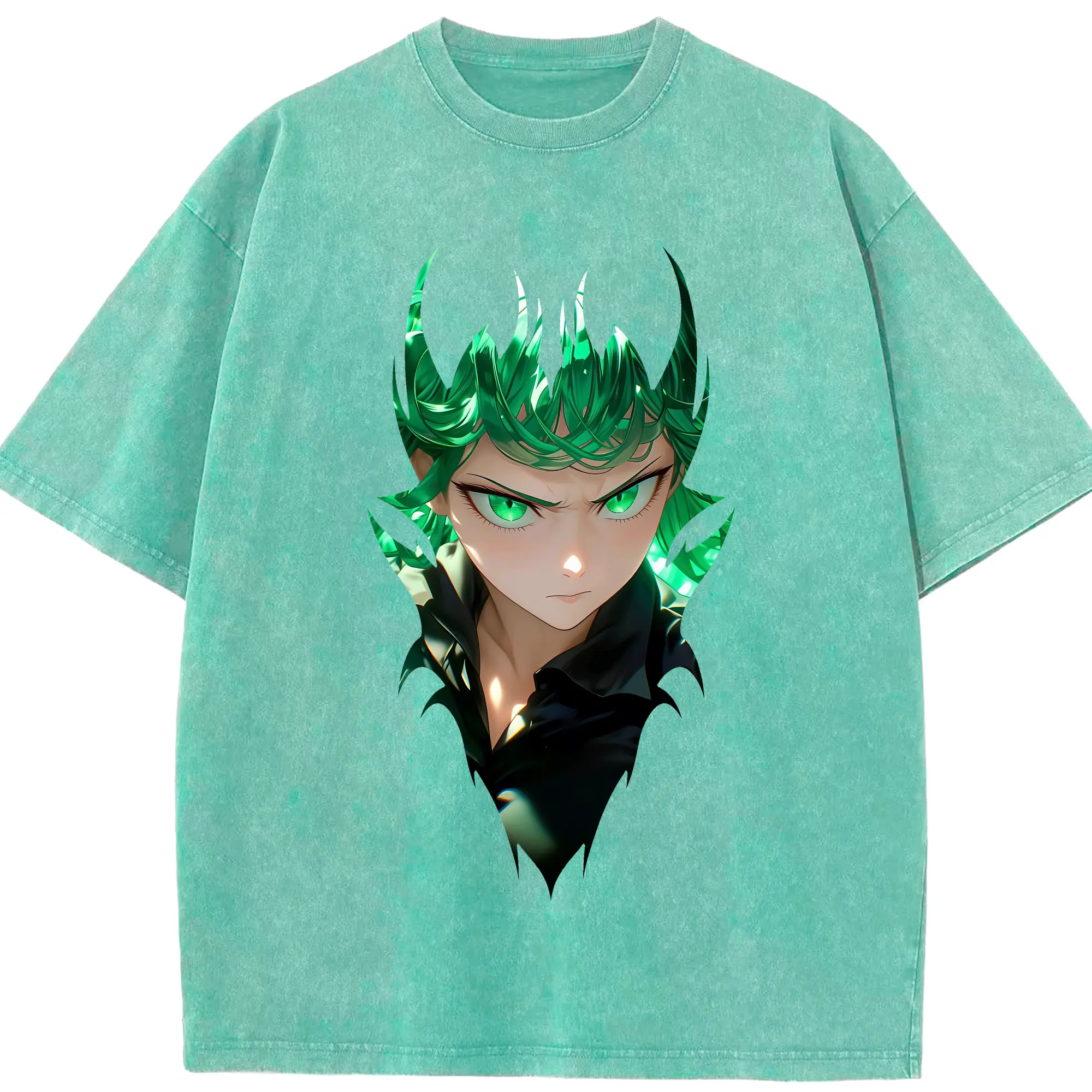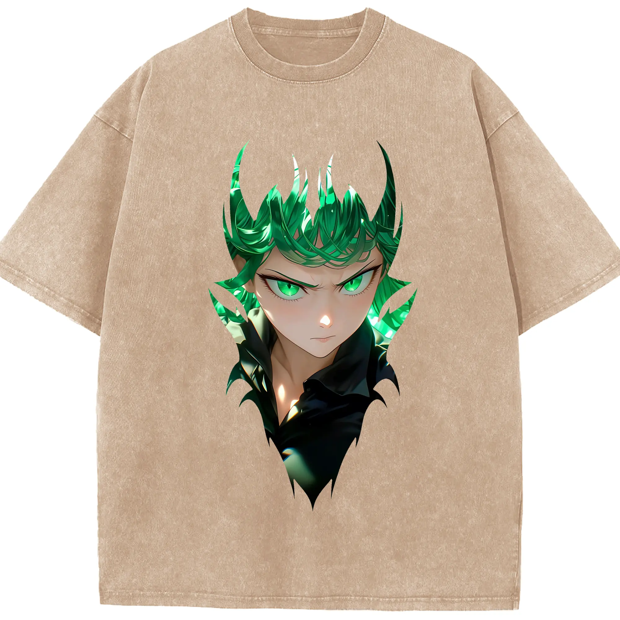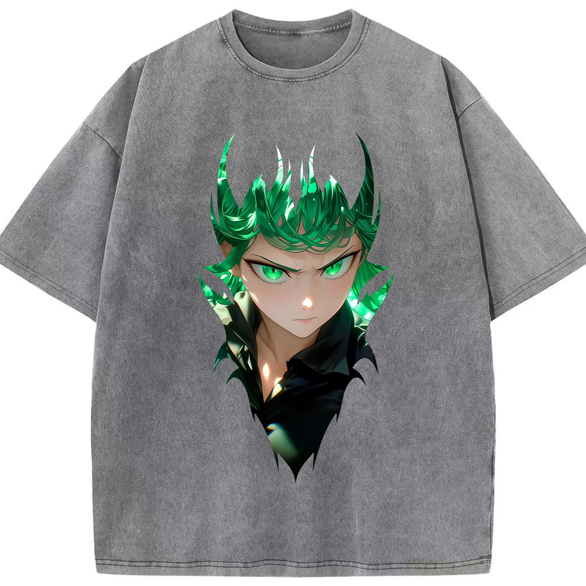 ワンパンマン グッズ 戦慄のタツマキ - 綿100% ヴィンテージ風 半袖Tシャツ ・ 背面プリント ・ 柔らか肌触り ・ 通気性 快適 ・ スポーツ カジュアル 外出用