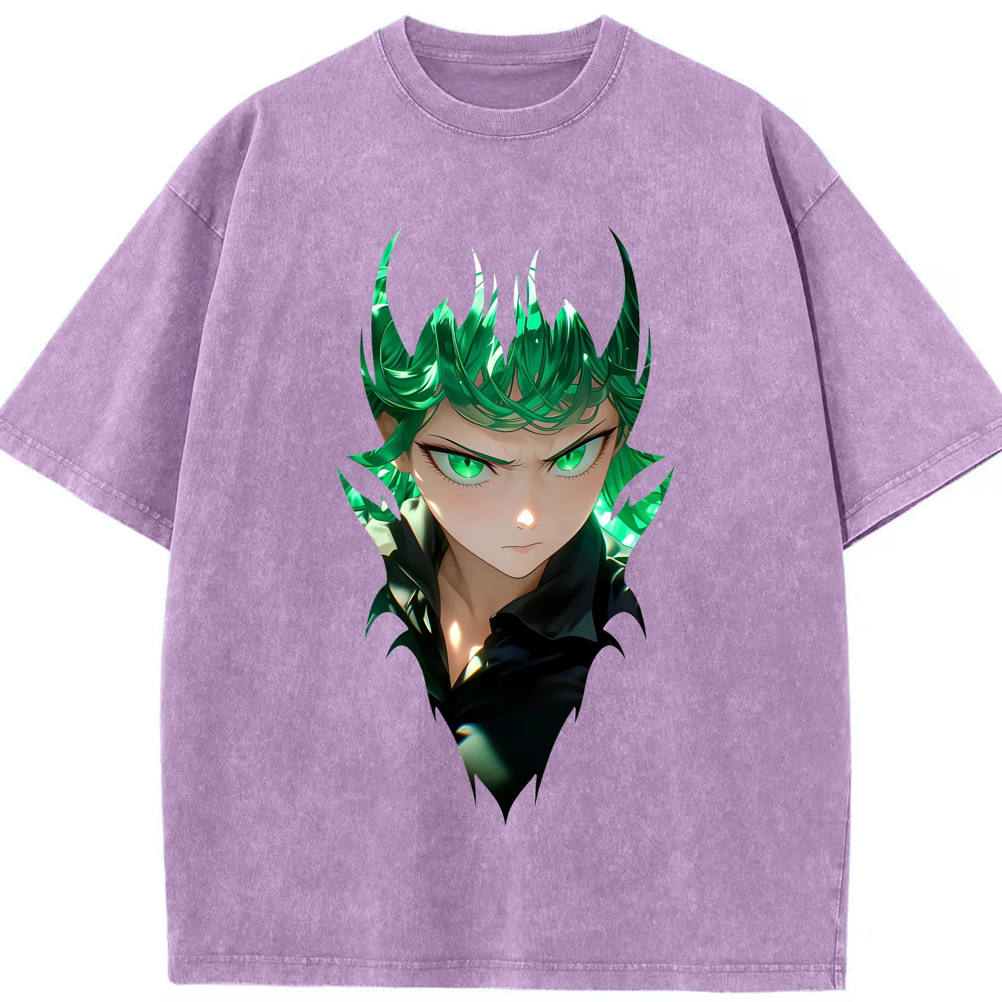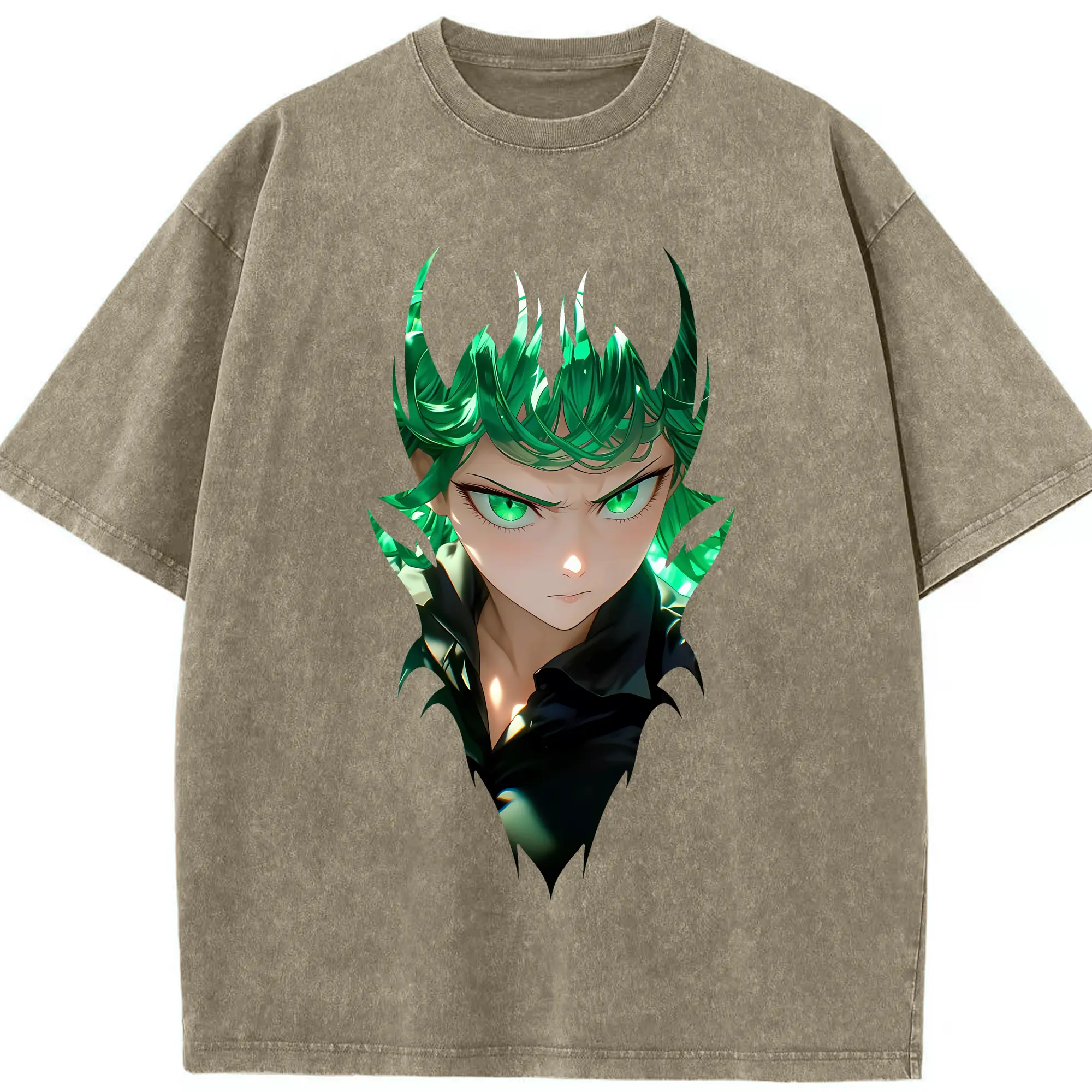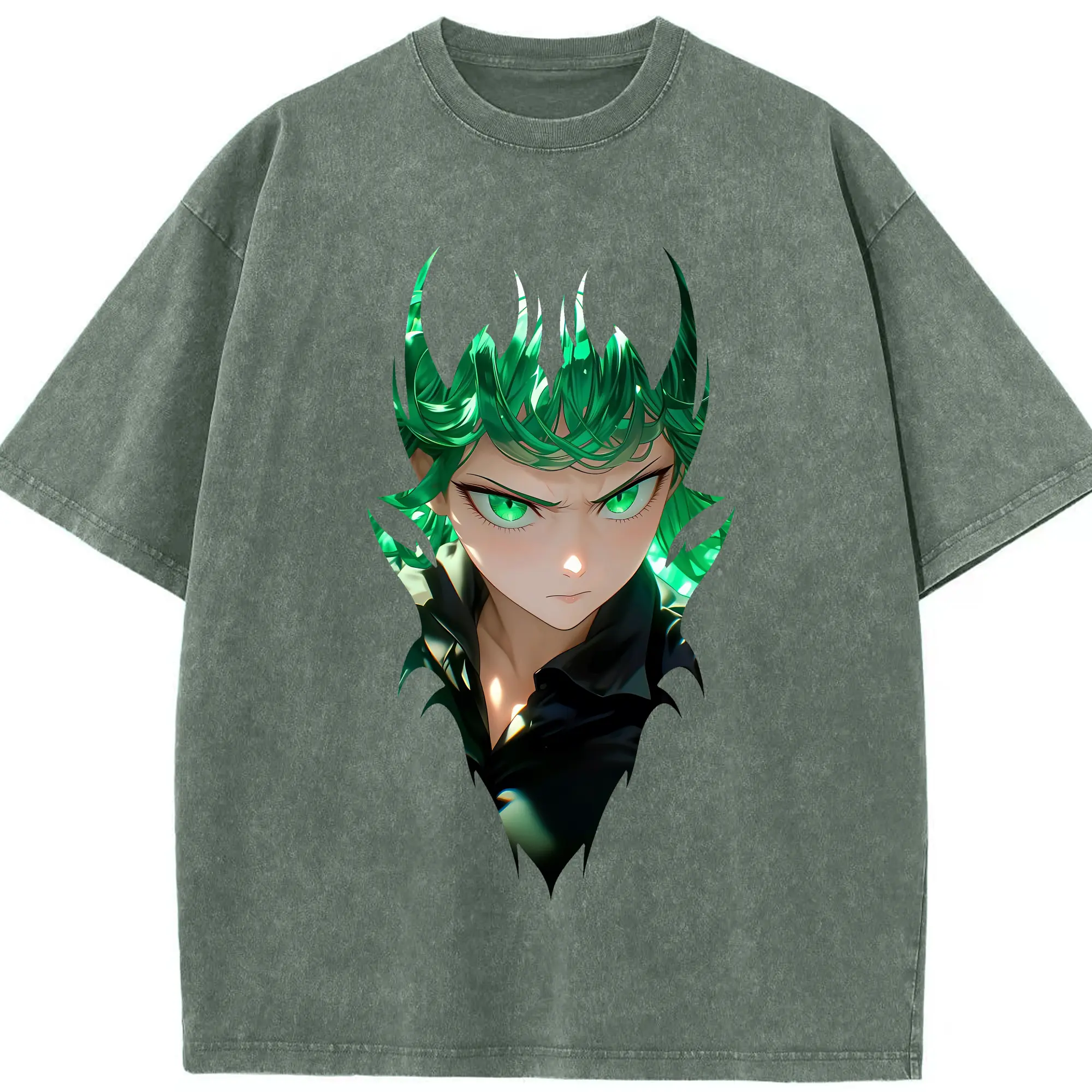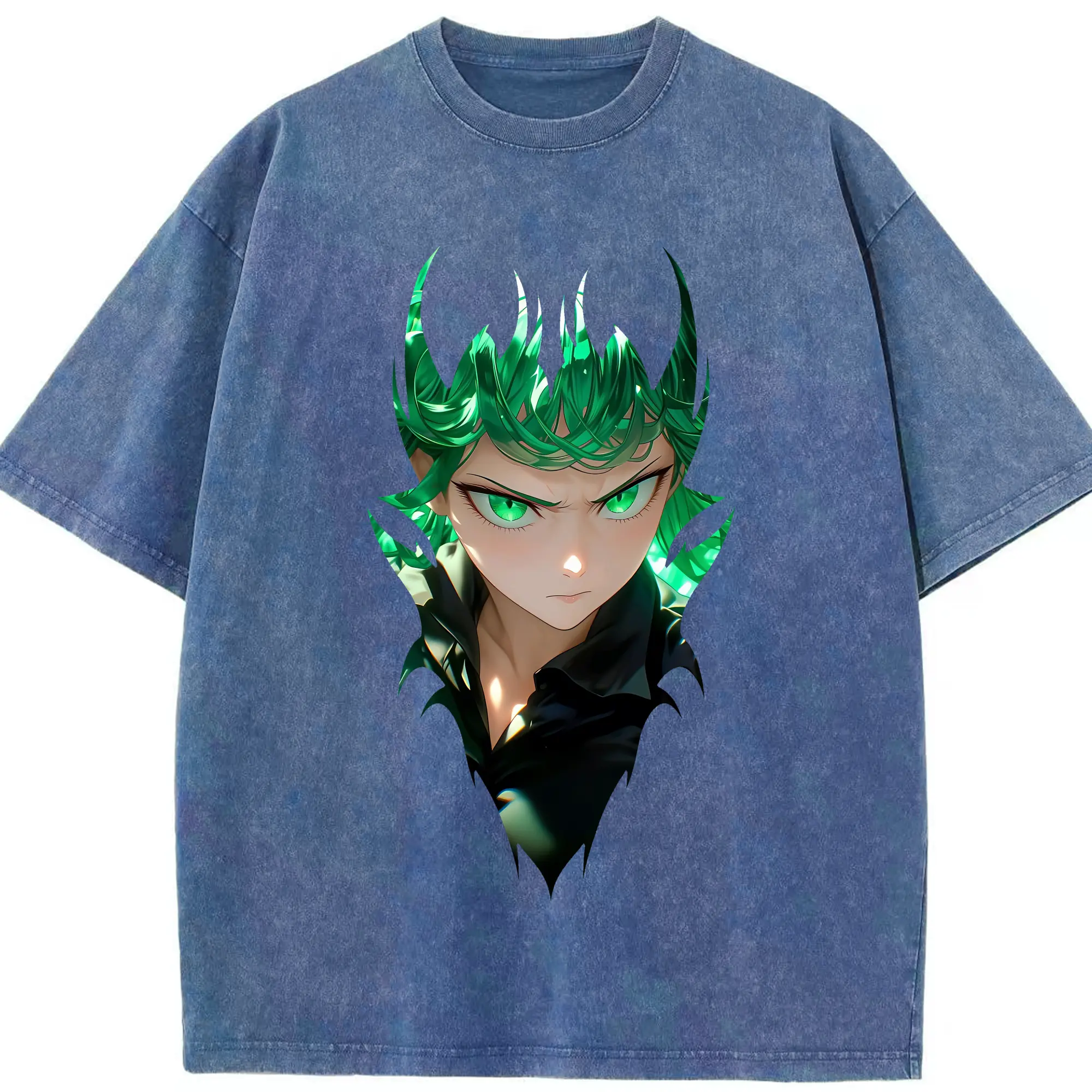 ワンパンマン グッズ 戦慄のタツマキ - 綿100% ヴィンテージ風 半袖Tシャツ ・ 背面プリント ・ 柔らか肌触り ・ 通気性 快適 ・ スポーツ カジュアル 外出用