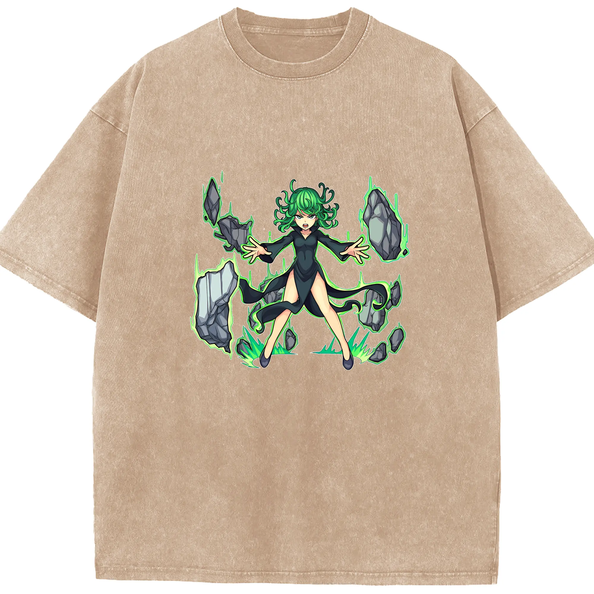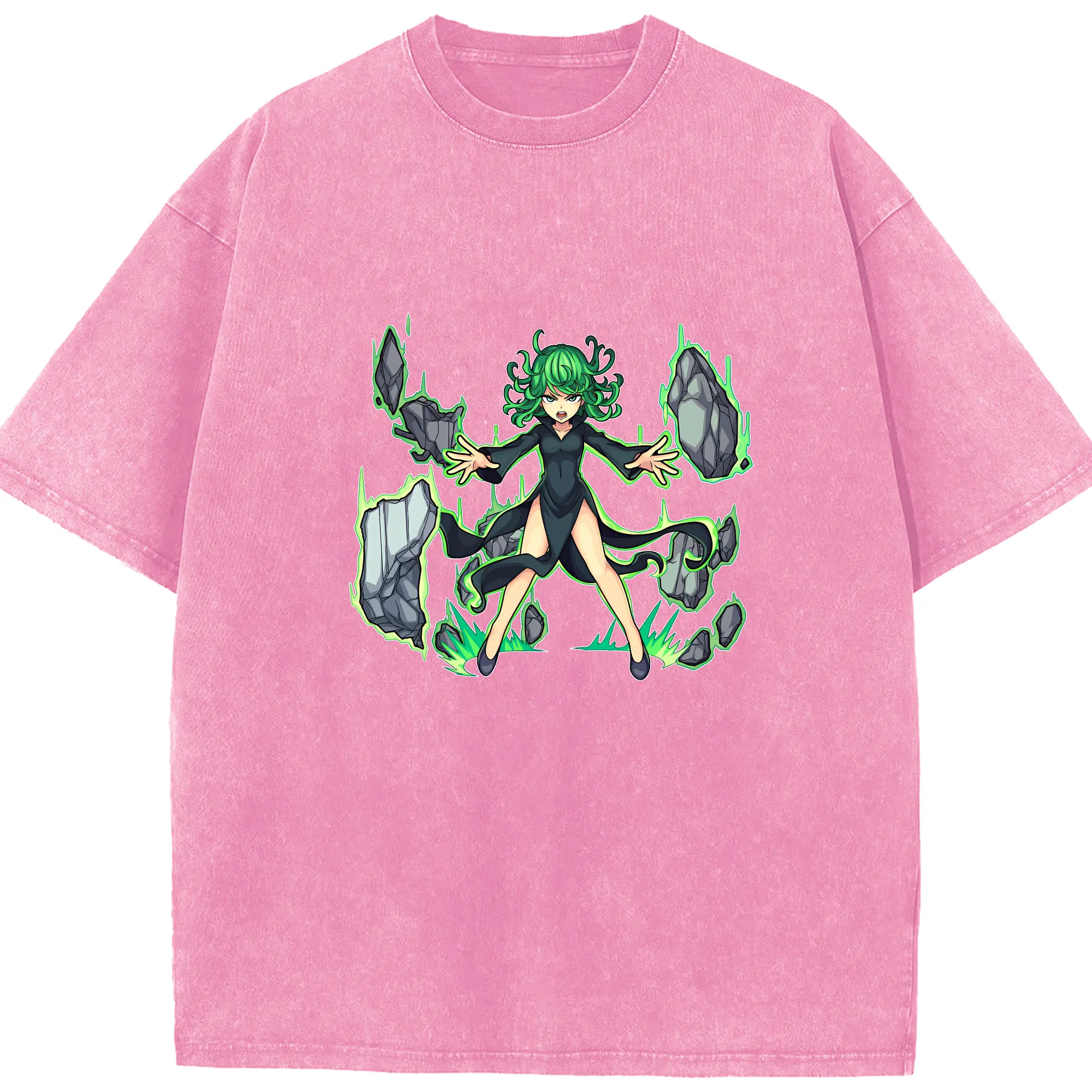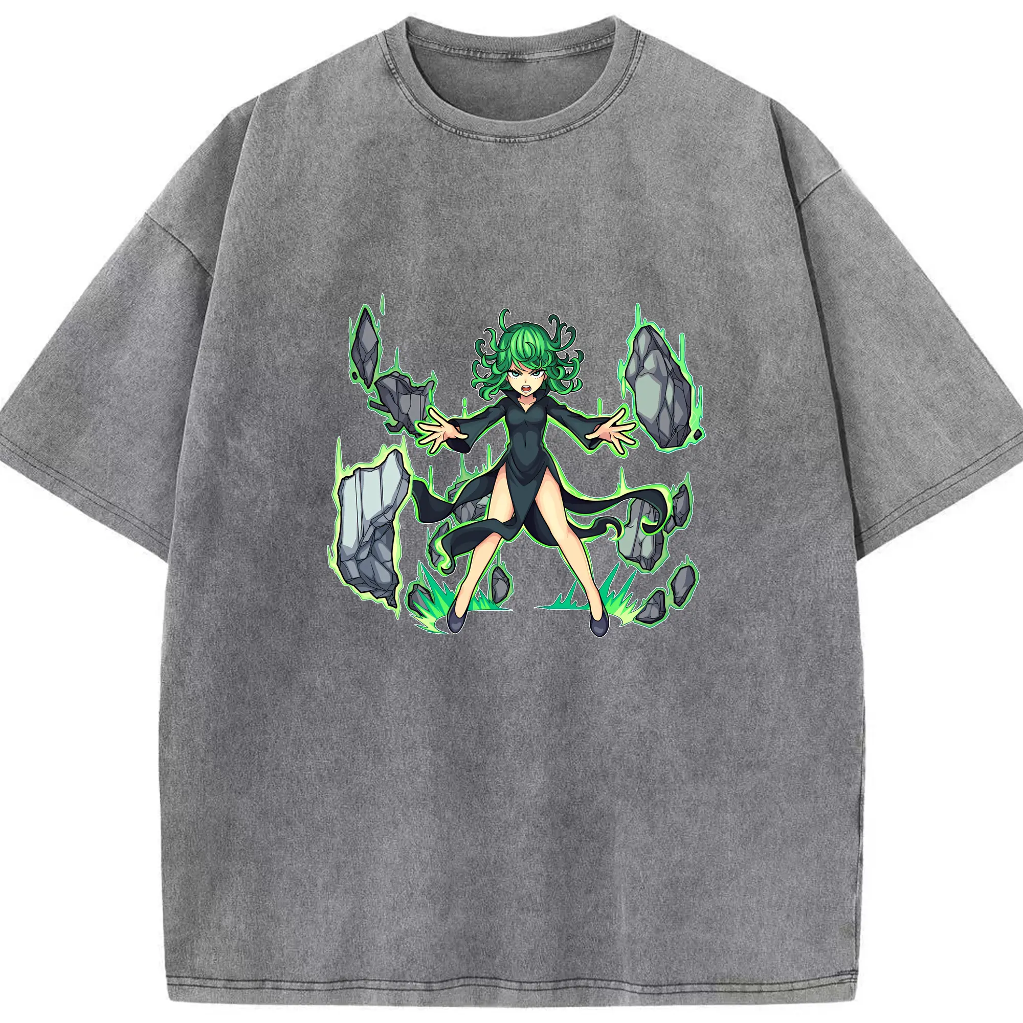 ワンパンマン グッズ 戦慄のタツマキ - 綿100% ヴィンテージ風 半袖Tシャツ ・ 背面プリント ・ 柔らか肌触り ・ 通気性 快適 ・ スポーツ カジュアル 外出用
