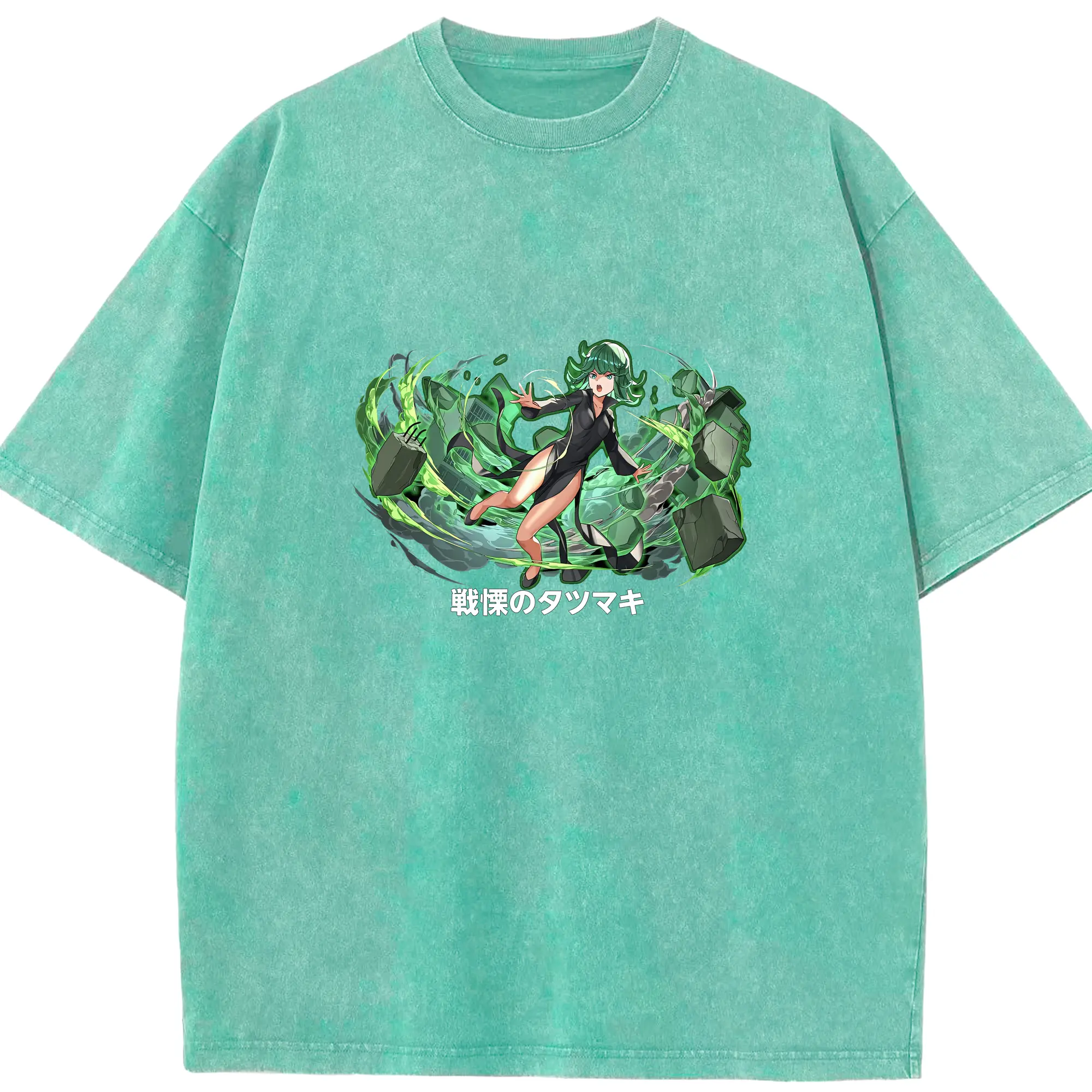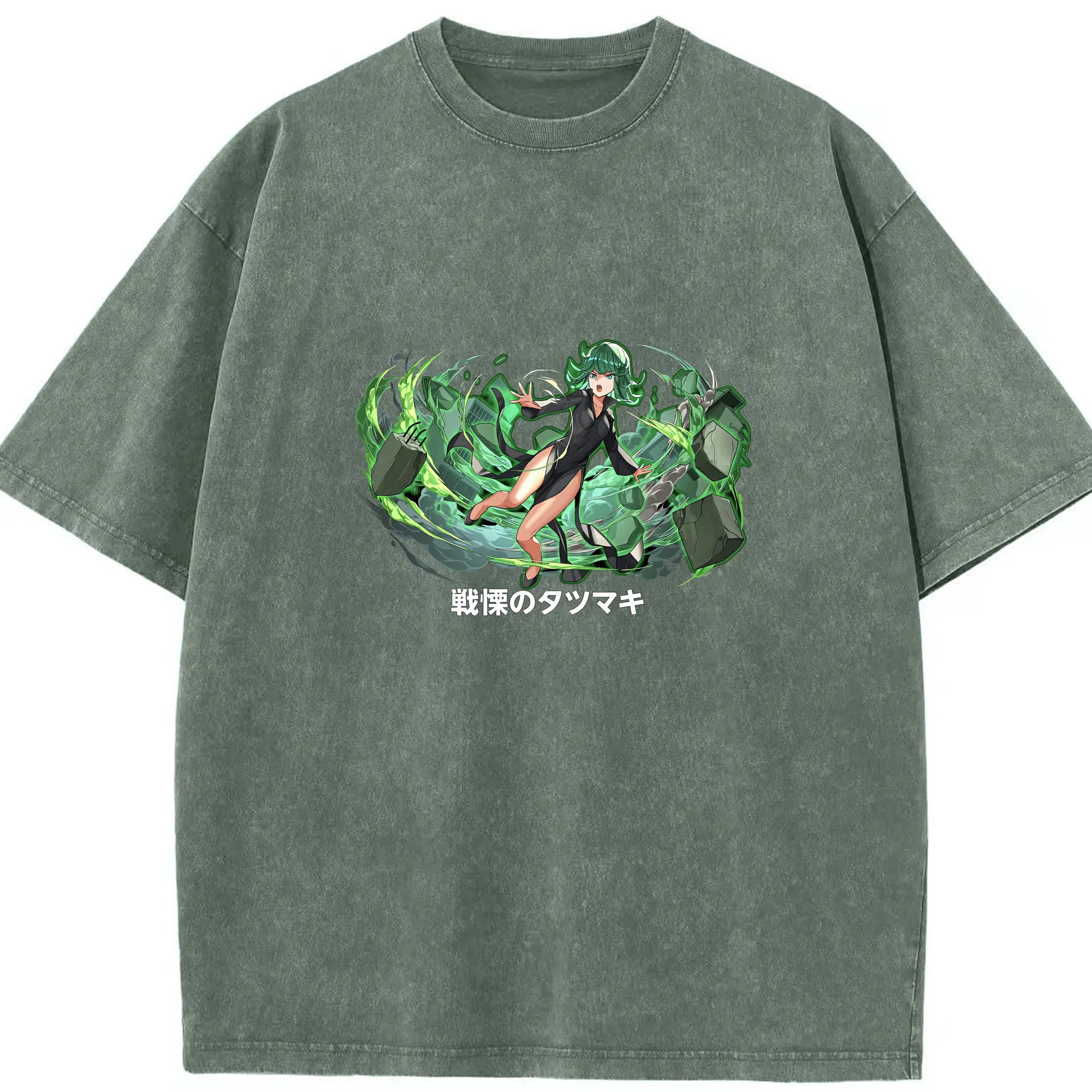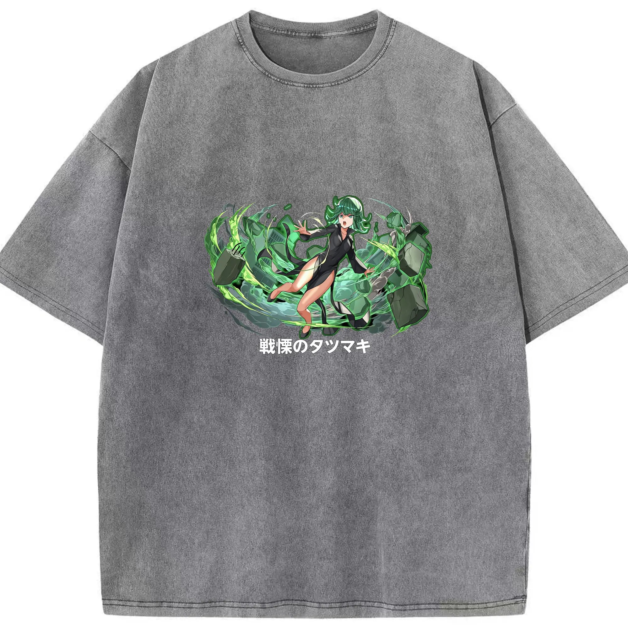 ワンパンマン グッズ 戦慄のタツマキ - 綿100% ヴィンテージ風 半袖Tシャツ ・ 背面プリント ・ 柔らか肌触り ・ 通気性 快適 ・ スポーツ カジュアル 外出用