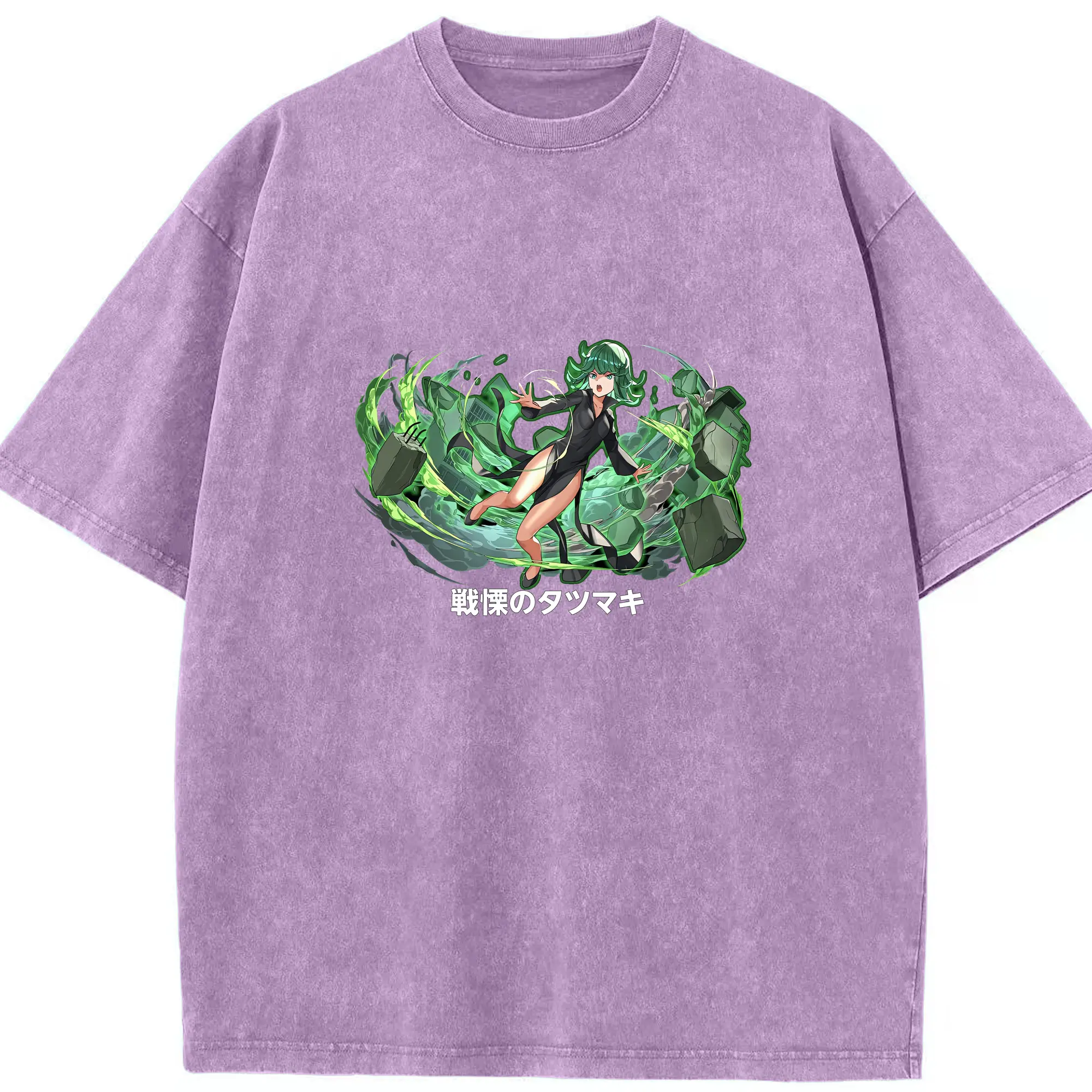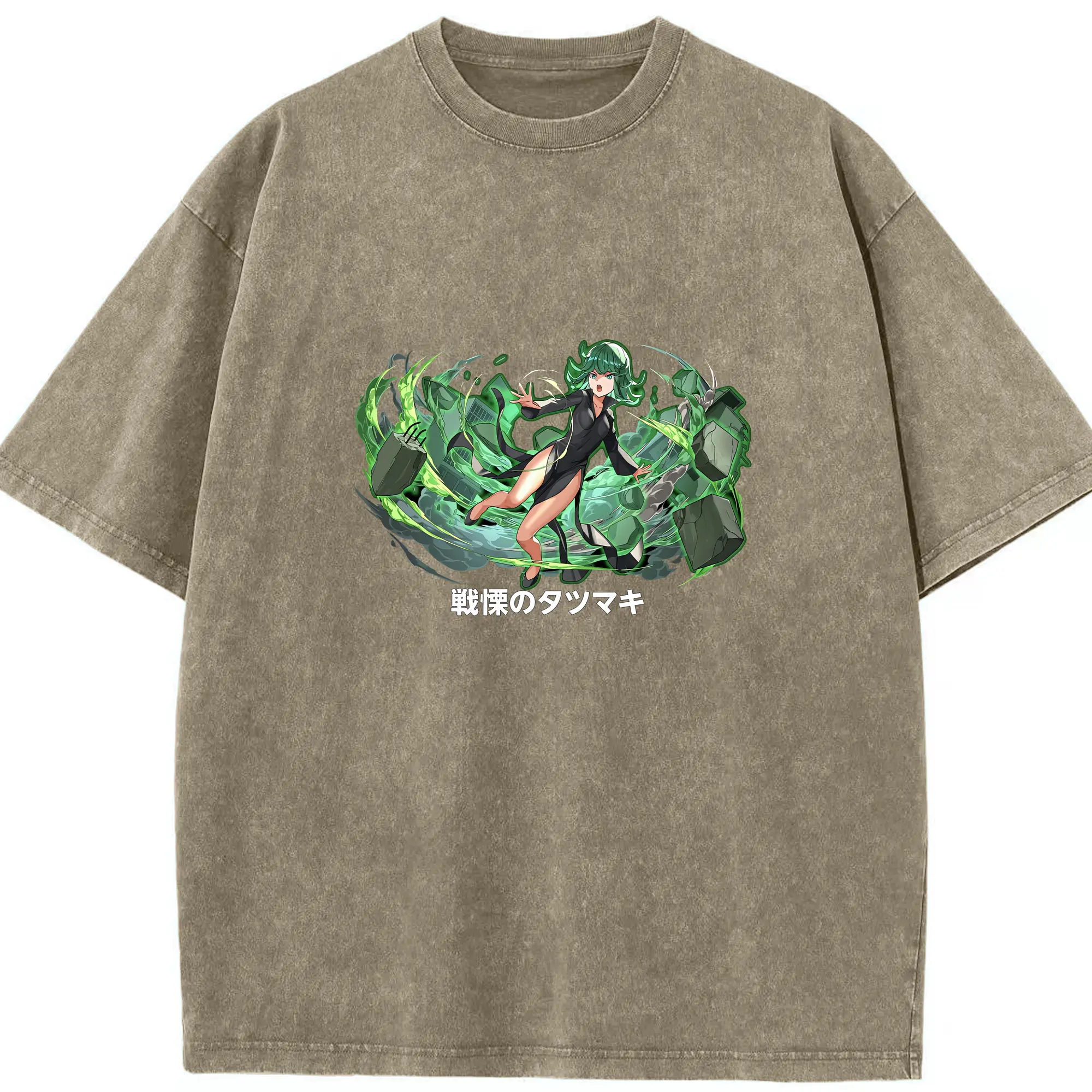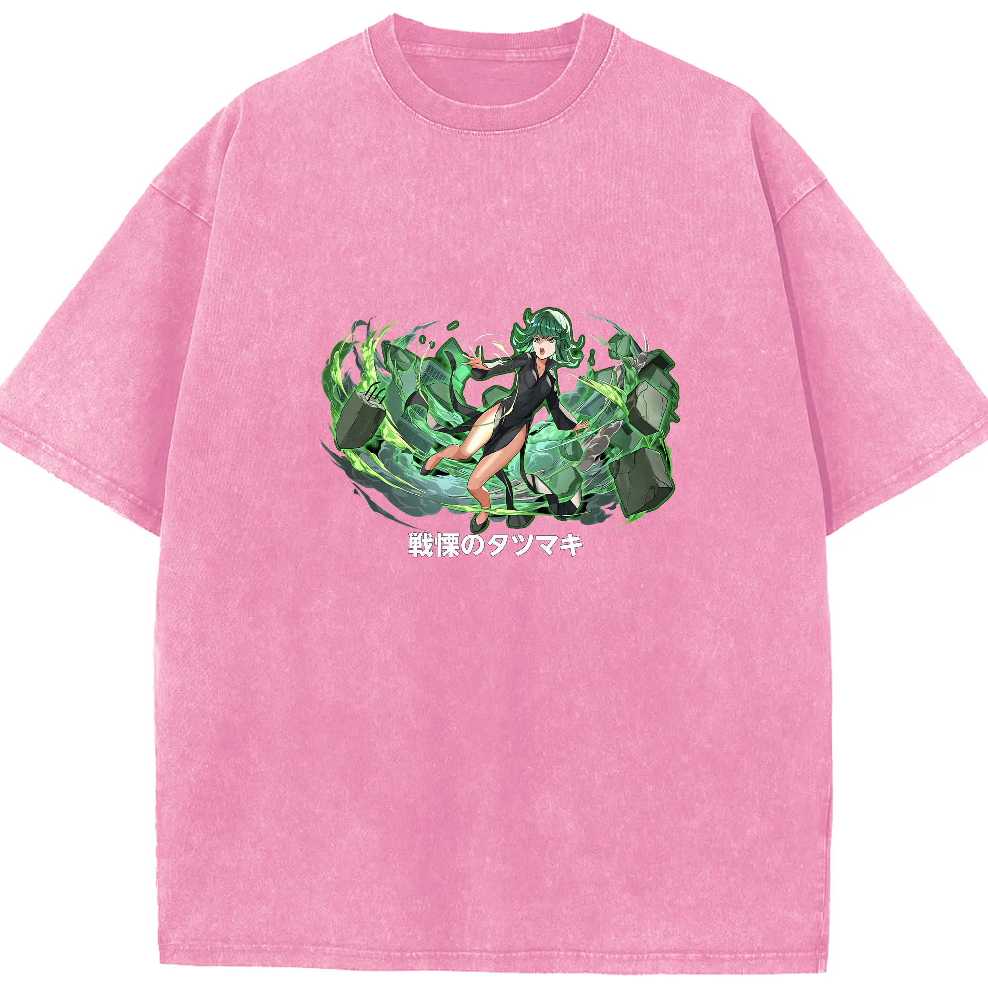 ワンパンマン グッズ 戦慄のタツマキ - 綿100% ヴィンテージ風 半袖Tシャツ ・ 背面プリント ・ 柔らか肌触り ・ 通気性 快適 ・ スポーツ カジュアル 外出用