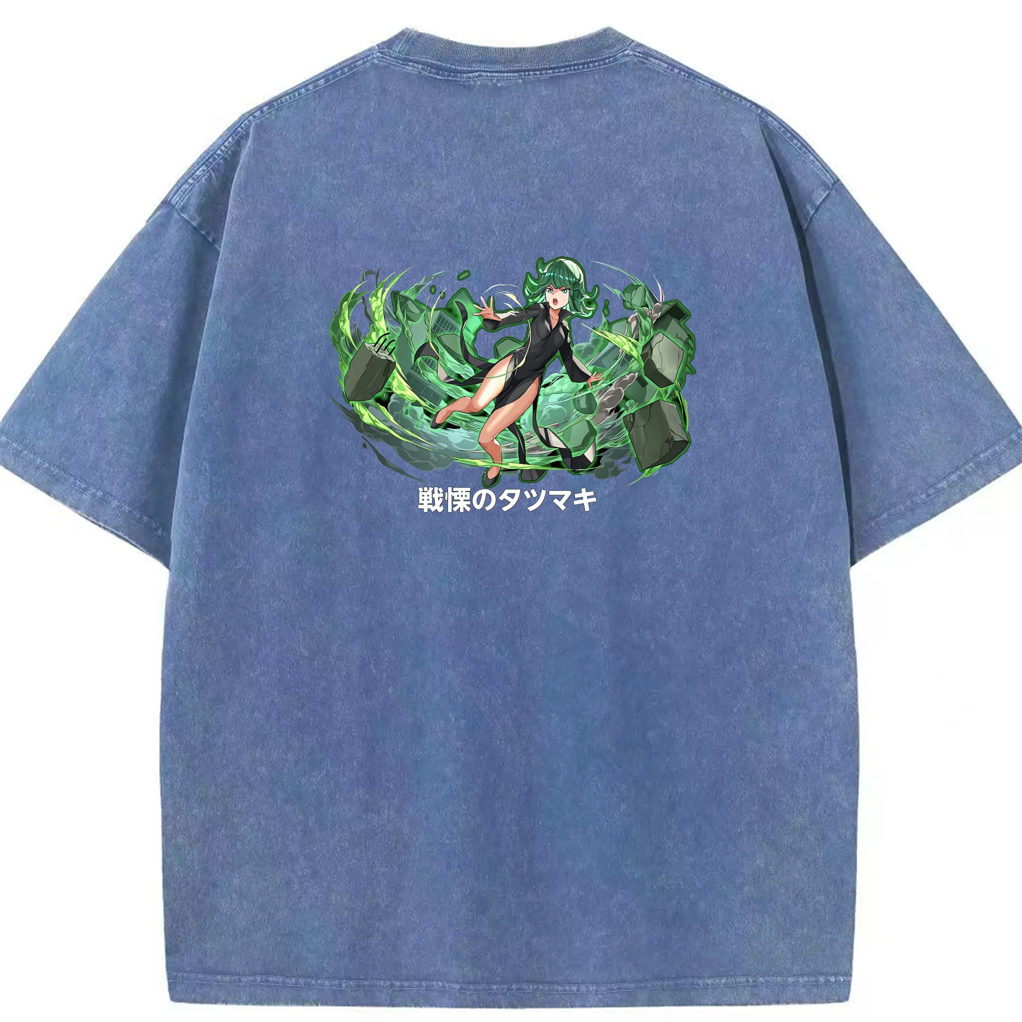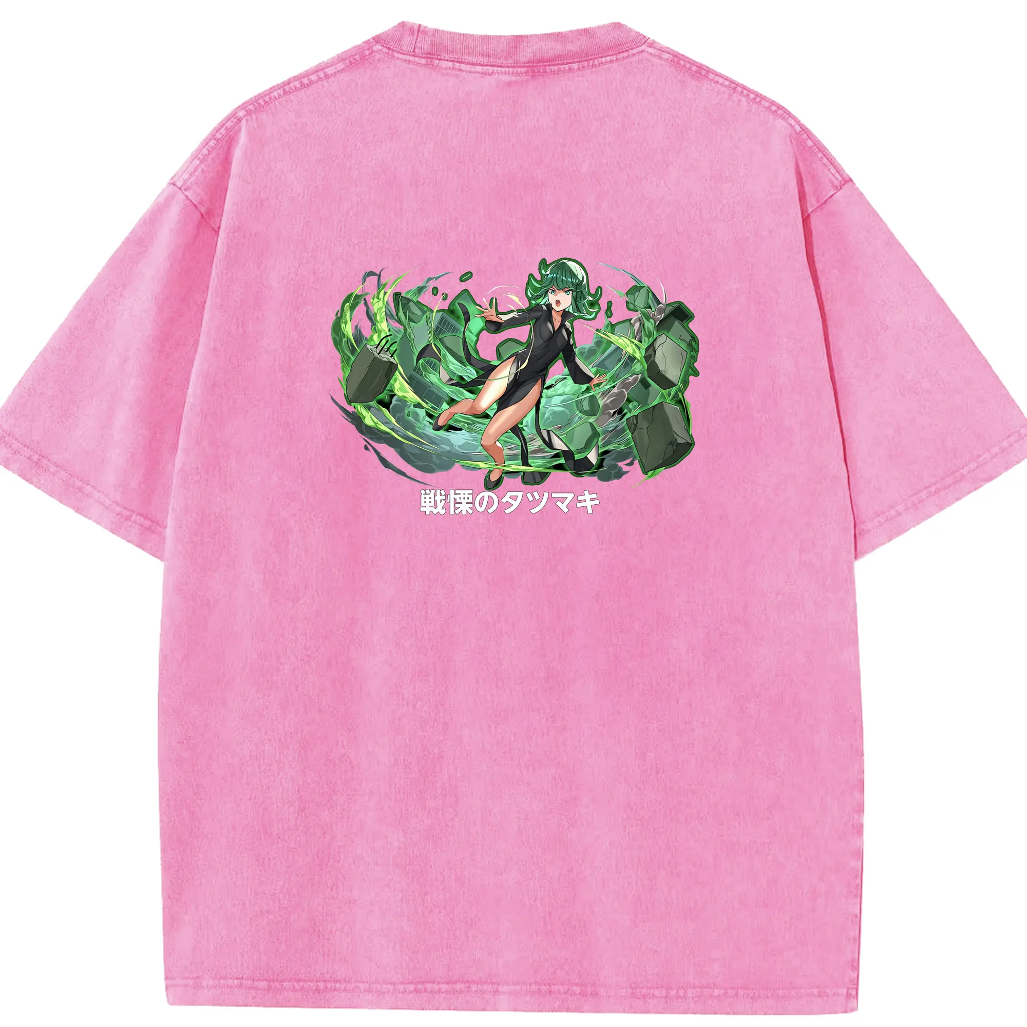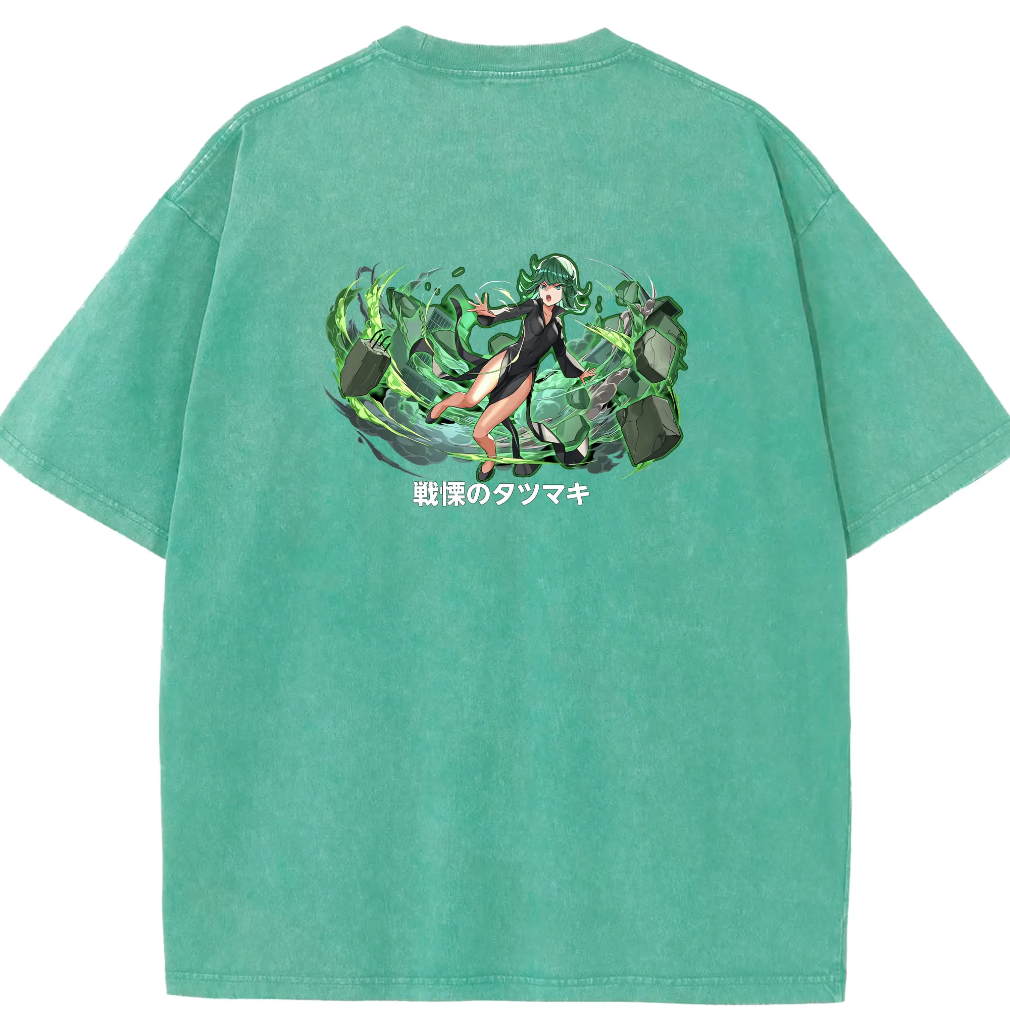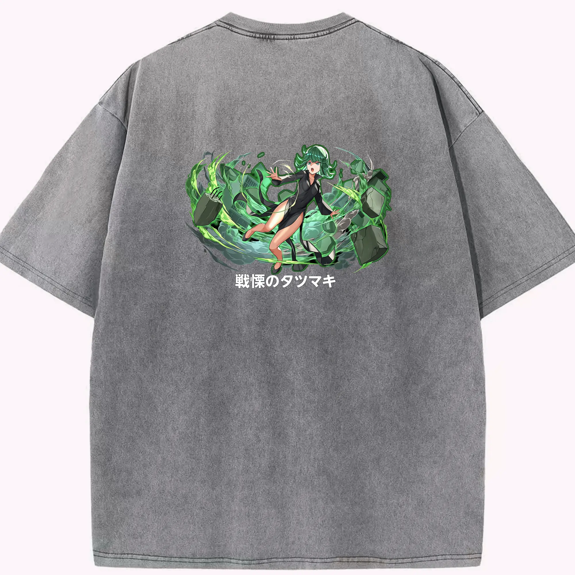 ワンパンマン グッズ 戦慄のタツマキ - 綿100% ヴィンテージ風 半袖Tシャツ ・ フロントプリント ・ 柔らか肌触り ・ 通気性 快適 ・ スポーツ カジュアル 外出用