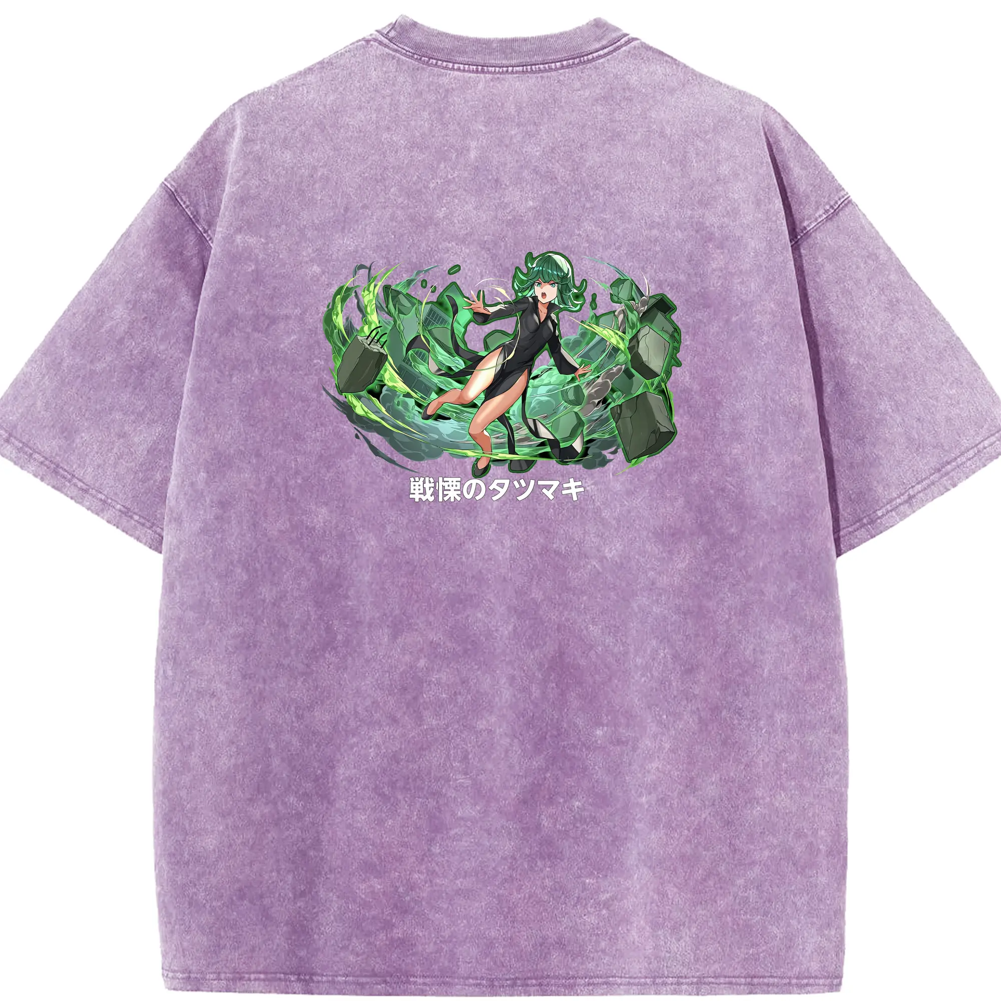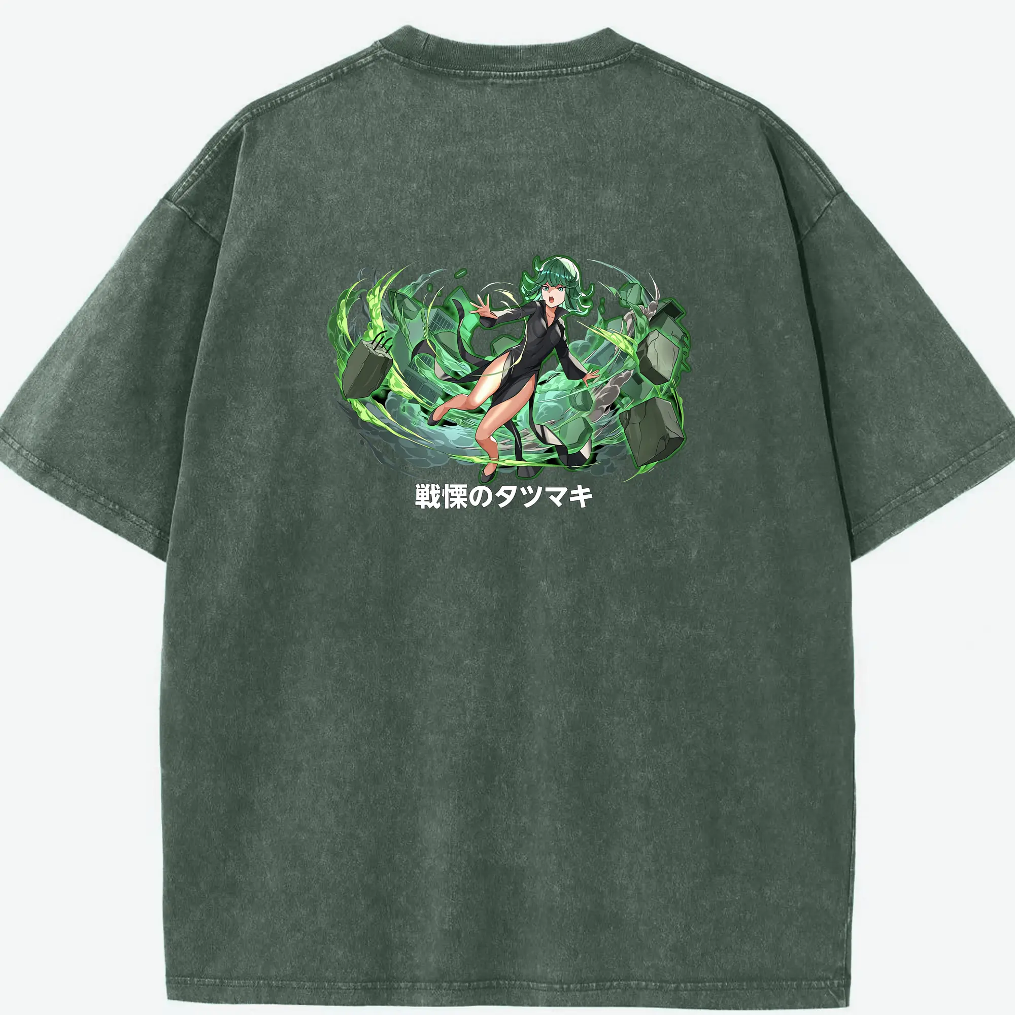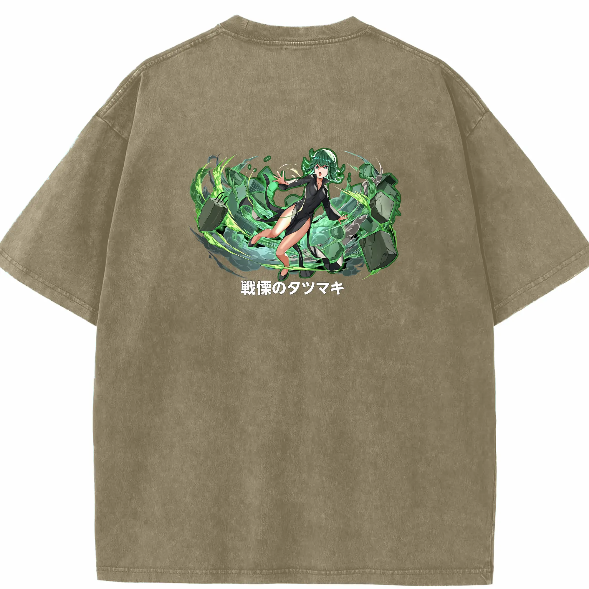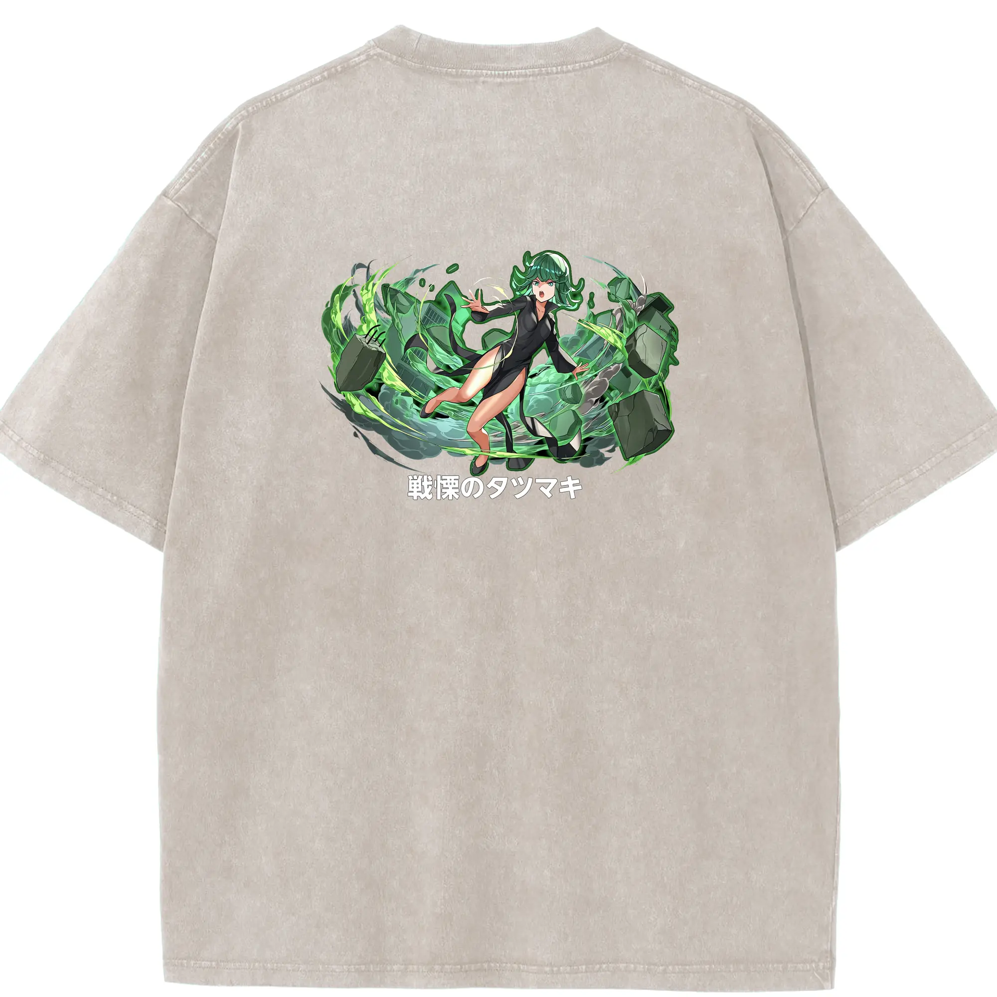 ワンパンマン グッズ 戦慄のタツマキ - 綿100% ヴィンテージ風 半袖Tシャツ ・ フロントプリント ・ 柔らか肌触り ・ 通気性 快適 ・ スポーツ カジュアル 外出用