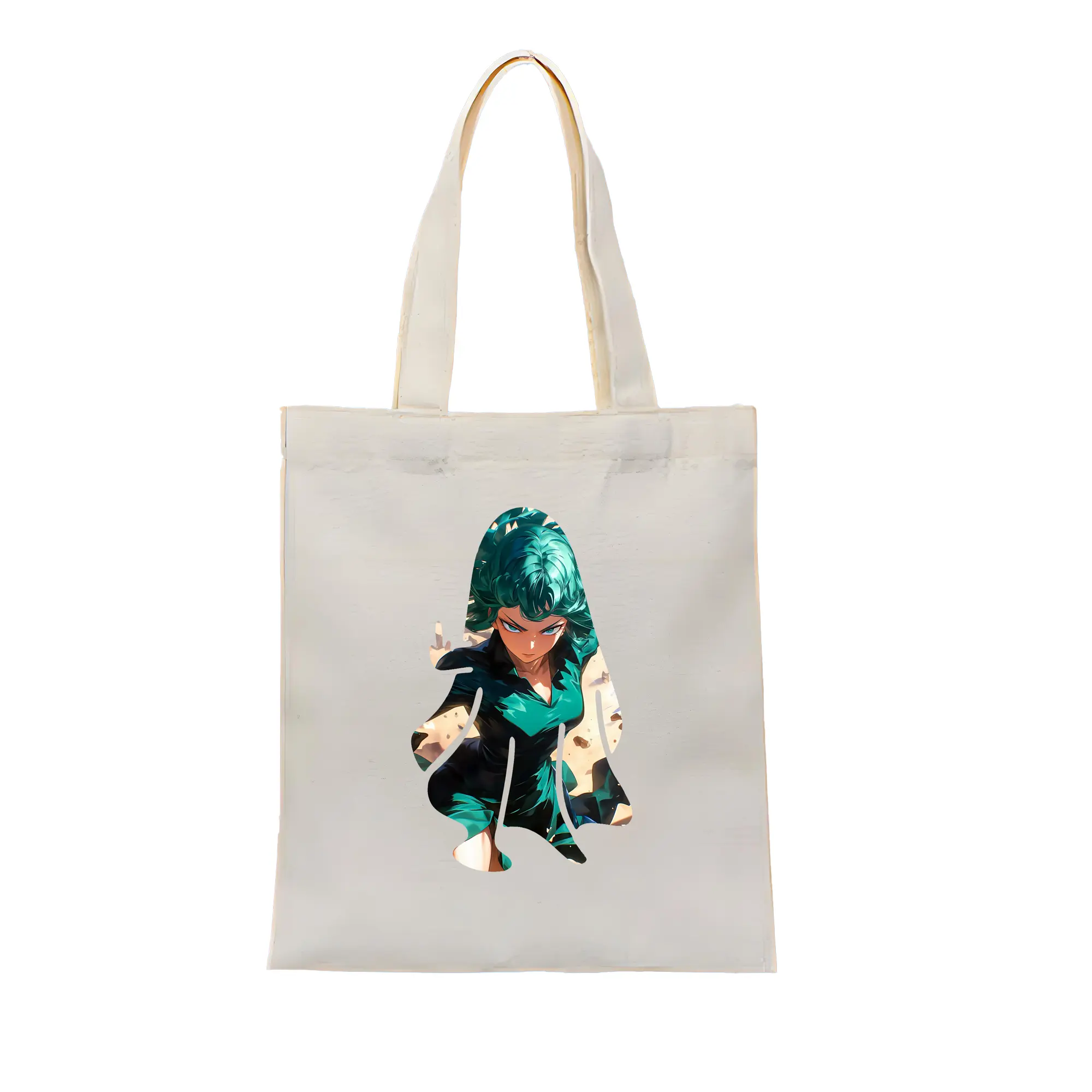 ワンパンマン グッズ 戦慄のタツマキ - 縦型キャンバス手提げバッグ(トートバッグ) ・ キャンバス素材 ・ ショッピング用 ・ 軽量 丈夫 お手入れ簡単