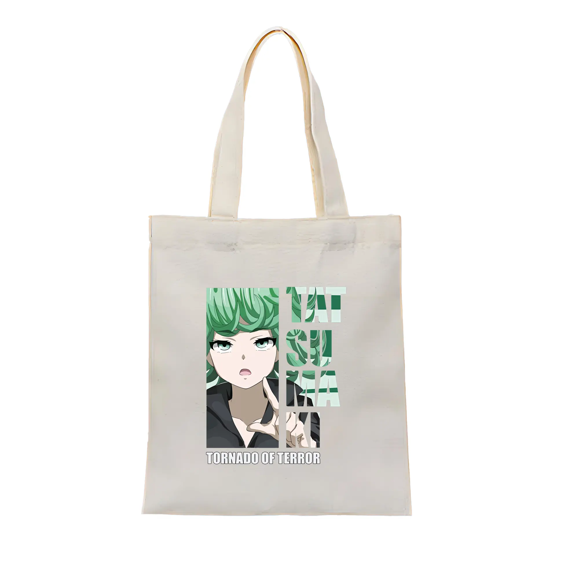 ワンパンマン グッズ 戦慄のタツマキ - 縦型キャンバス手提げバッグ(トートバッグ) ・ キャンバス素材 ・ ショッピング用 ・ 軽量 丈夫 お手入れ簡単
