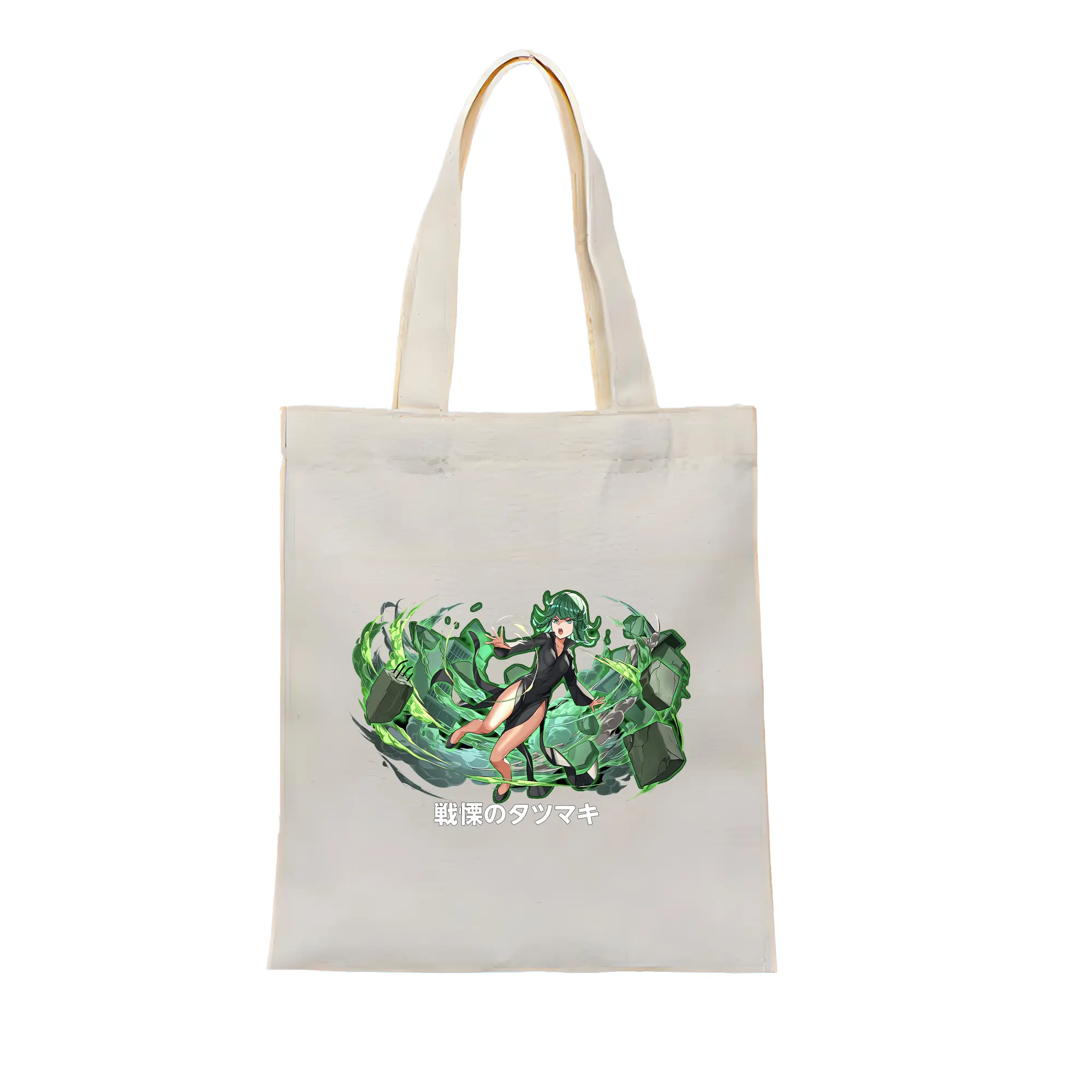 ワンパンマン グッズ 戦慄のタツマキ - 縦型キャンバス手提げバッグ(トートバッグ) ・ キャンバス素材 ・ ショッピング用 ・ 軽量 丈夫 お手入れ簡単