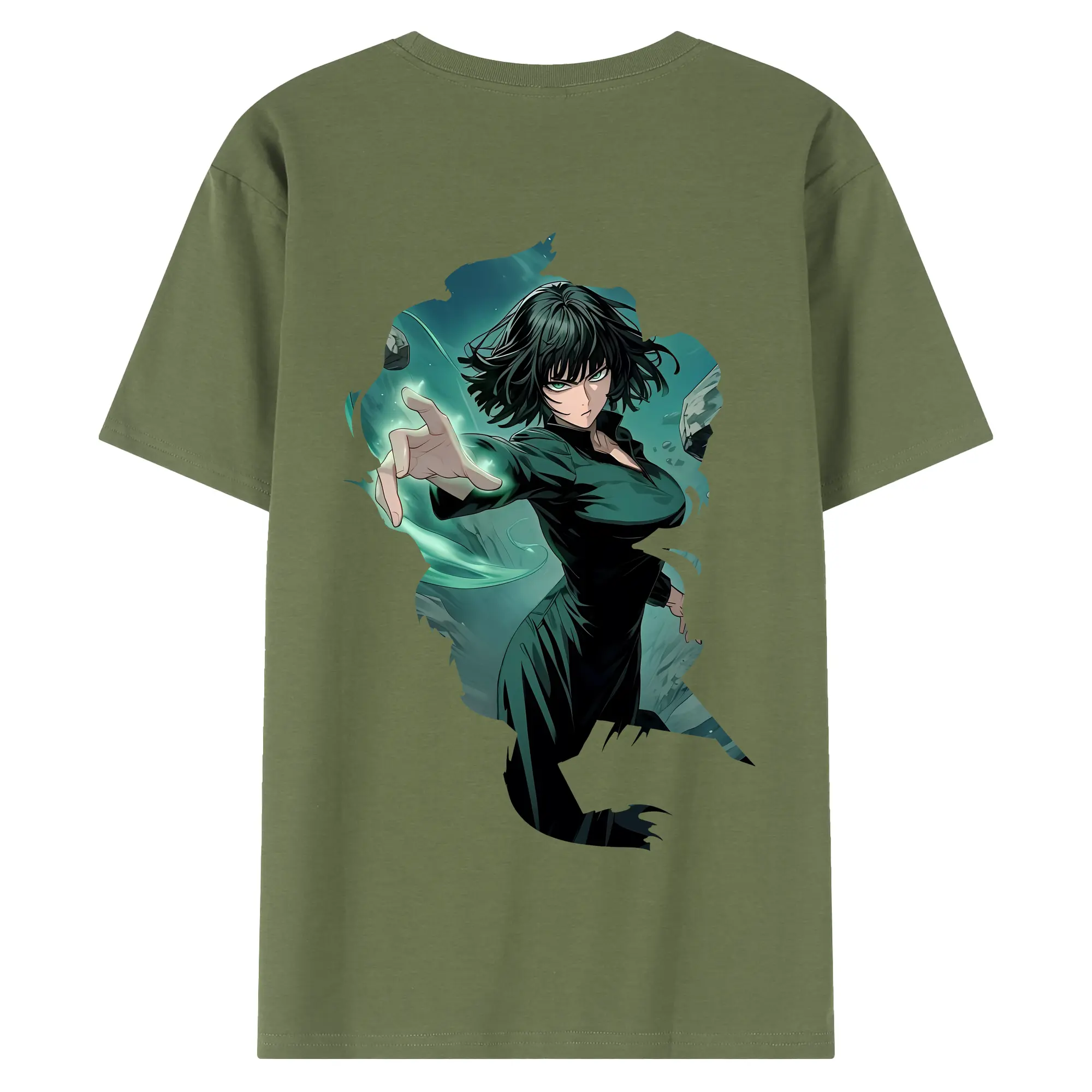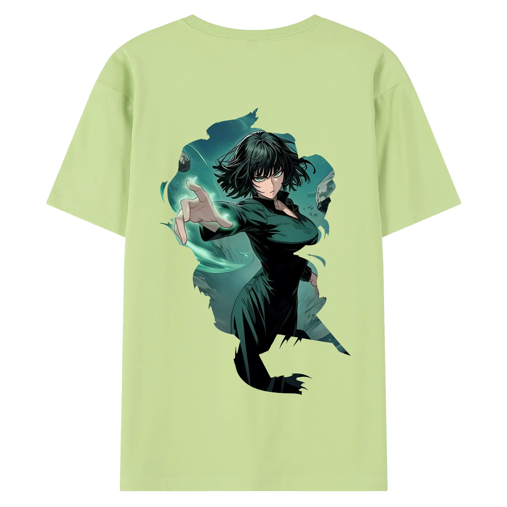 ワンパンマン グッズ 地獄のフブキ - 綿100% ヴィンテージ風 半袖Tシャツ ・ 背面プリント ・ 柔らか肌触り ・ 通気性 快適 ・ スポーツ カジュアル 外出用