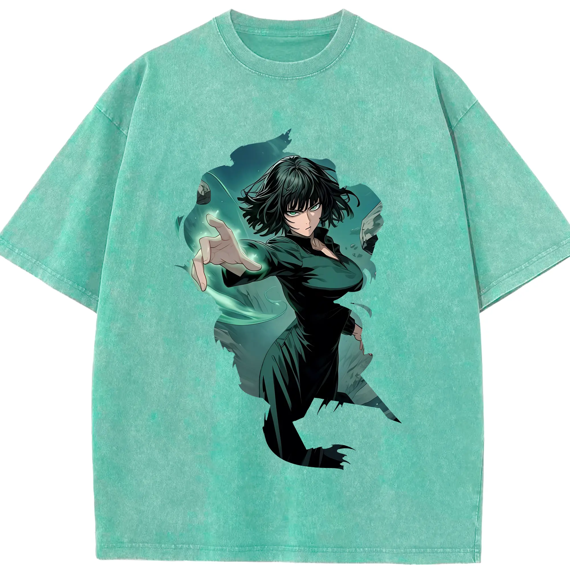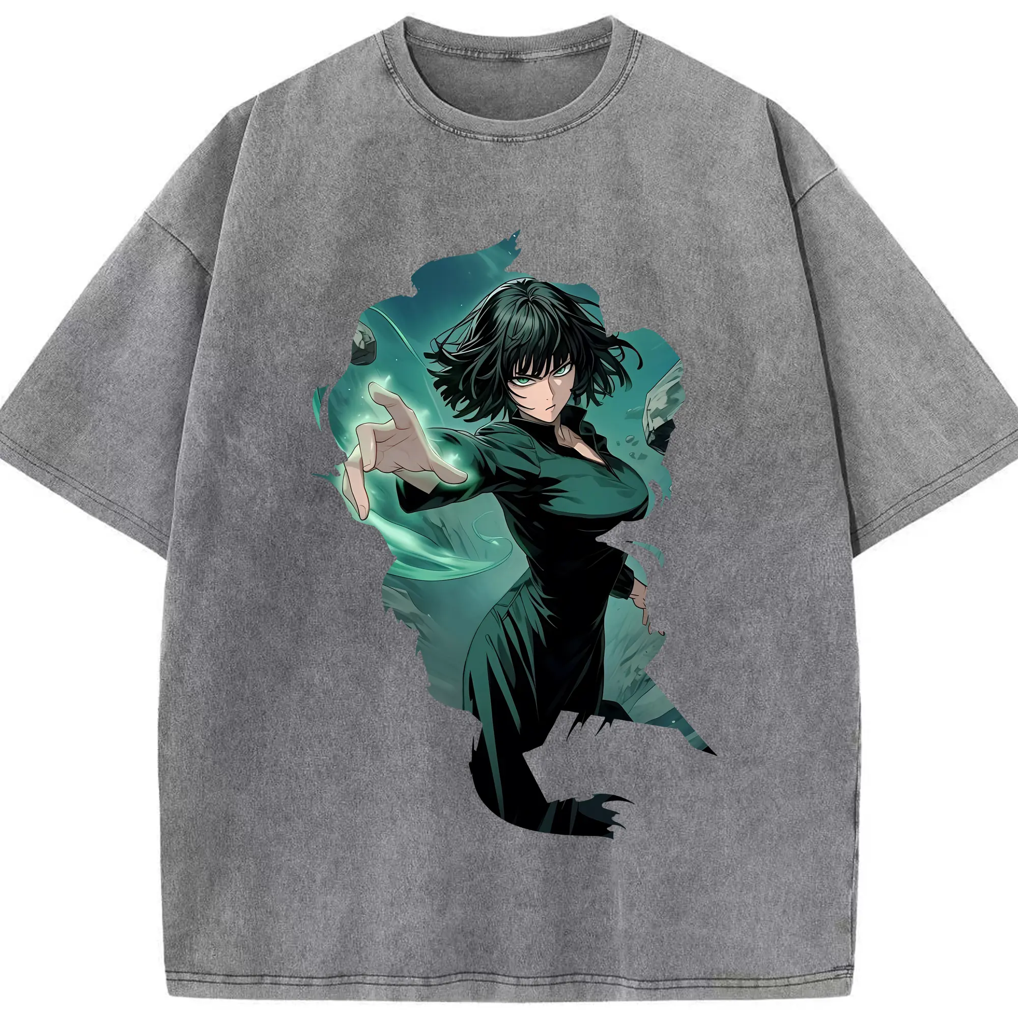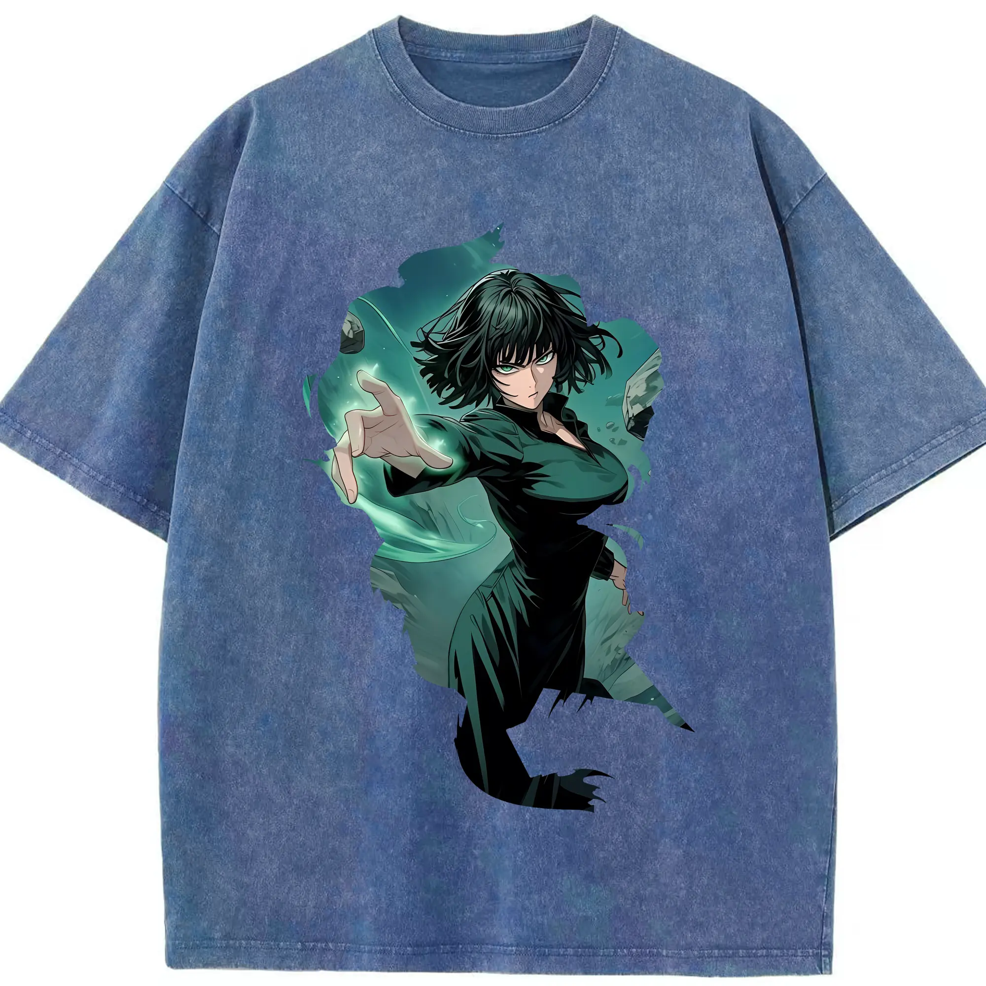 ワンパンマン グッズ 地獄のフブキ - 綿100% ヴィンテージ風 半袖Tシャツ ・ 背面プリント ・ 柔らか肌触り ・ 通気性 快適 ・ スポーツ カジュアル 外出用