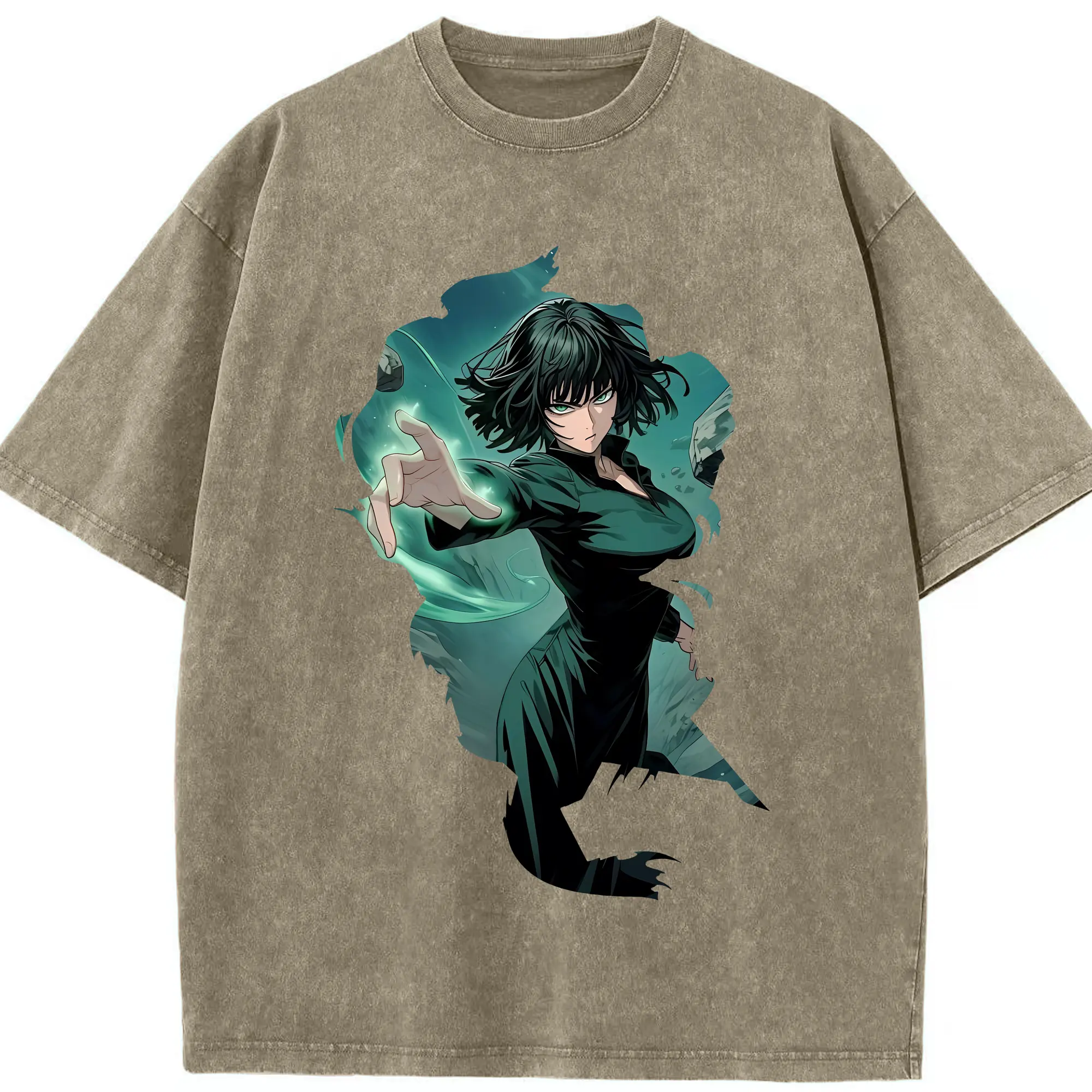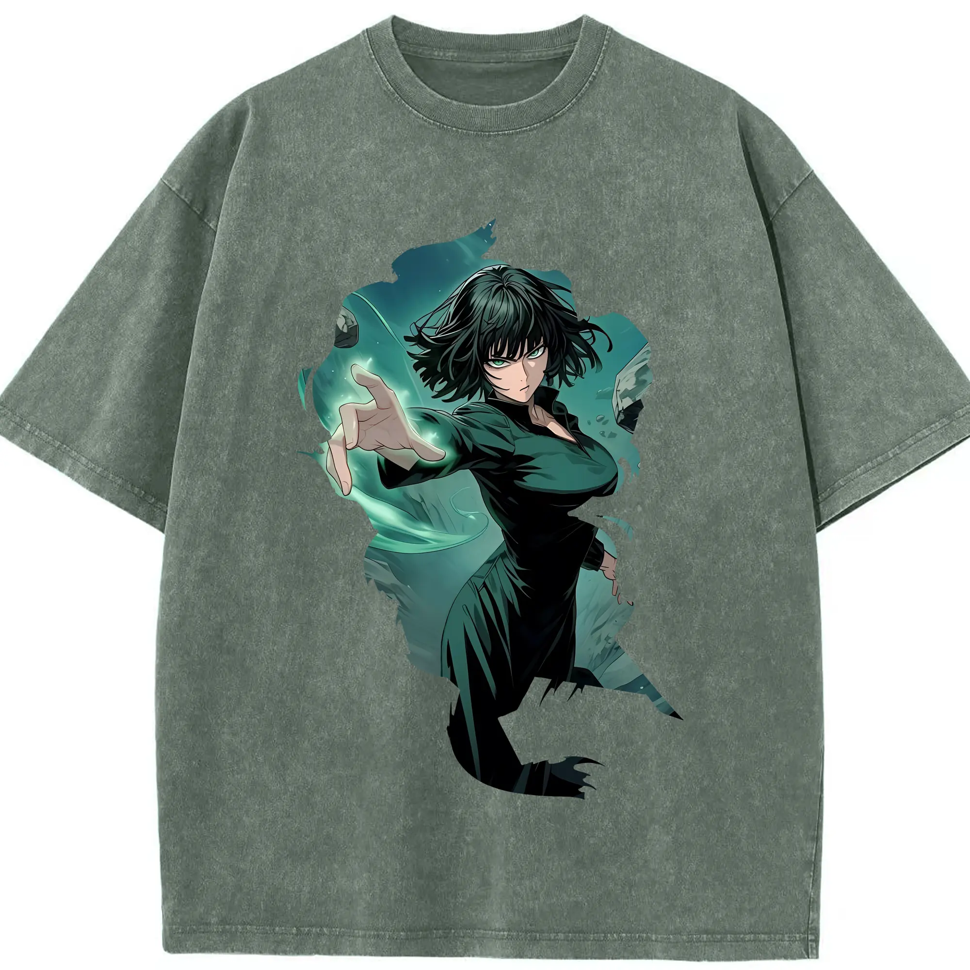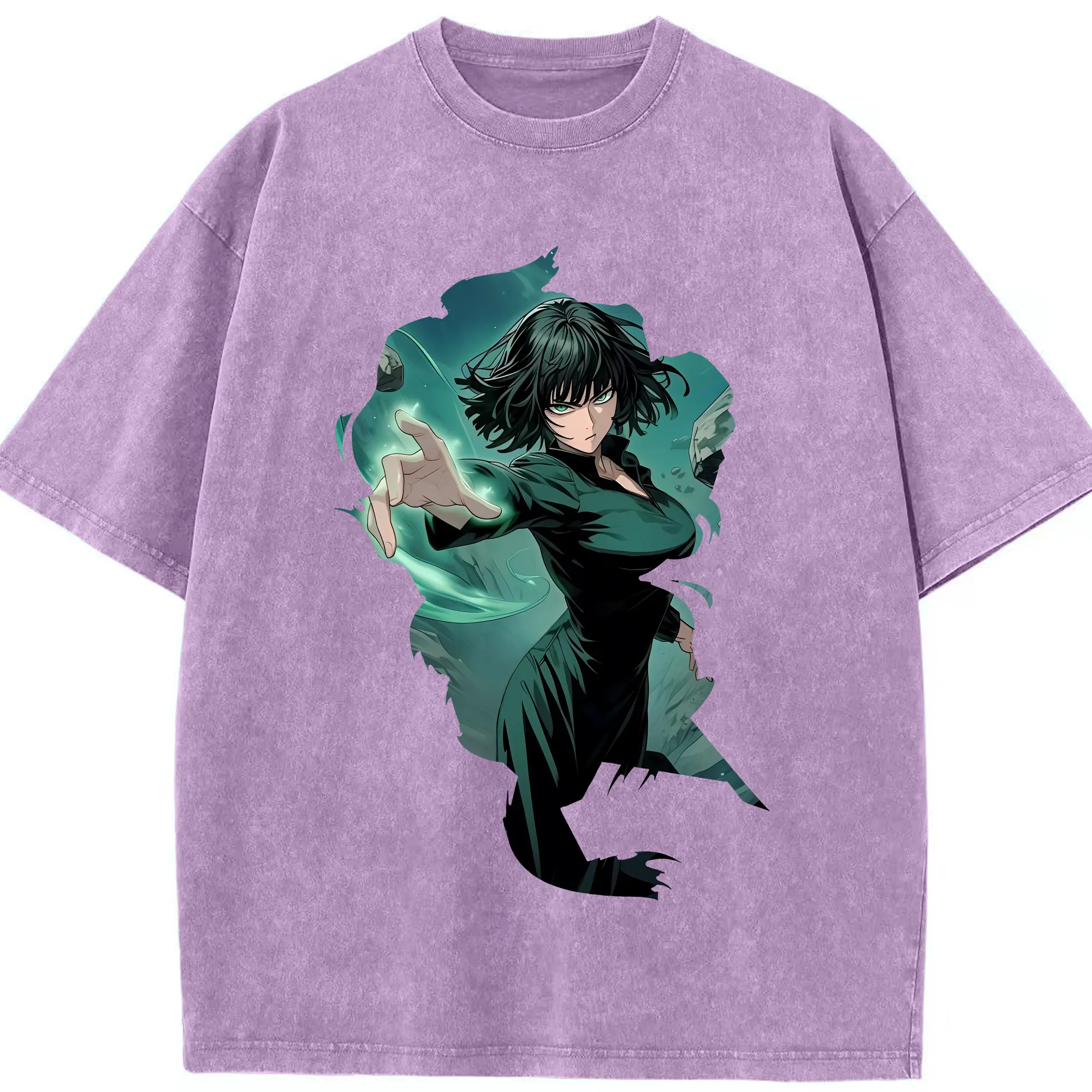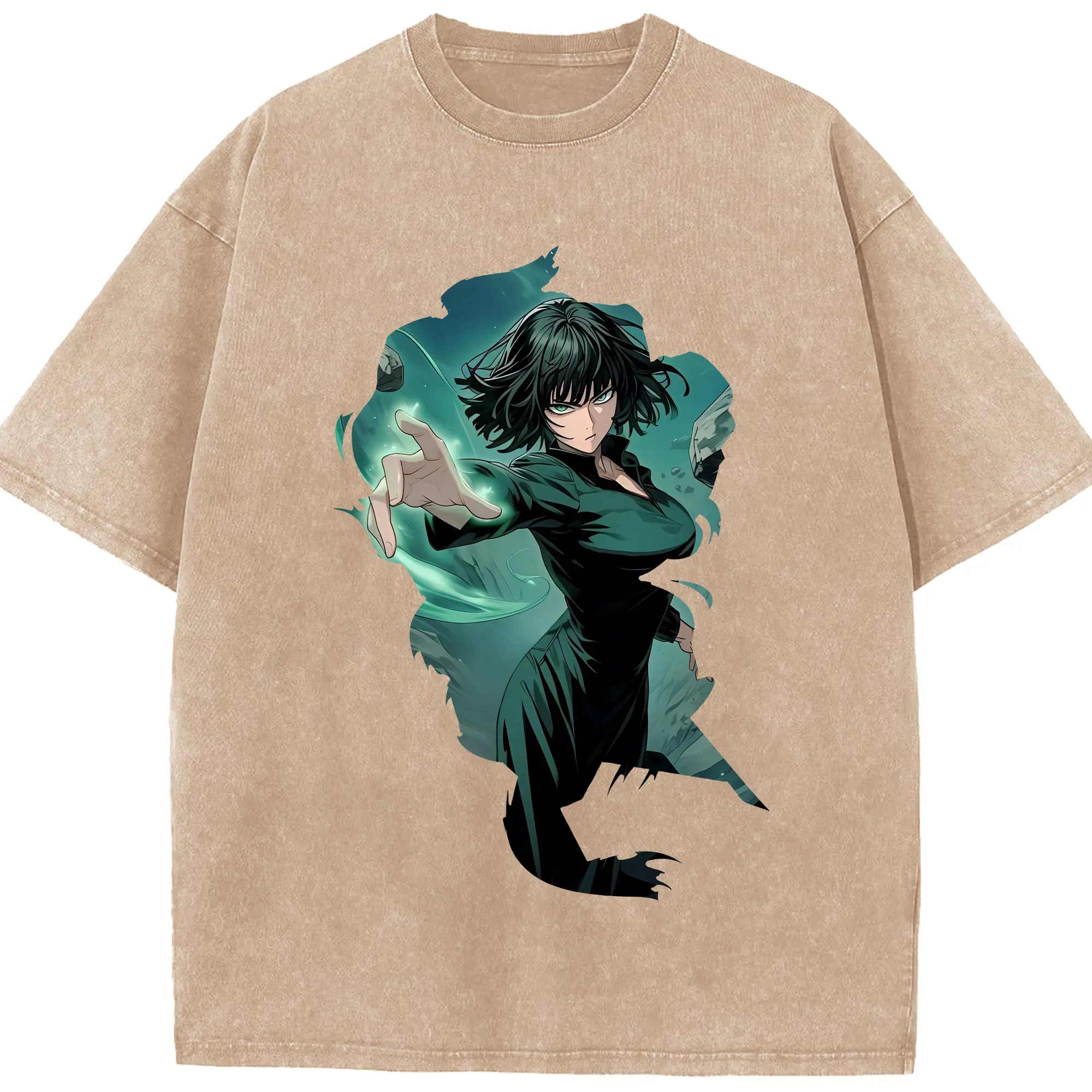 ワンパンマン グッズ 地獄のフブキ - 綿100% ヴィンテージ風 半袖Tシャツ ・ 背面プリント ・ 柔らか肌触り ・ 通気性 快適 ・ スポーツ カジュアル 外出用
