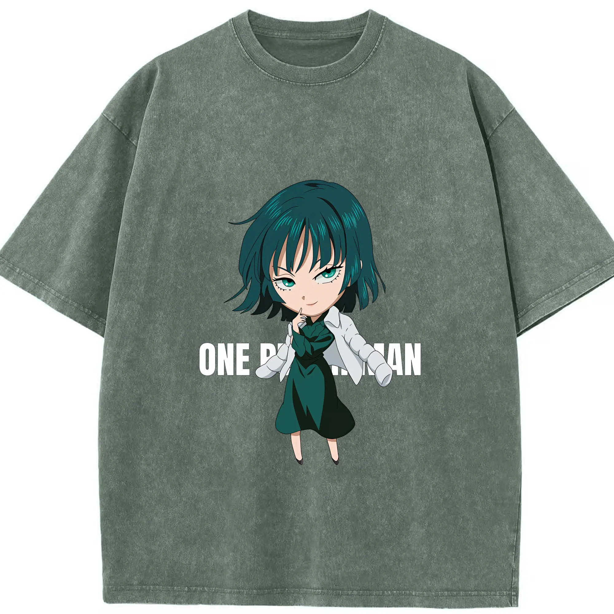 ワンパンマン グッズ 地獄のフブキ - 綿100% ヴィンテージ風 半袖Tシャツ ・ 背面プリント ・ 柔らか肌触り ・ 通気性 快適 ・ スポーツ カジュアル 外出用