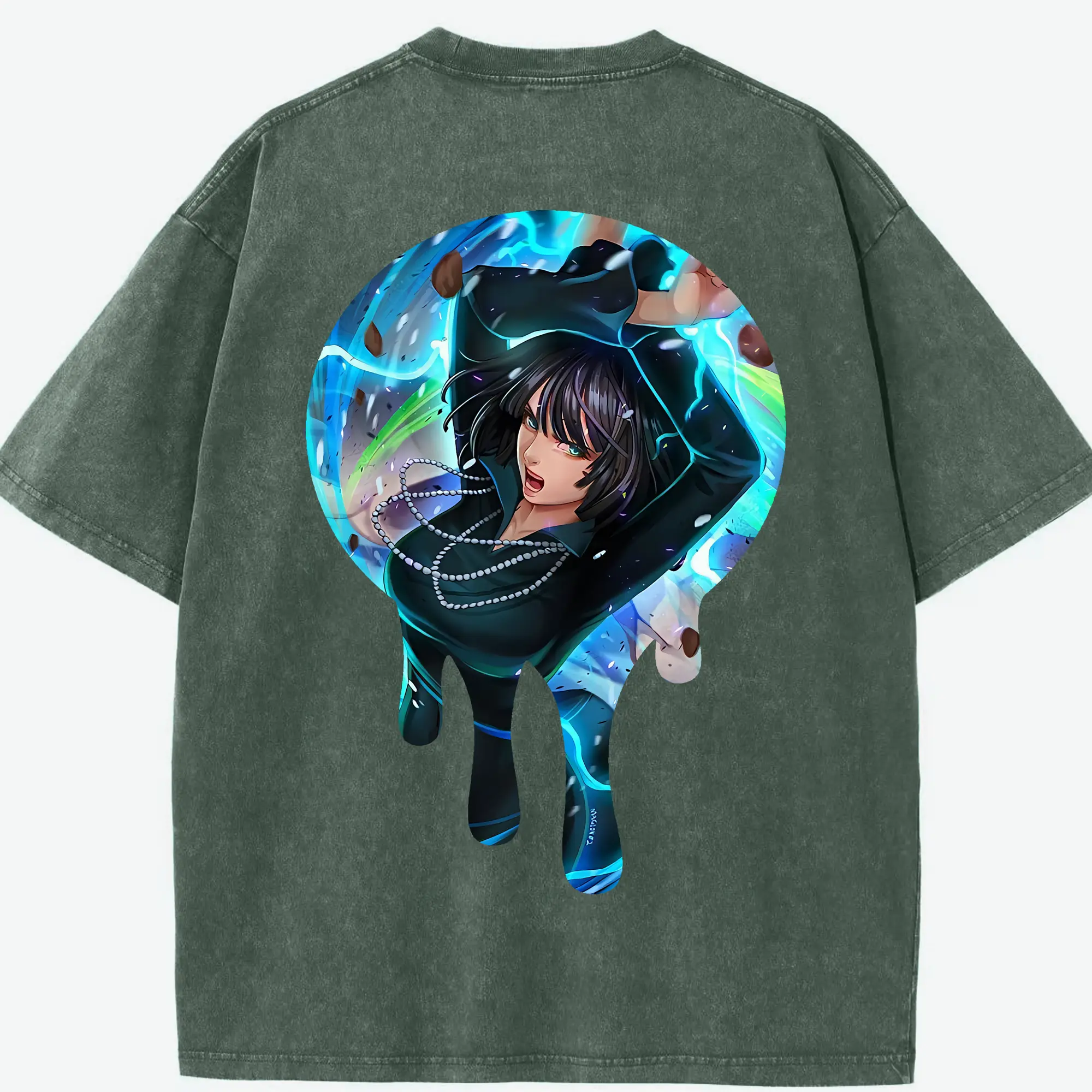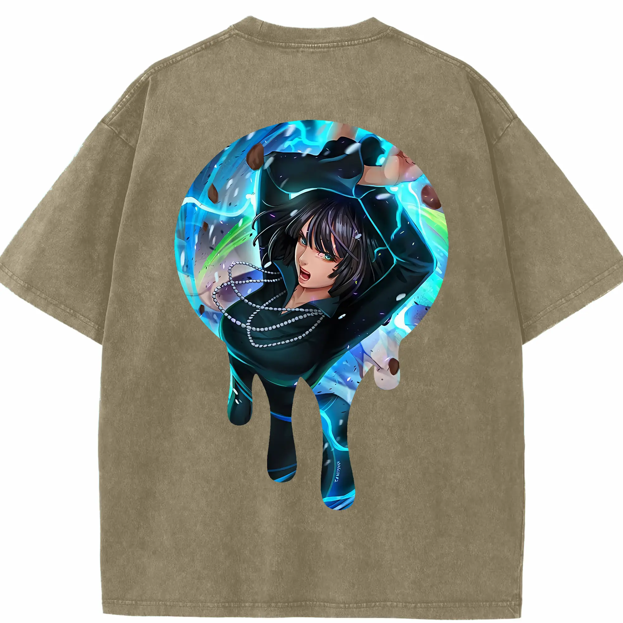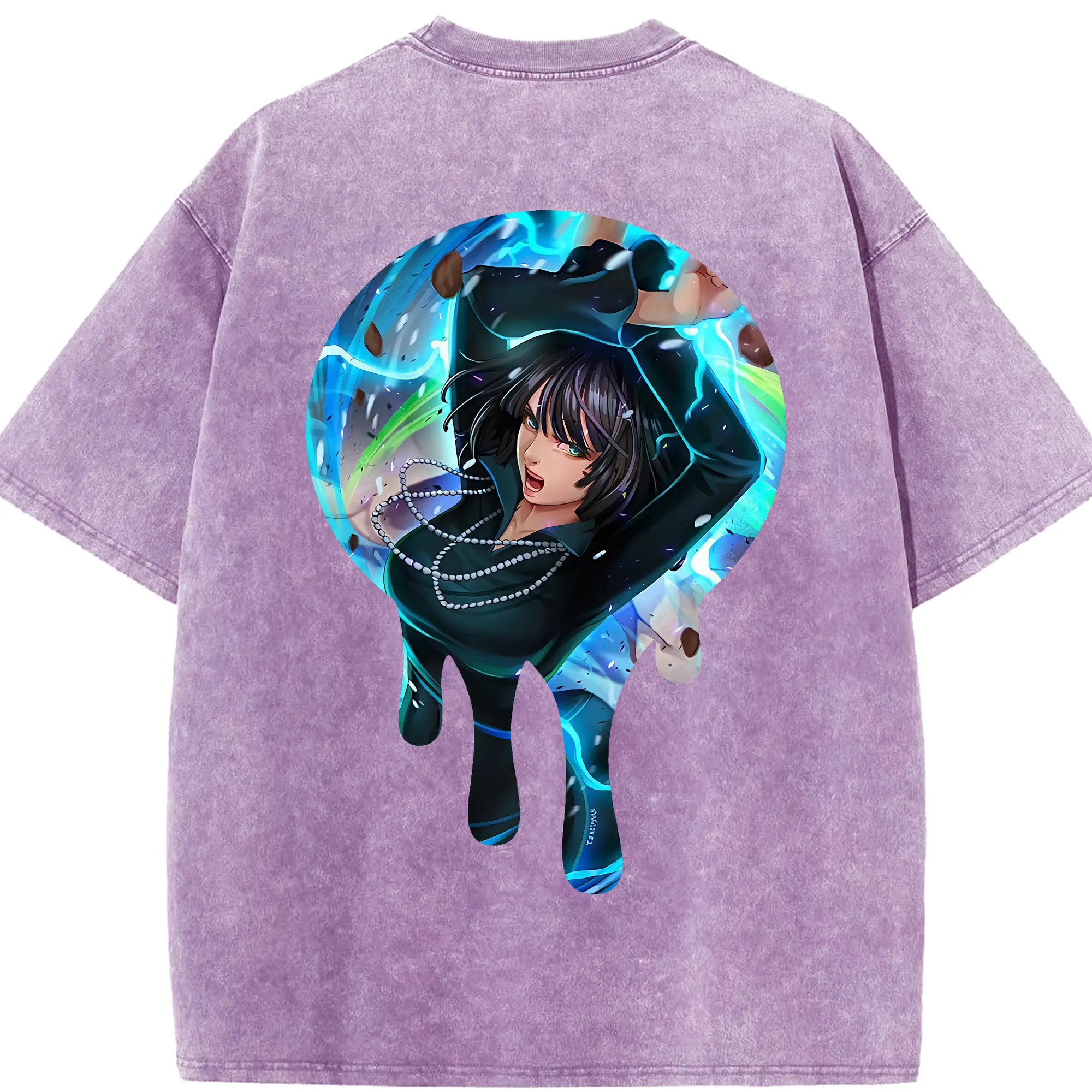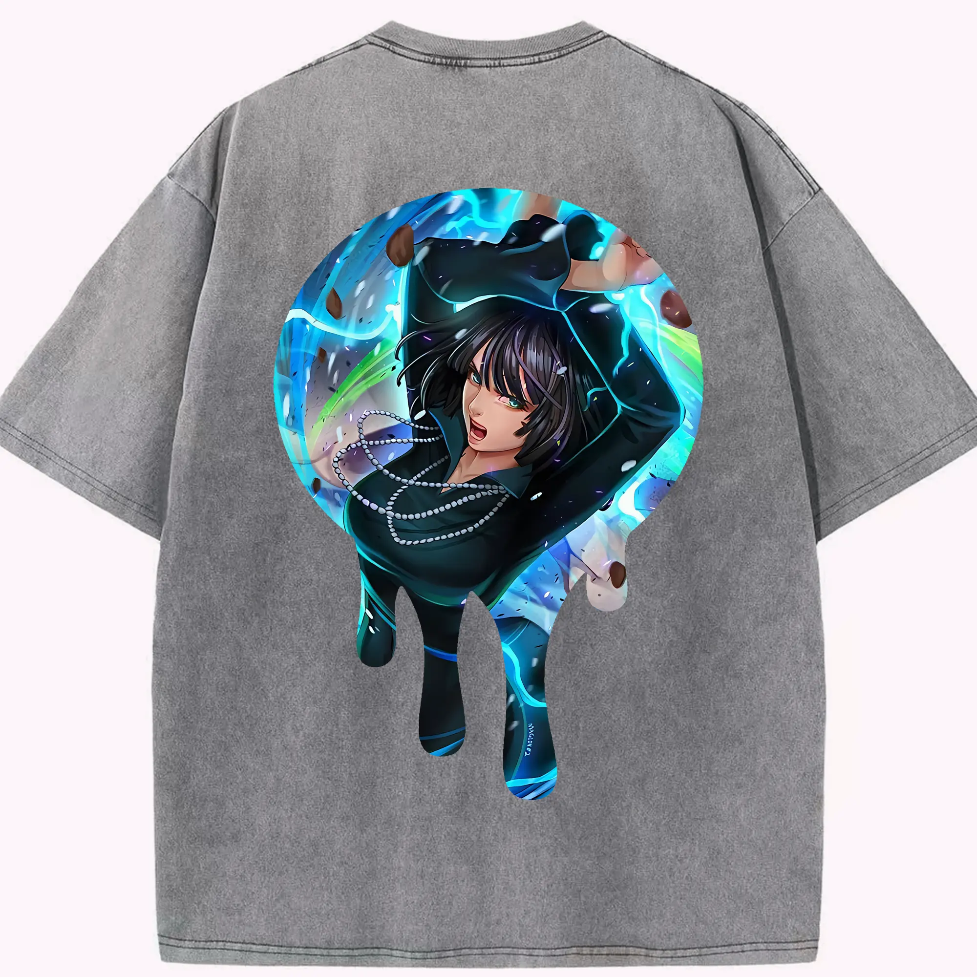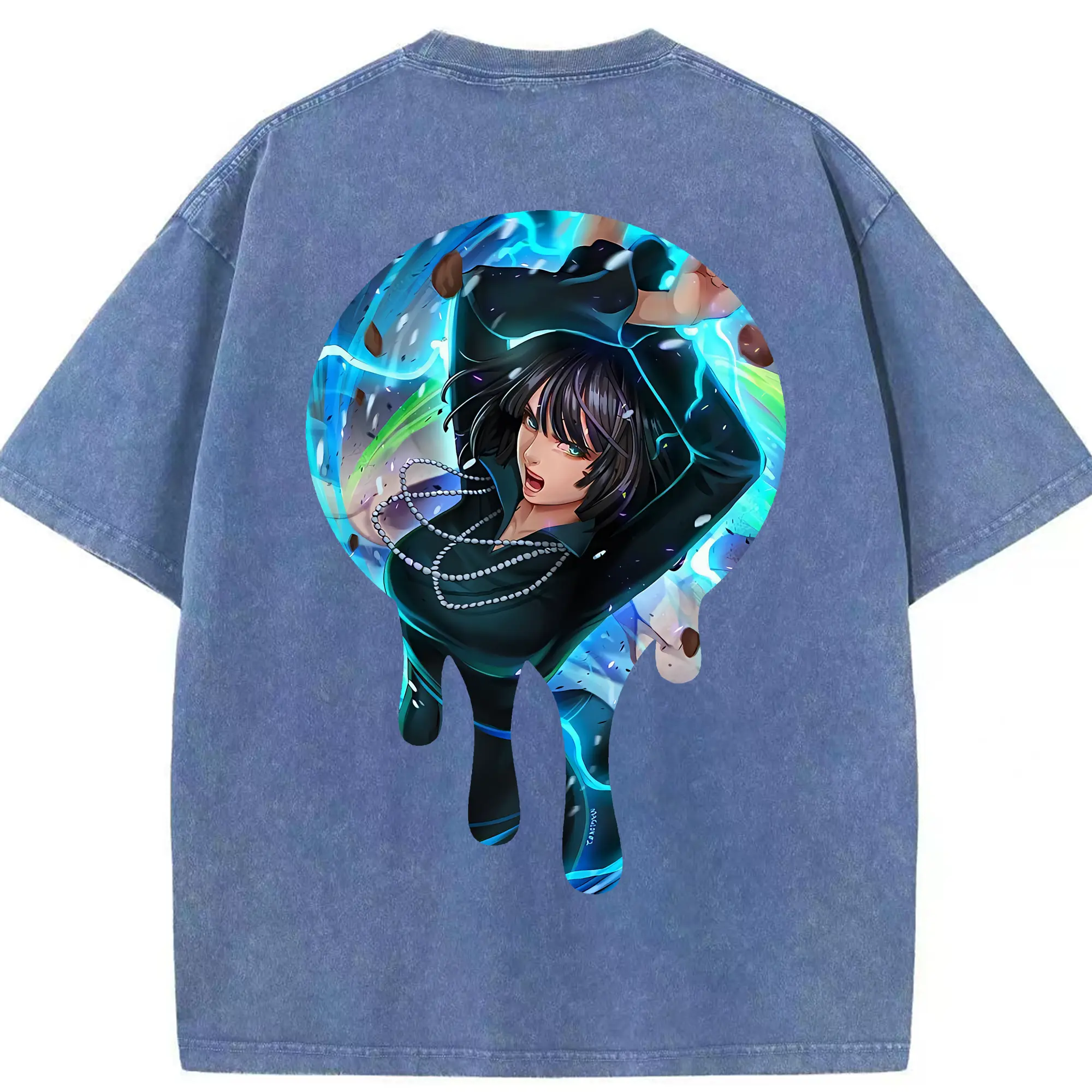ワンパンマン グッズ 地獄のフブキ - 綿100% ヴィンテージ風 半袖Tシャツ ・ フロントプリント ・ 柔らか肌触り ・ 通気性 快適 ・ スポーツ カジュアル 外出用