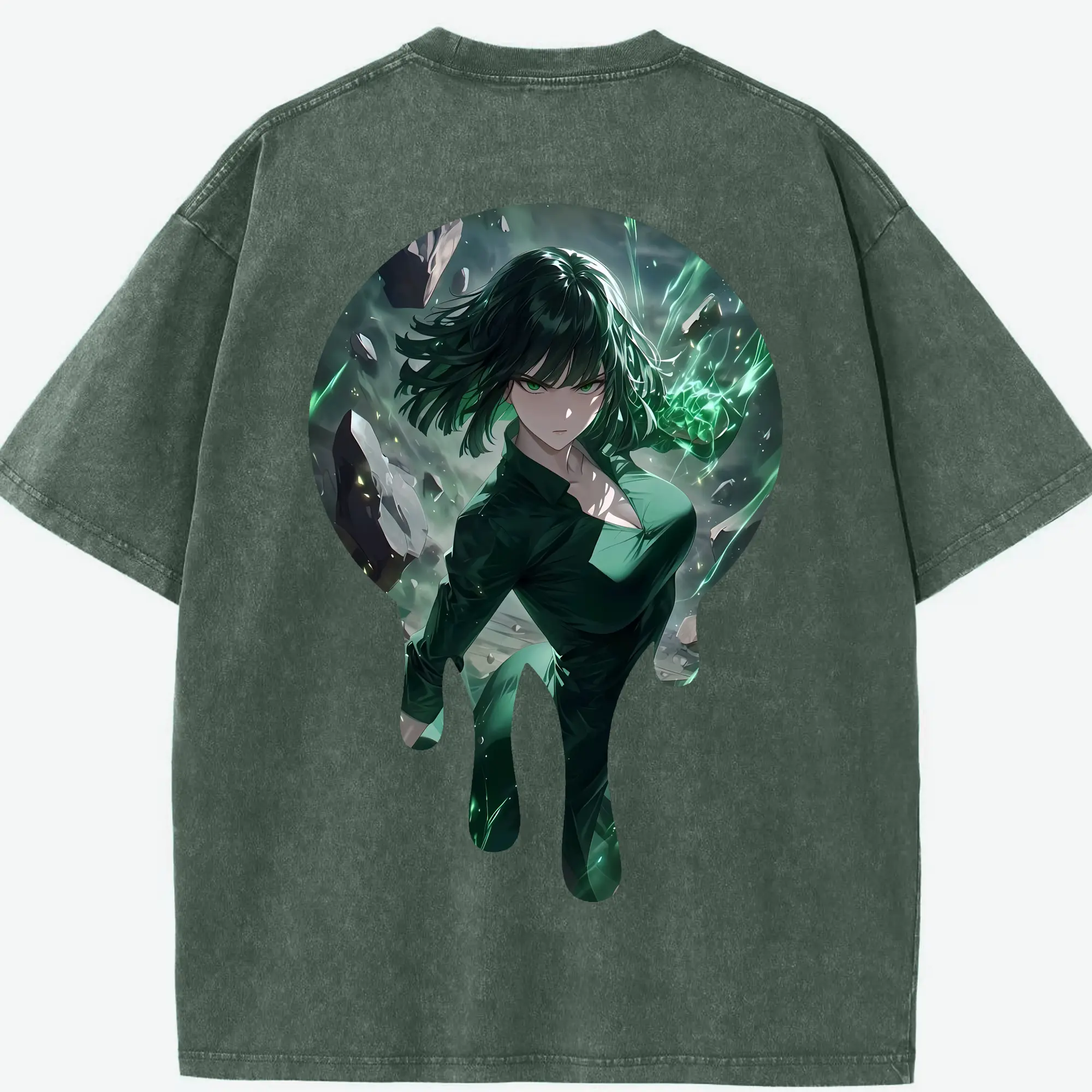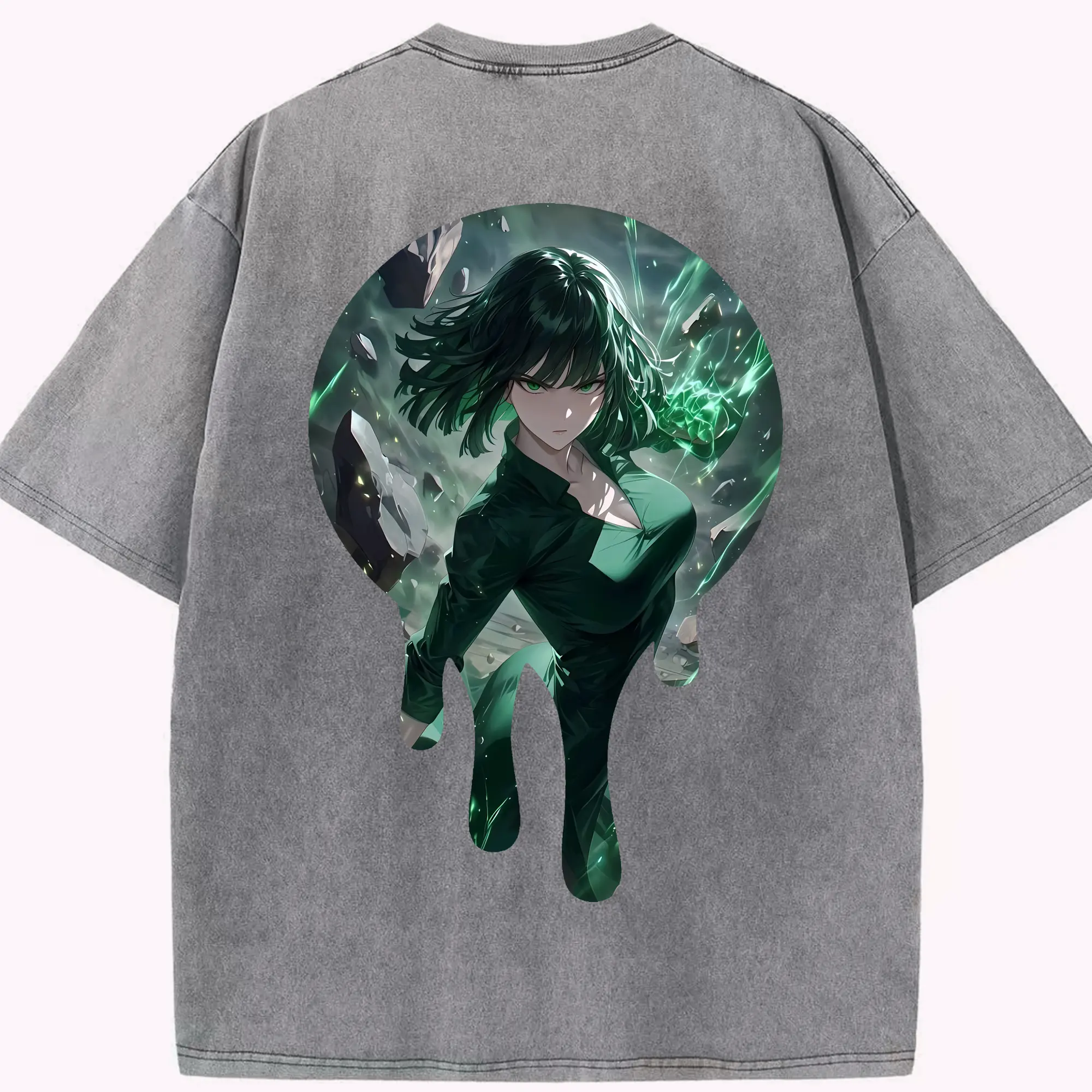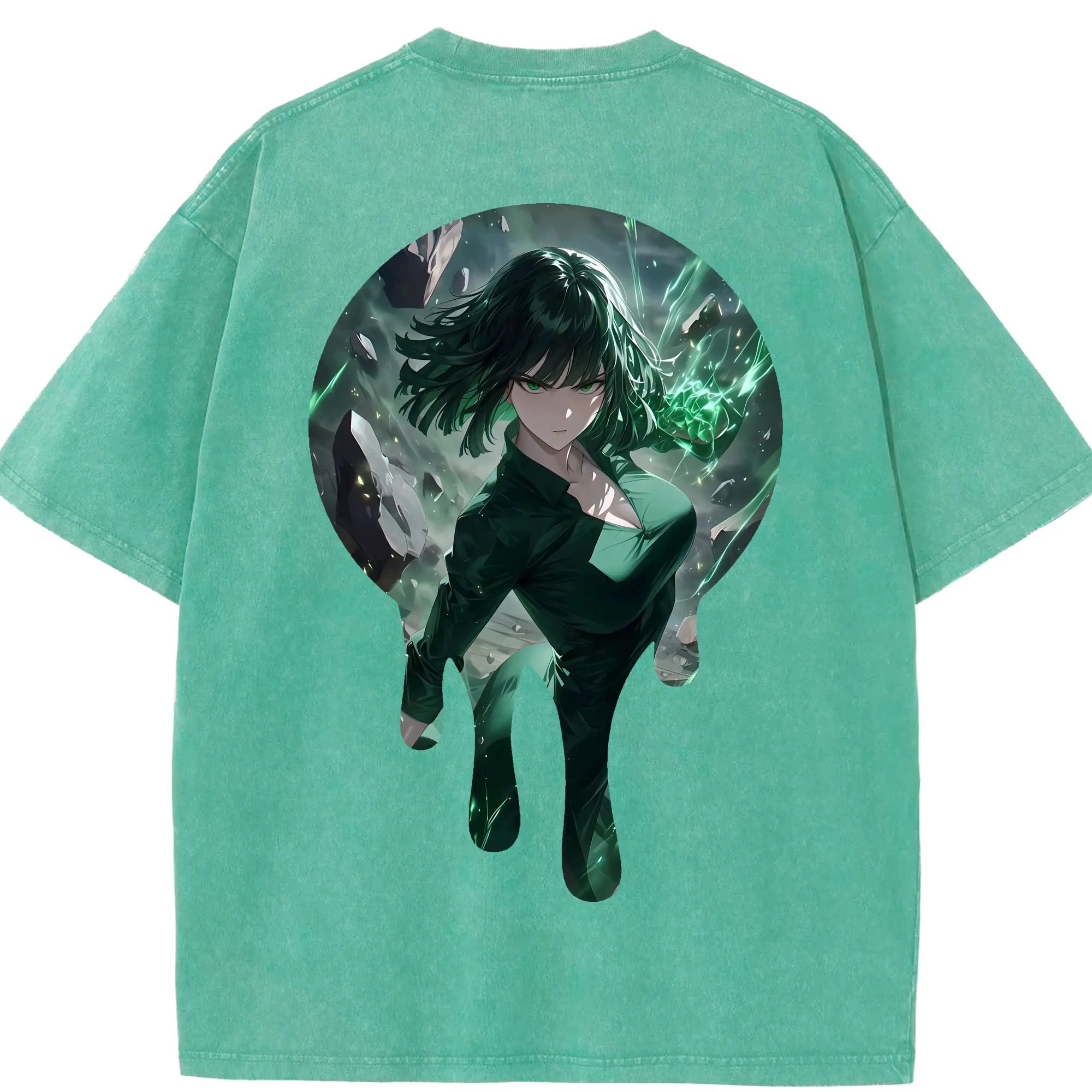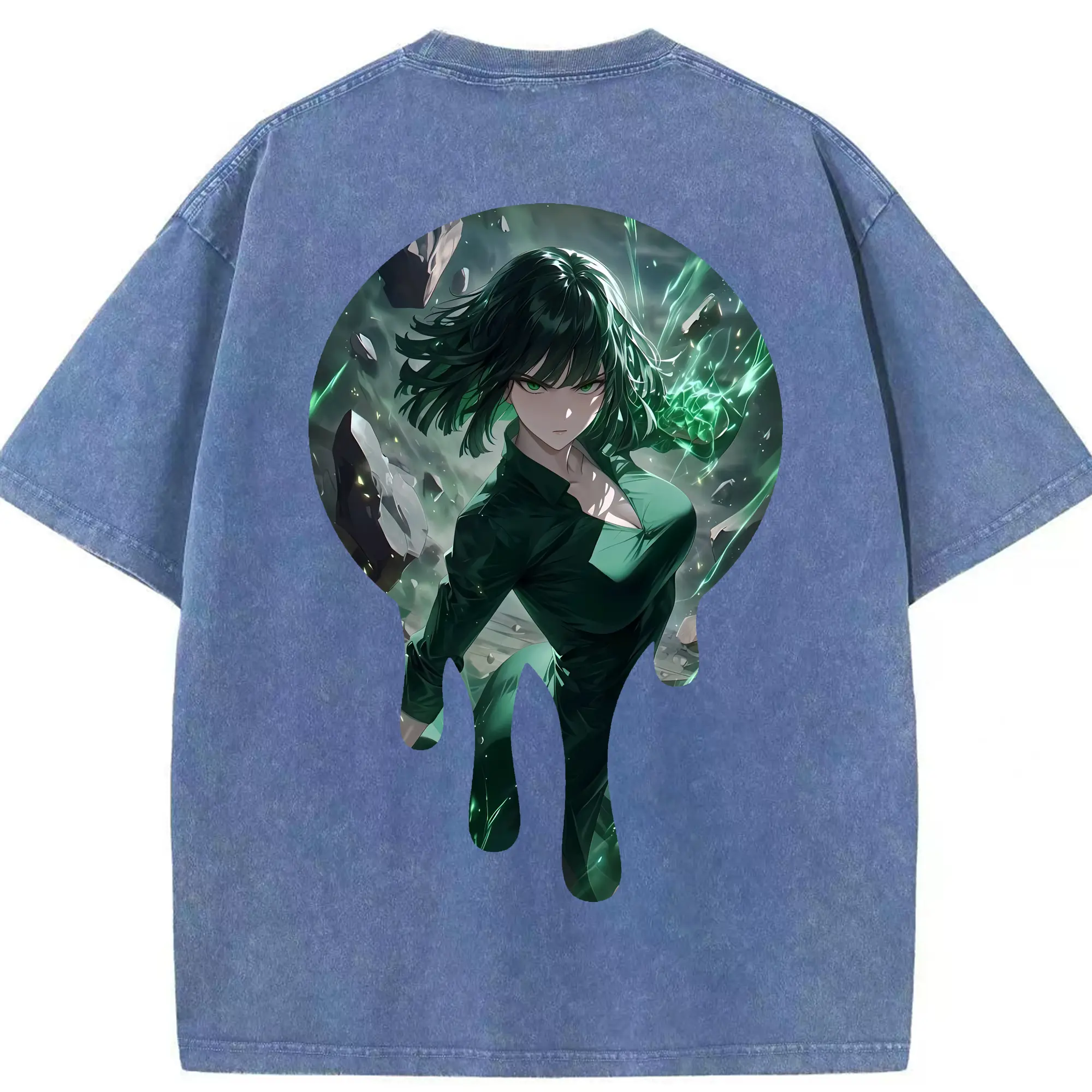 ワンパンマン グッズ 地獄のフブキ - 綿100% ヴィンテージ風 半袖Tシャツ ・ フロントプリント ・ 柔らか肌触り ・ 通気性 快適 ・ スポーツ カジュアル 外出用