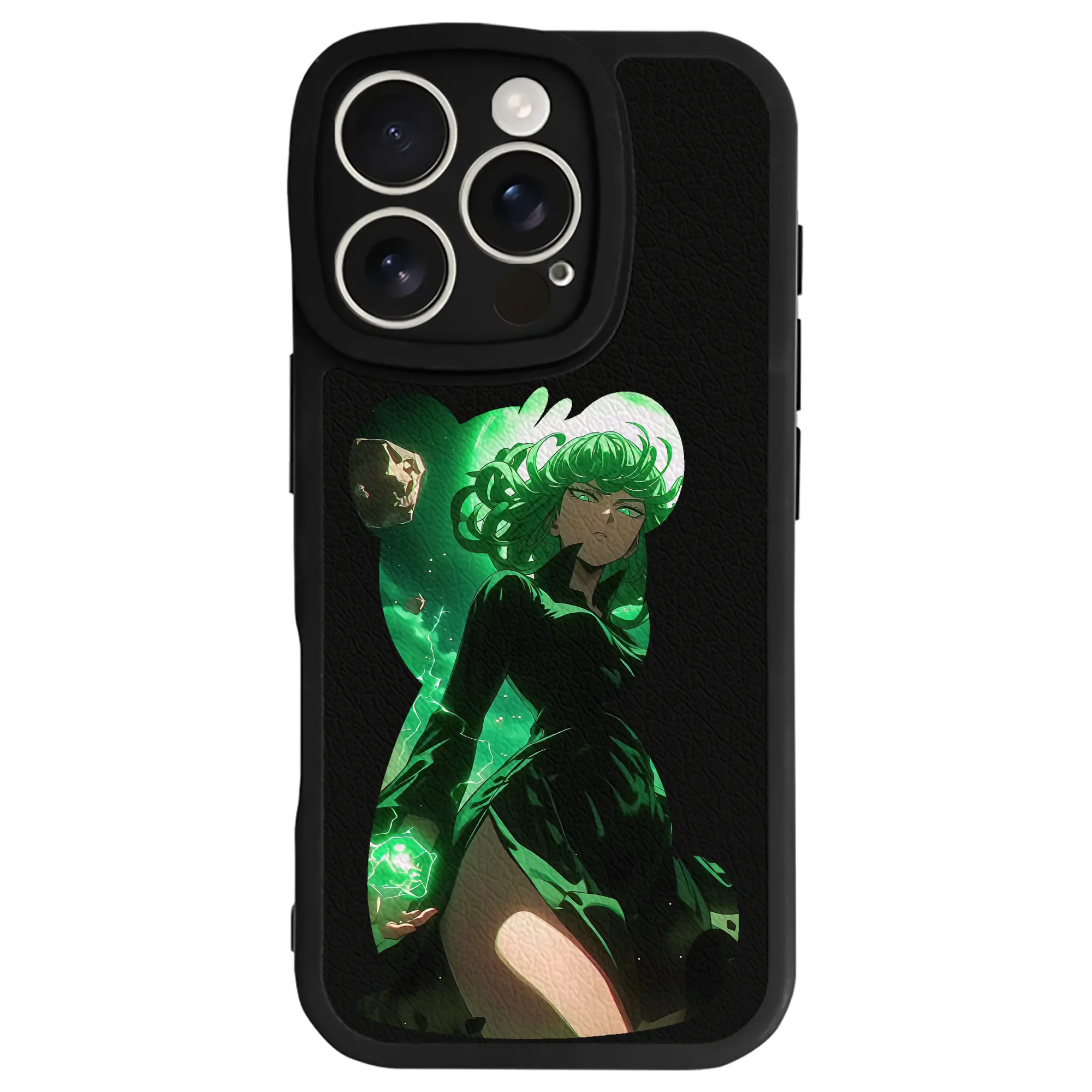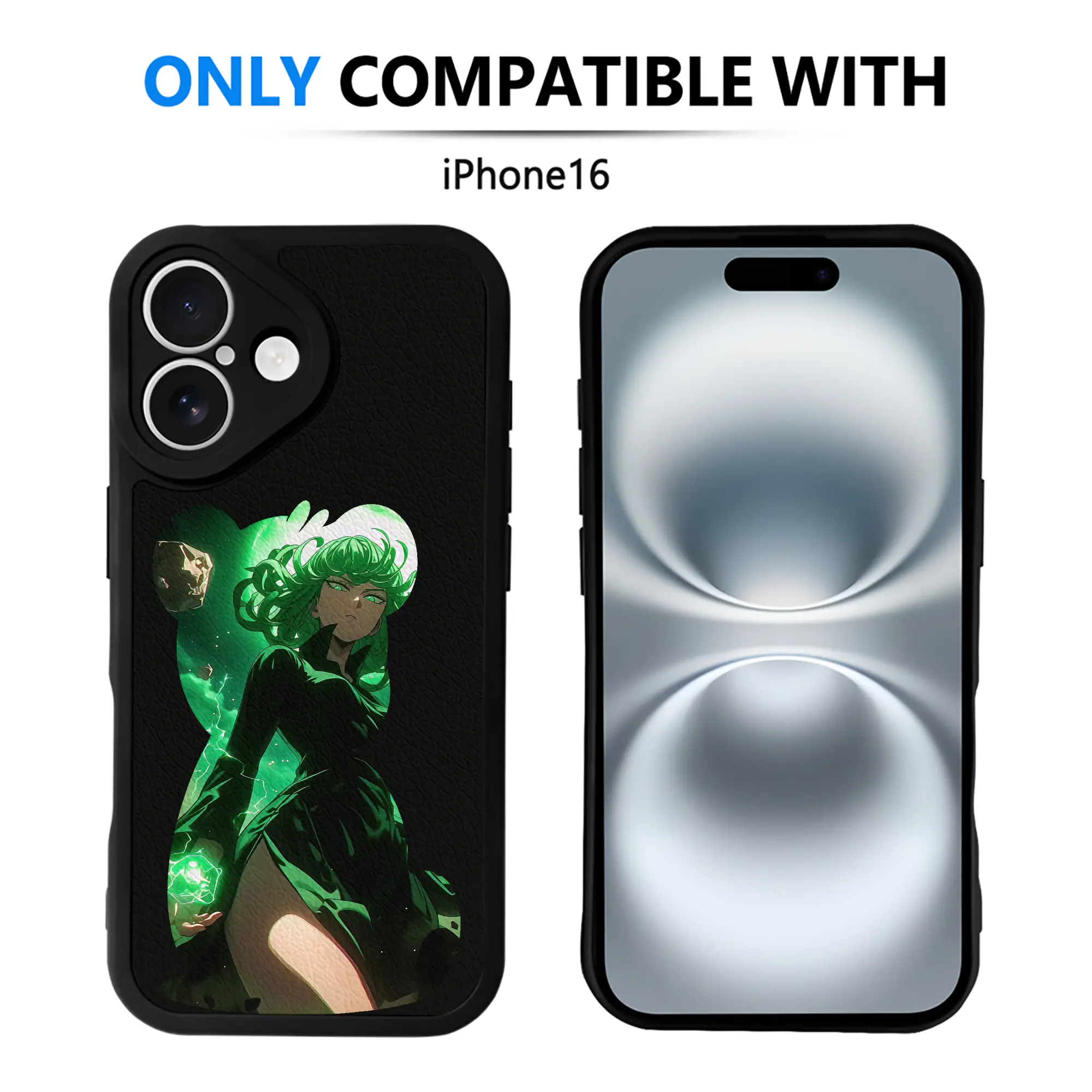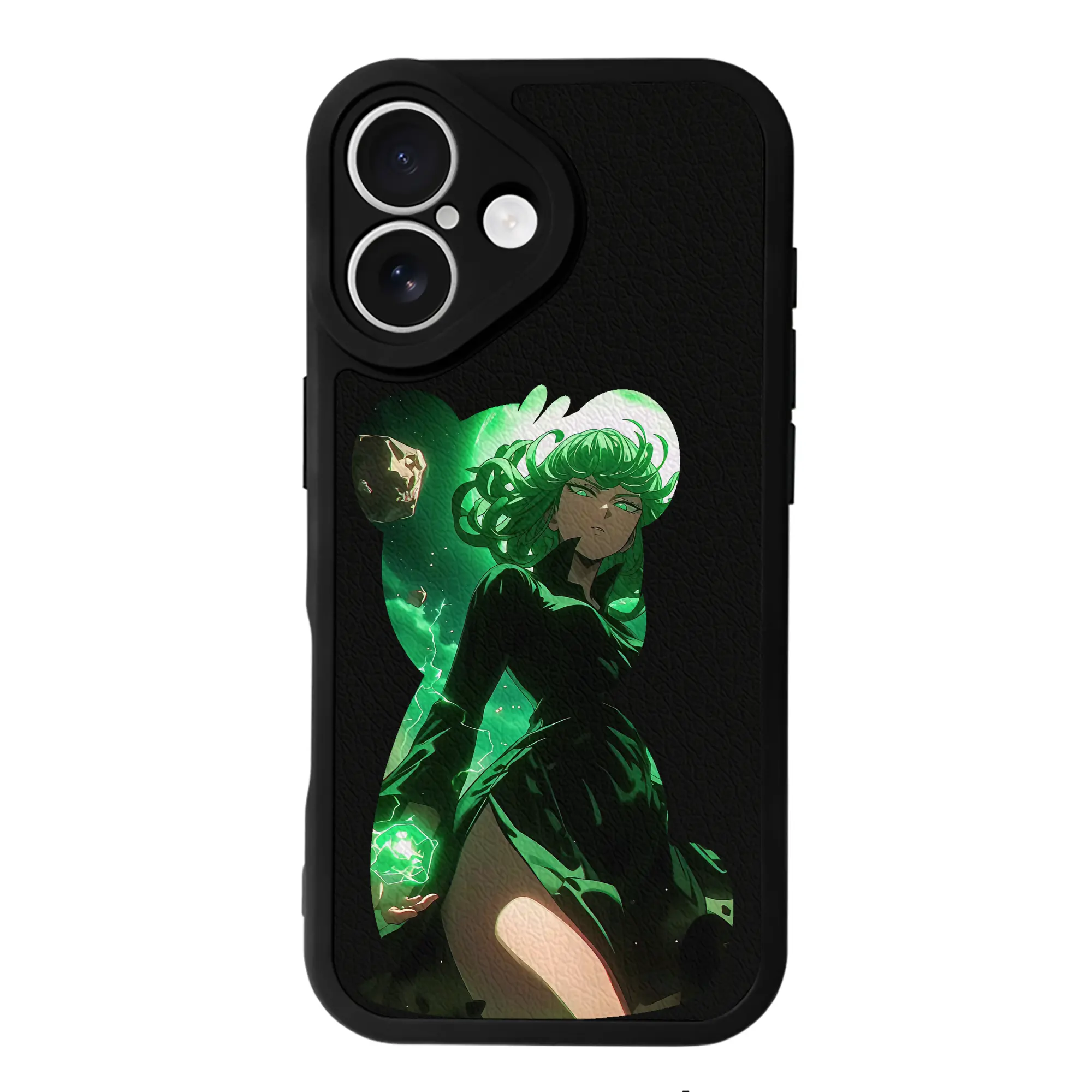 ワンパンマン グッズ 戦慄のタツマキ - IPhone 16シリーズ対応 ・ シリコンスマホケース ・ レザー調 ・ 高精度フィット ・ 耐衝撃 ・ ワイヤレス充電対応 ・ 精密カット