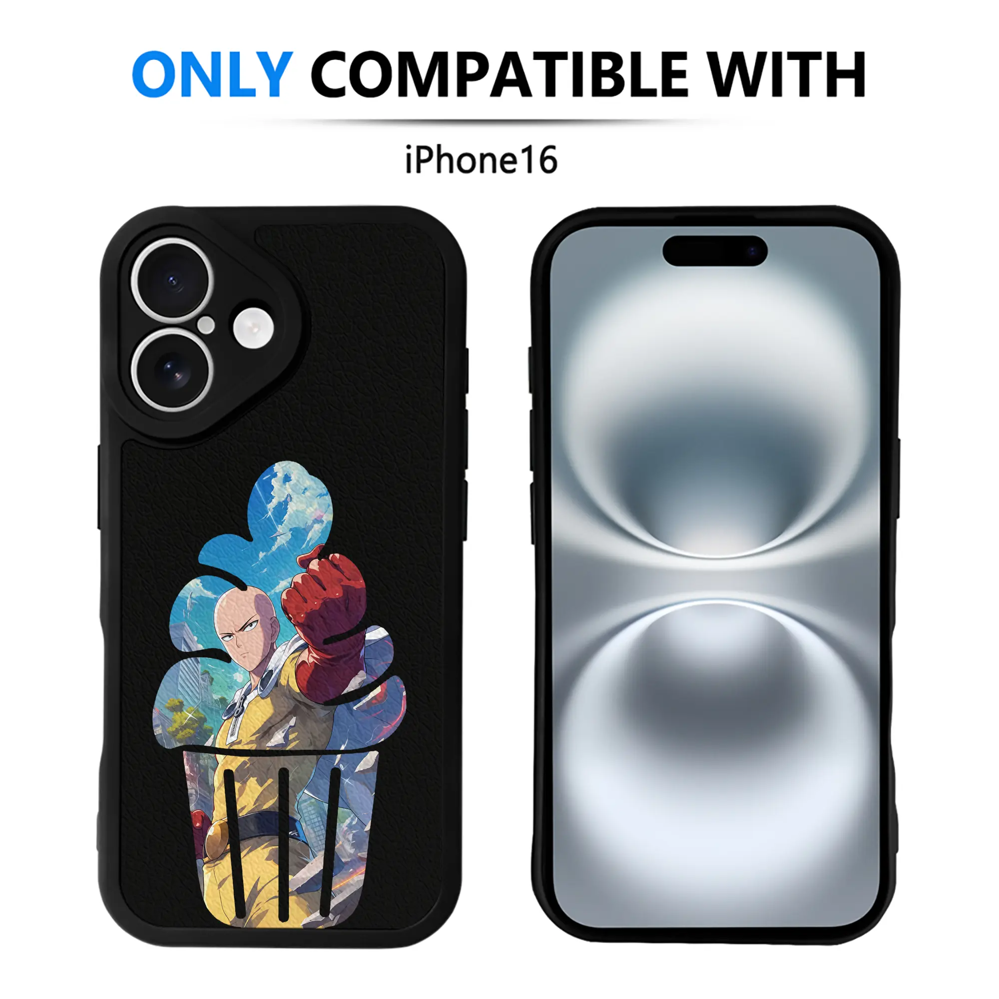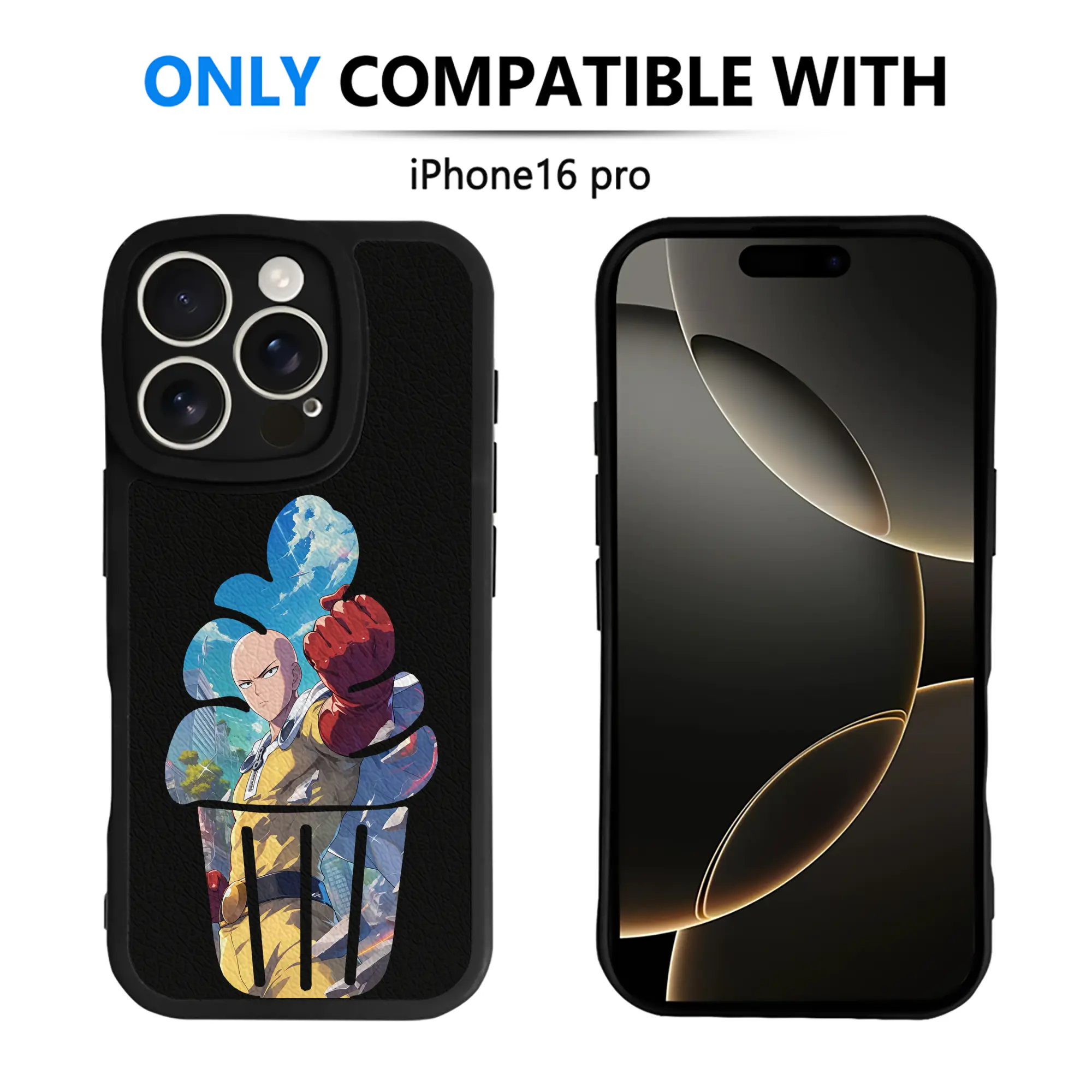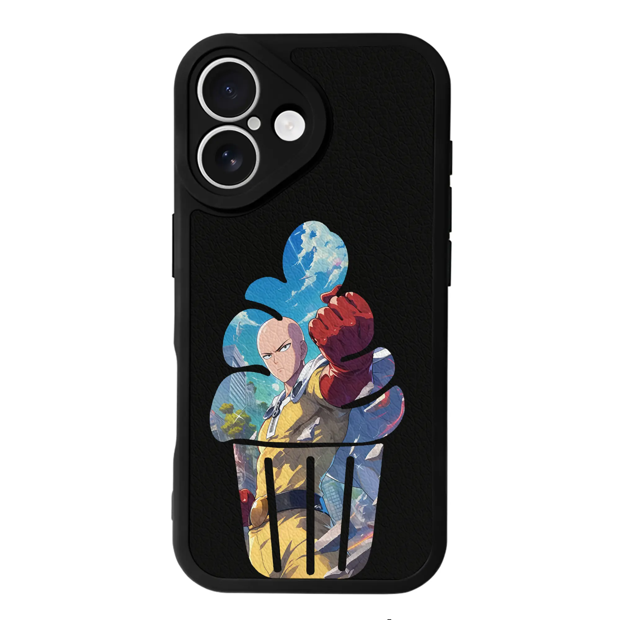 ワンパンマン グッズ サイタマ - IPhone 16シリーズ対応 ・ シリコンスマホケース ・ レザー調 ・ 高精度フィット ・ 耐衝撃 ・ ワイヤレス充電対応 ・ 精密カット