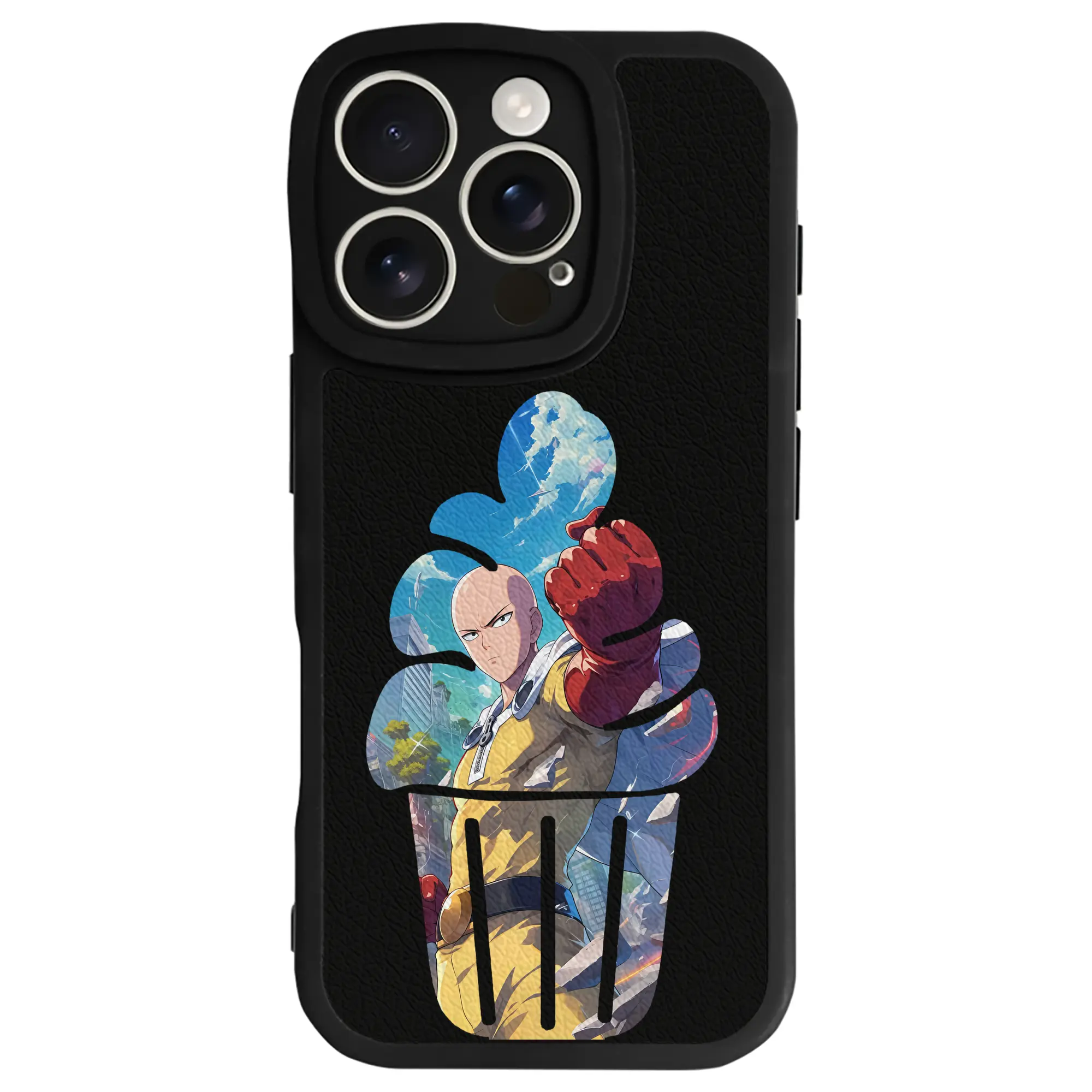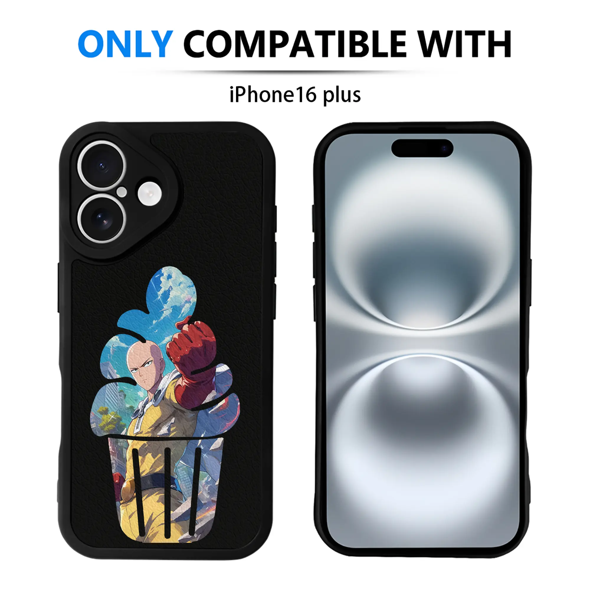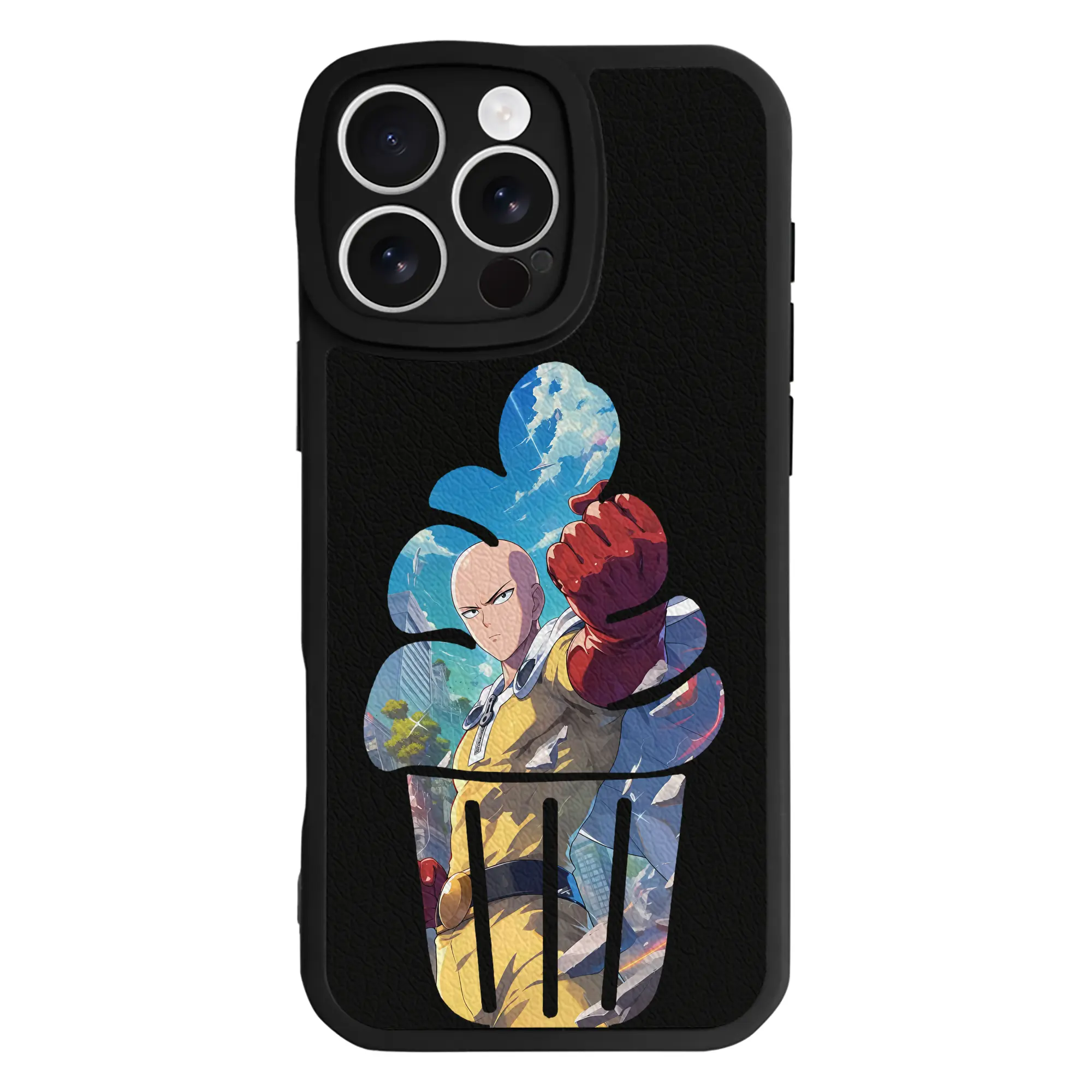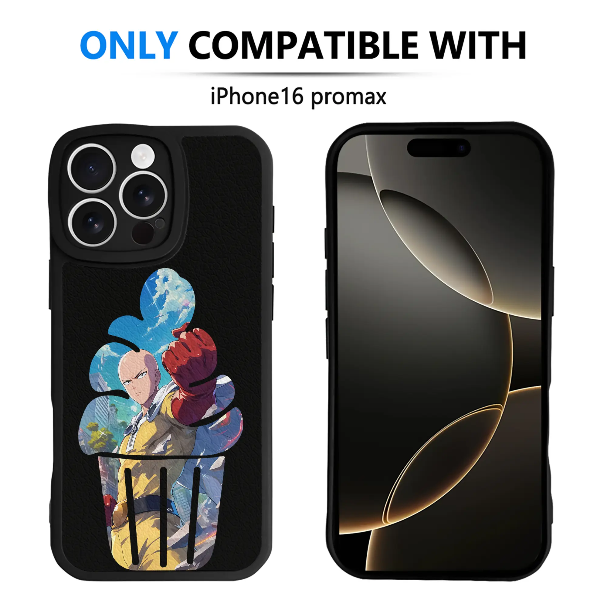 ワンパンマン グッズ サイタマ - IPhone 16シリーズ対応 ・ シリコンスマホケース ・ レザー調 ・ 高精度フィット ・ 耐衝撃 ・ ワイヤレス充電対応 ・ 精密カット