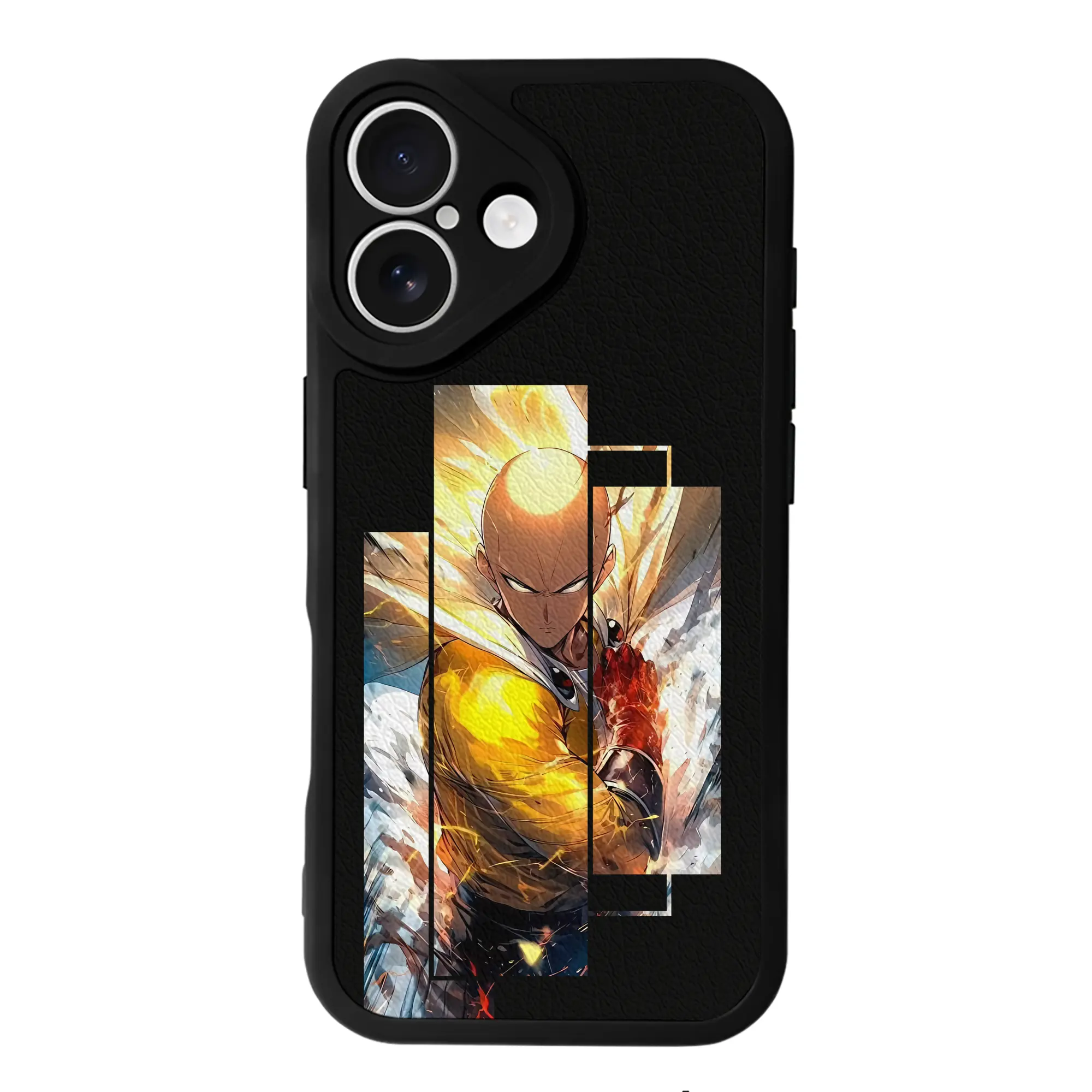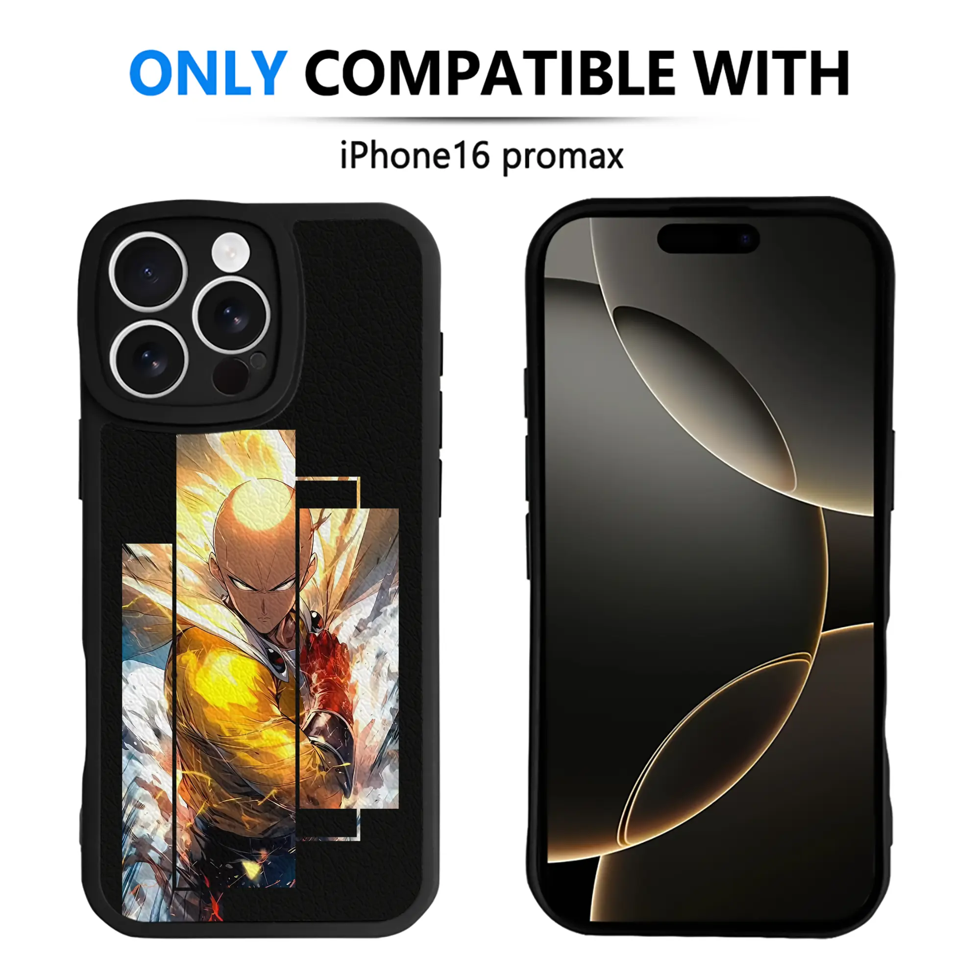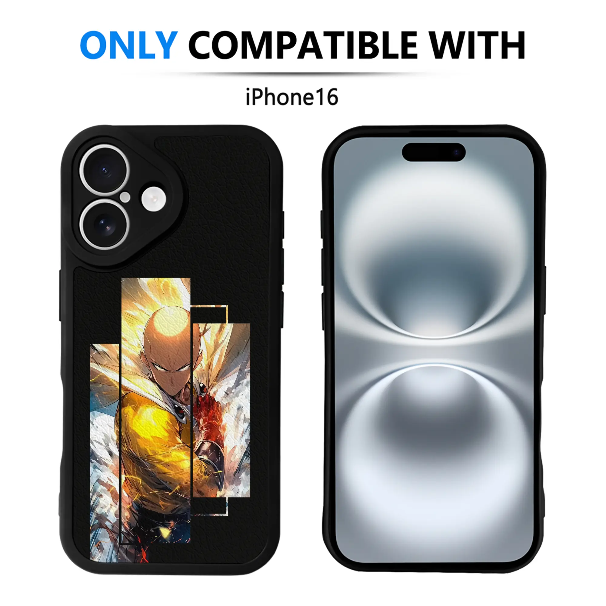 ワンパンマン グッズ サイタマ - IPhone 16シリーズ対応 ・ シリコンスマホケース ・ レザー調 ・ 高精度フィット ・ 耐衝撃 ・ ワイヤレス充電対応 ・ 精密カット