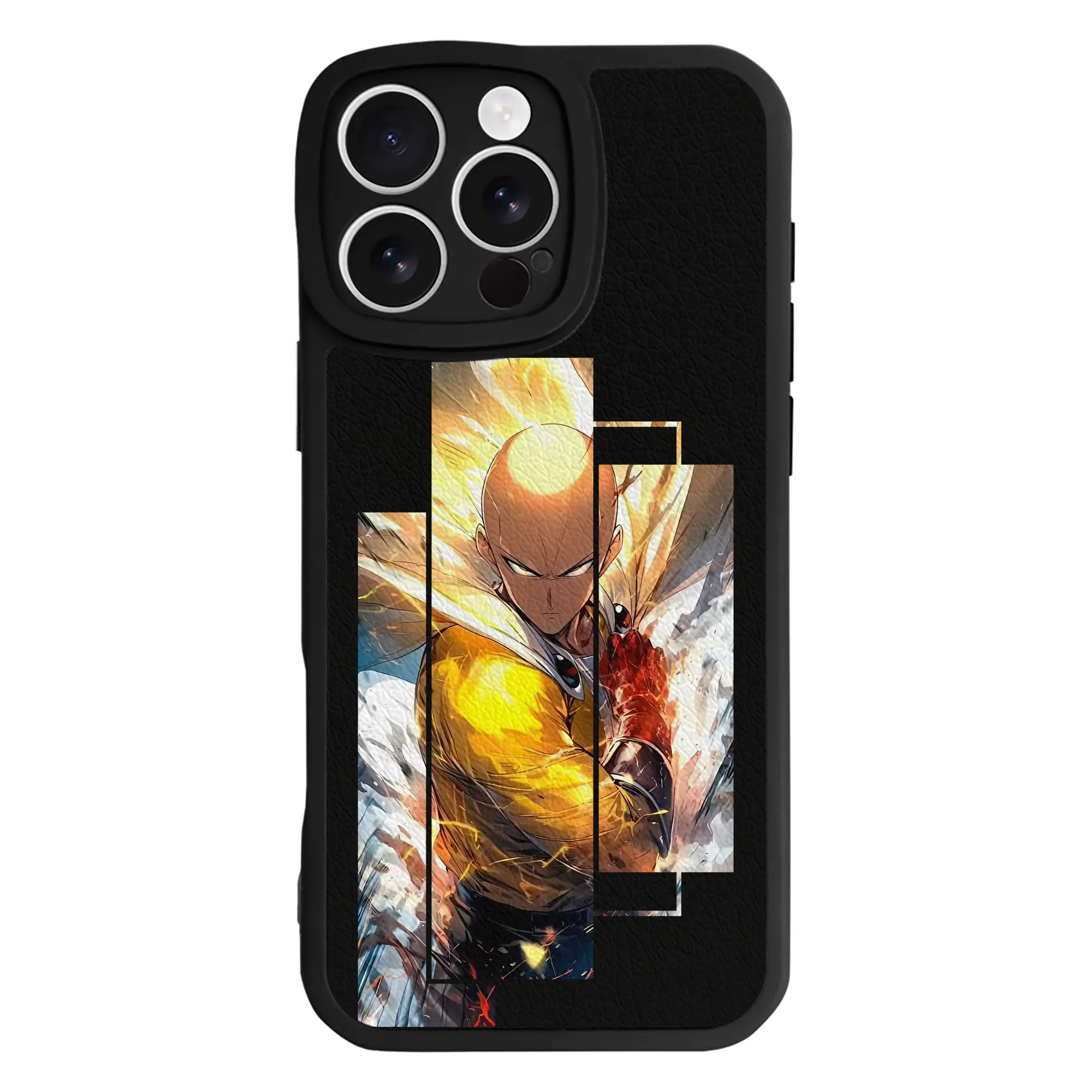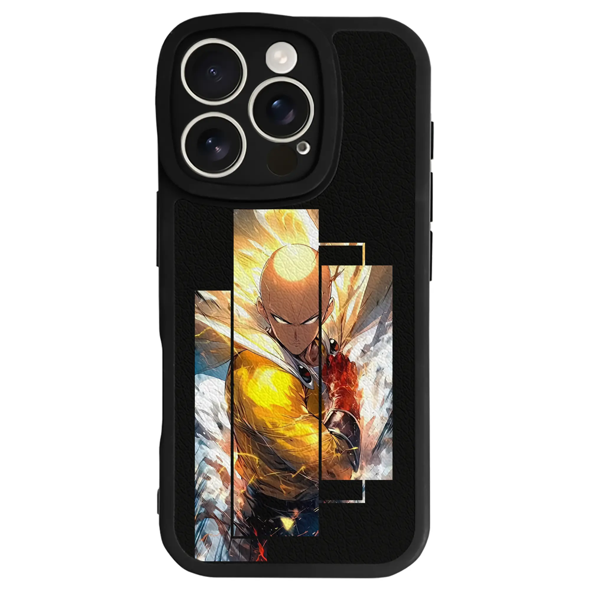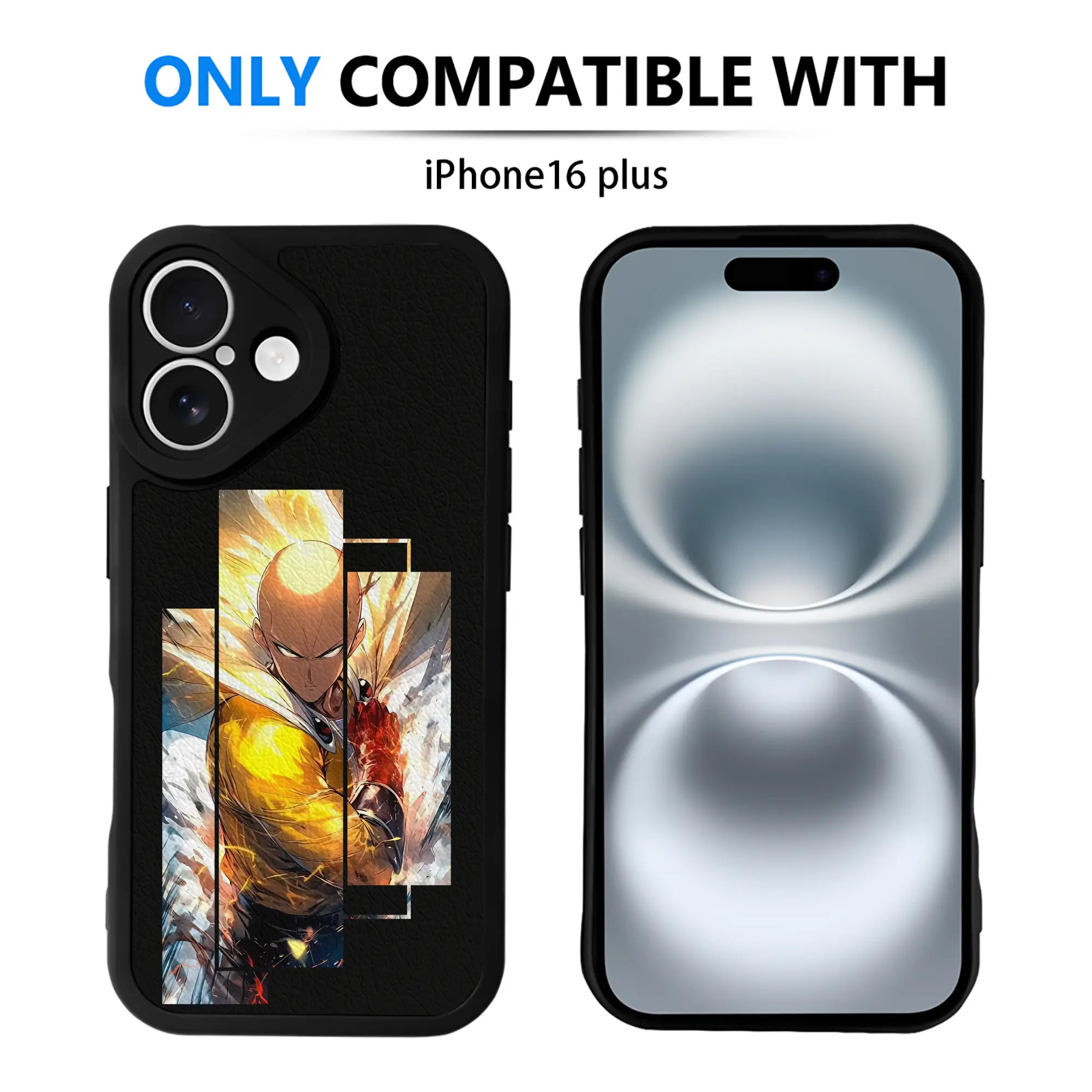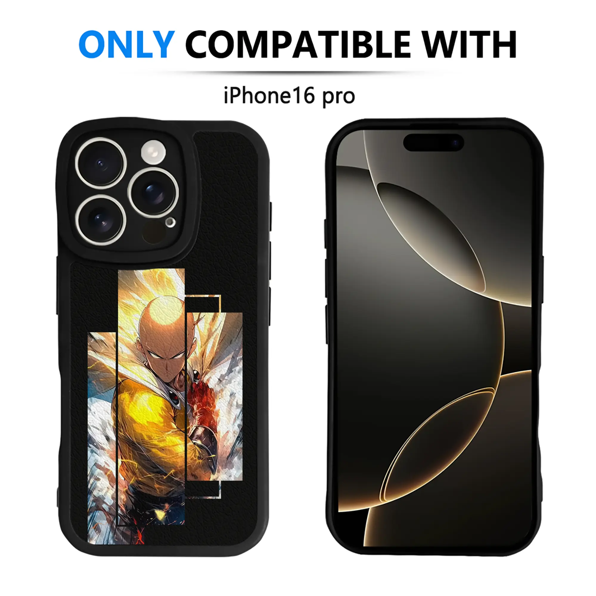 ワンパンマン グッズ サイタマ - IPhone 16シリーズ対応 ・ シリコンスマホケース ・ レザー調 ・ 高精度フィット ・ 耐衝撃 ・ ワイヤレス充電対応 ・ 精密カット