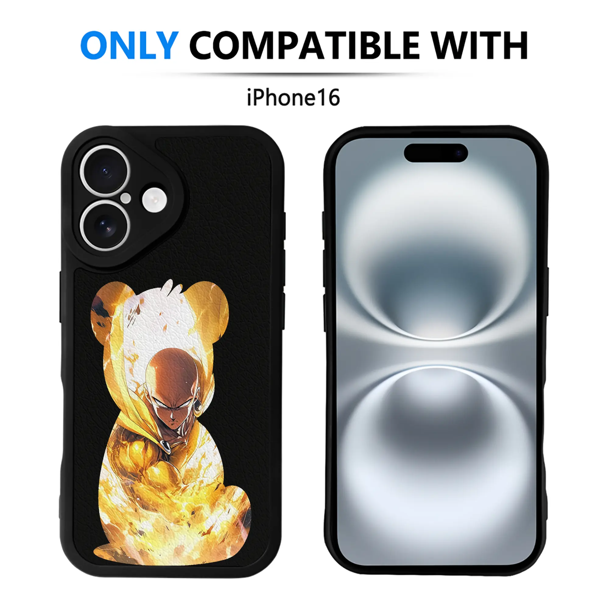ワンパンマン グッズ サイタマ - IPhone 16シリーズ対応 ・ シリコンスマホケース ・ レザー調 ・ 高精度フィット ・ 耐衝撃 ・ ワイヤレス充電対応 ・ 精密カット