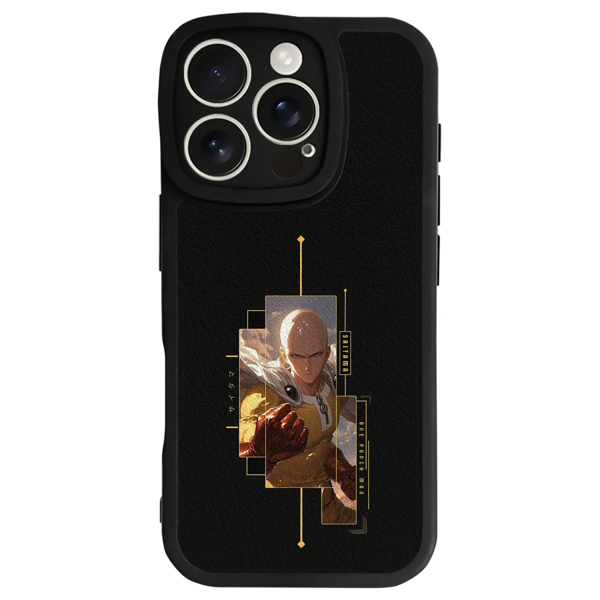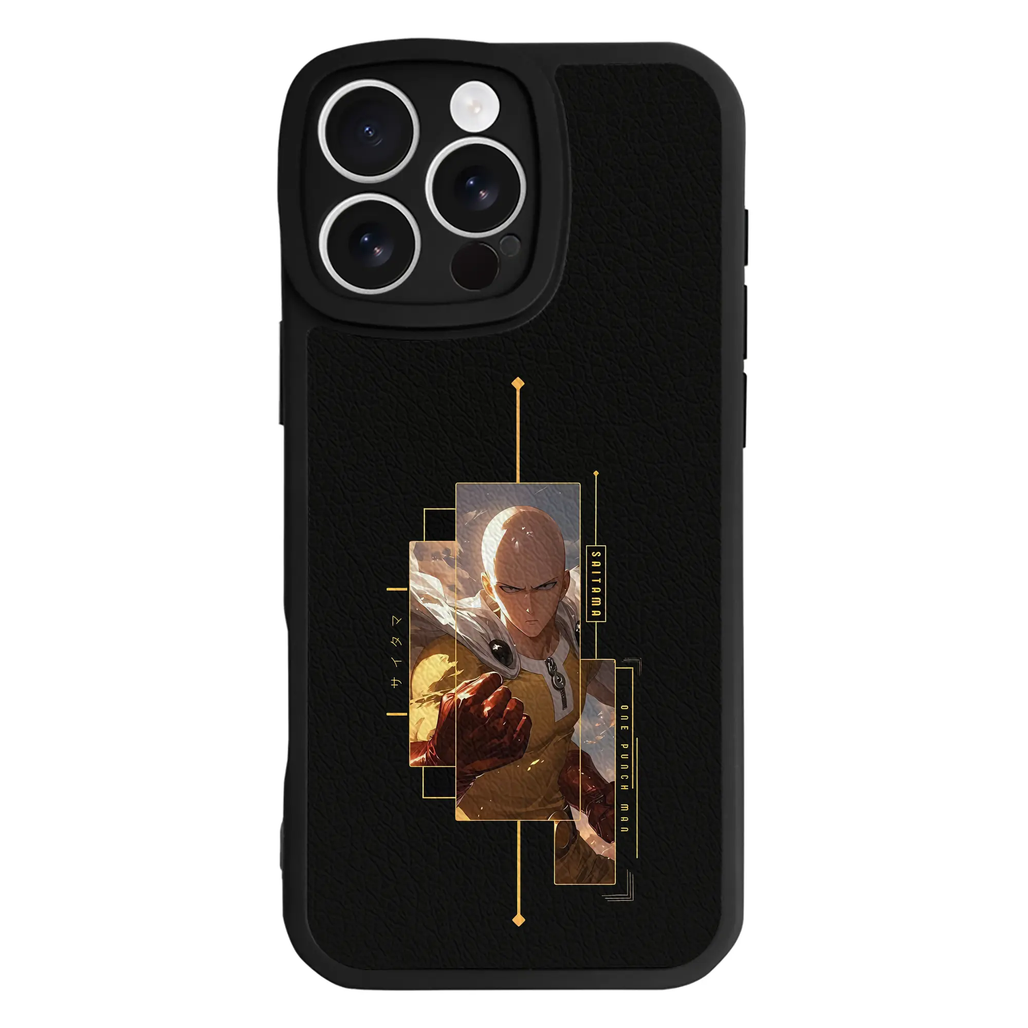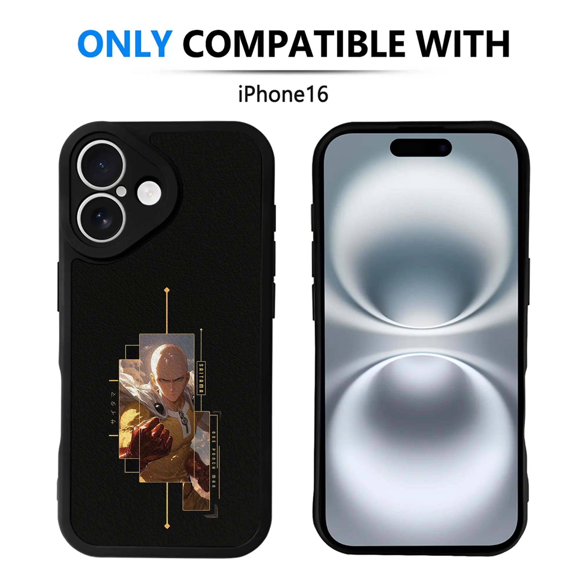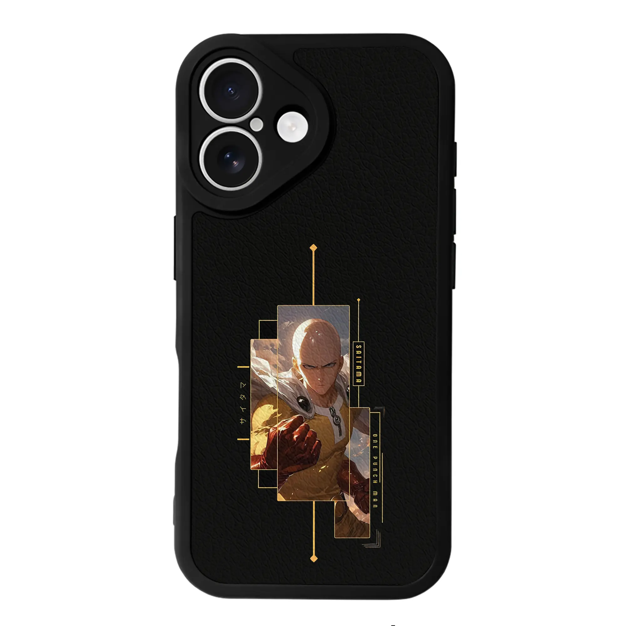 ワンパンマン グッズ サイタマ - IPhone 16シリーズ対応 ・ シリコンスマホケース ・ レザー調 ・ 高精度フィット ・ 耐衝撃 ・ ワイヤレス充電対応 ・ 精密カット