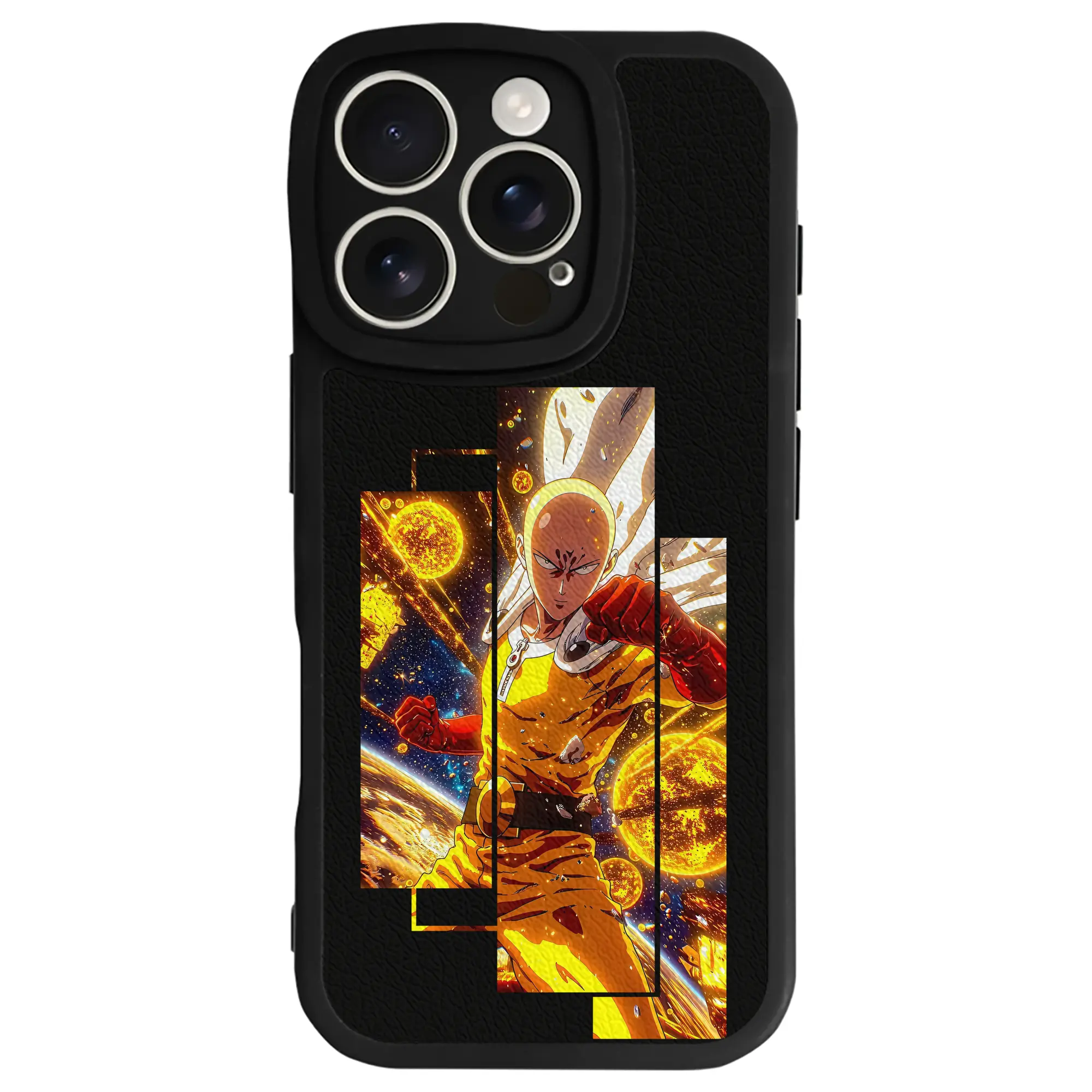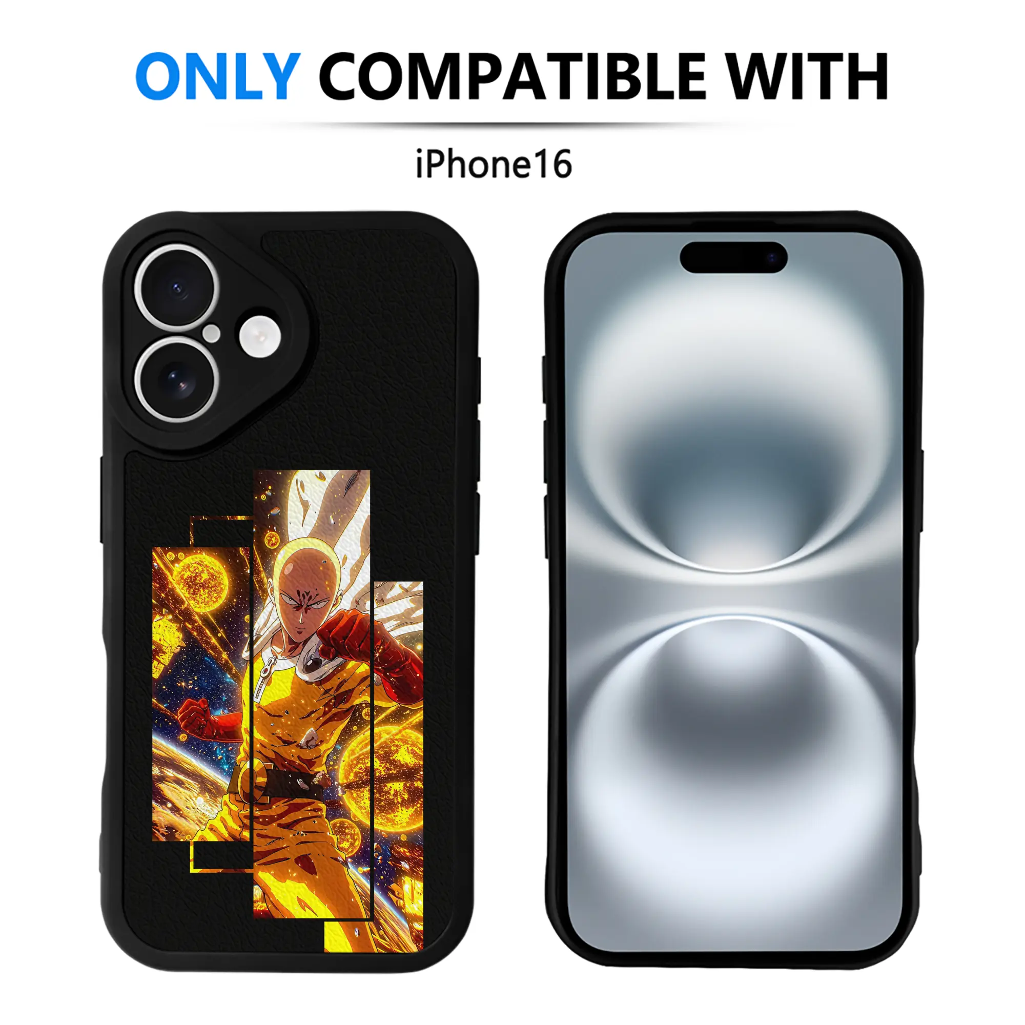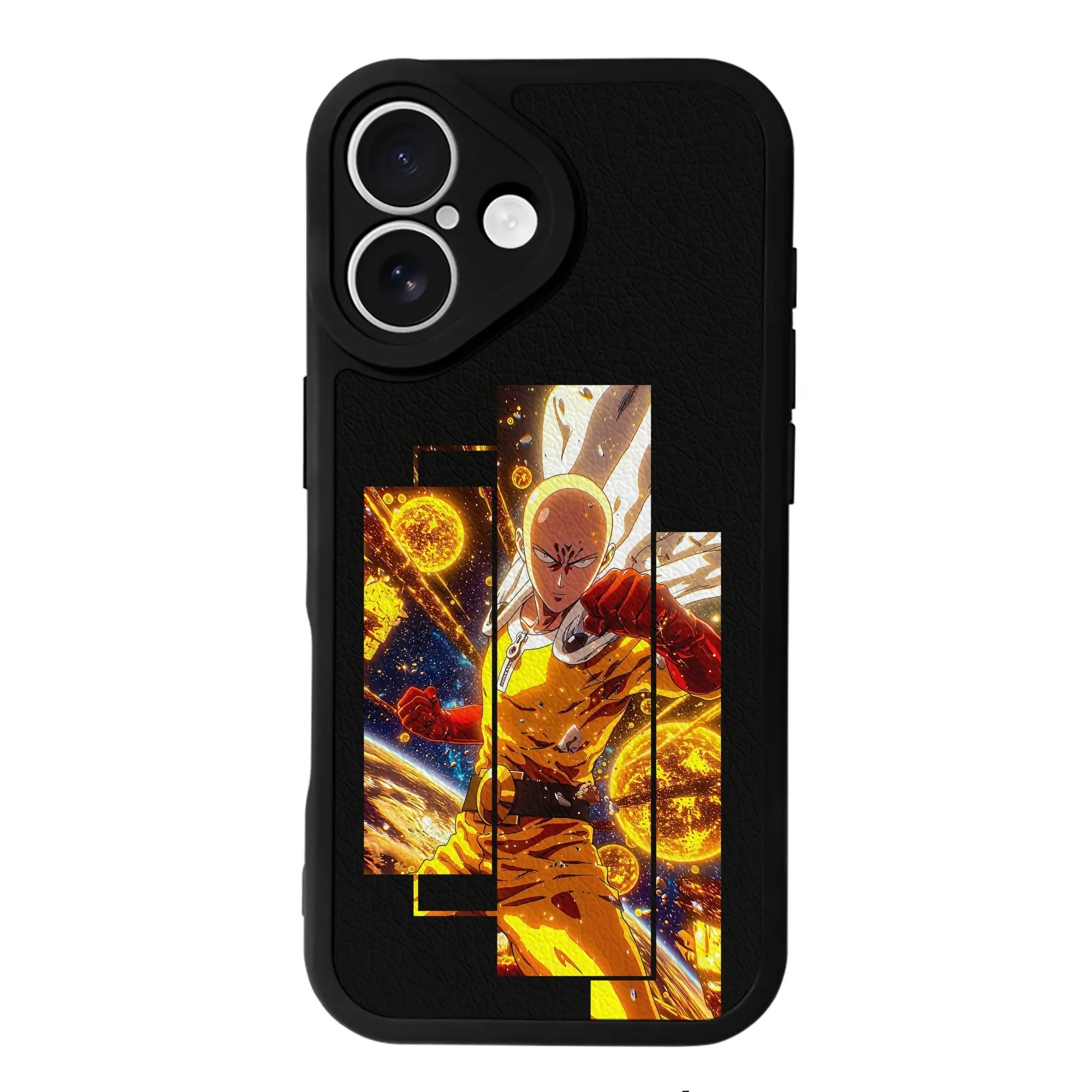 ワンパンマン グッズ サイタマ - IPhone 16シリーズ対応 ・ シリコンスマホケース ・ レザー調 ・ 高精度フィット ・ 耐衝撃 ・ ワイヤレス充電対応 ・ 精密カット