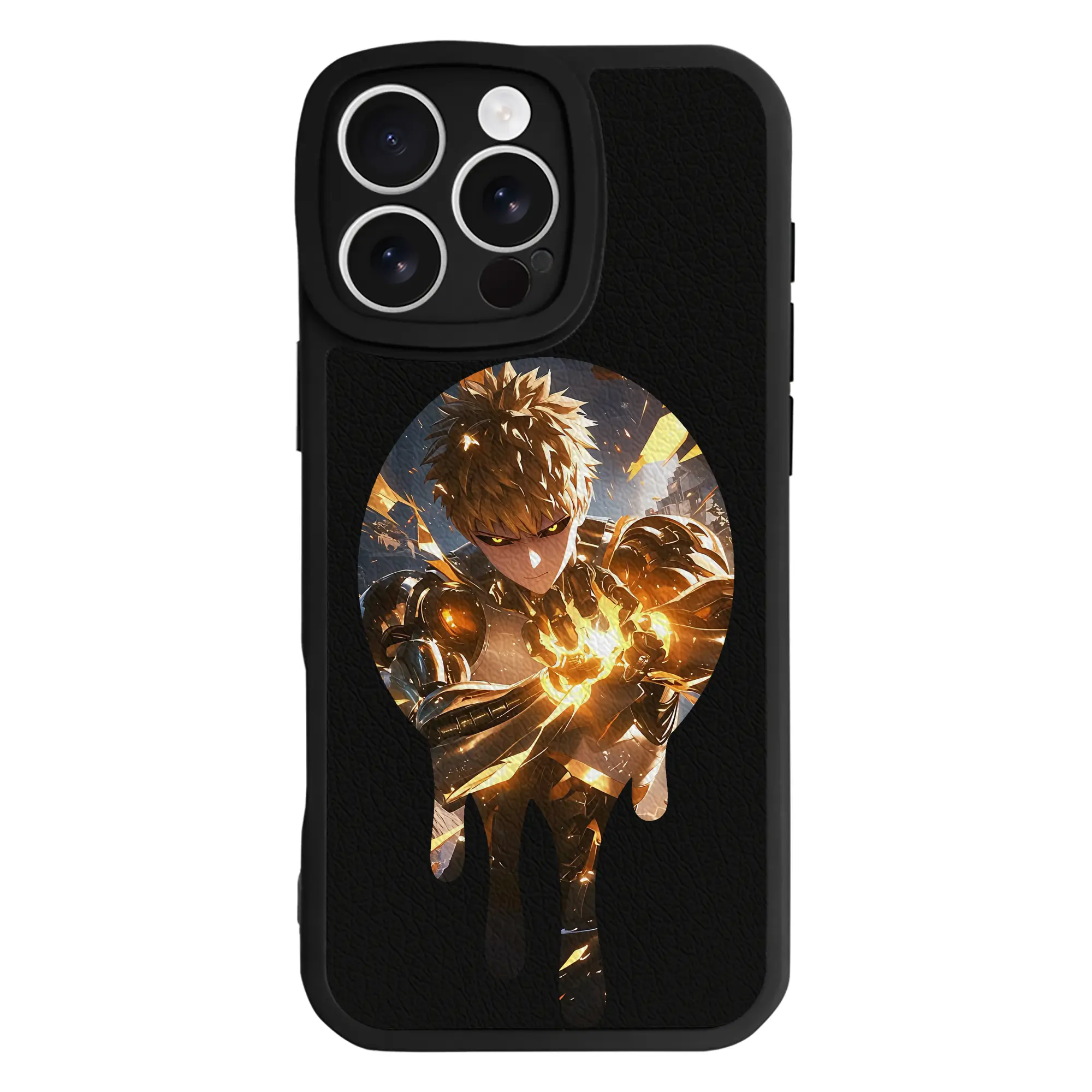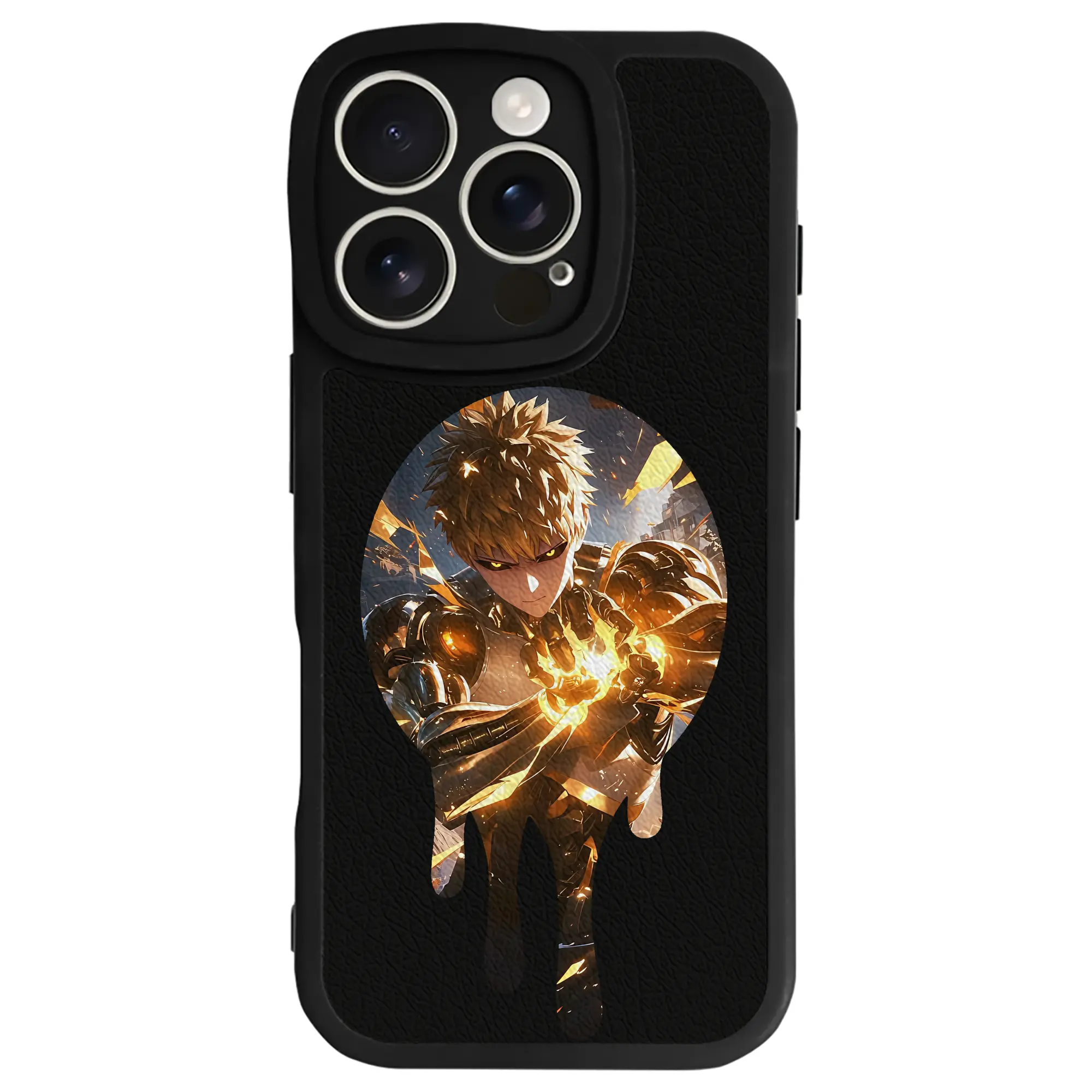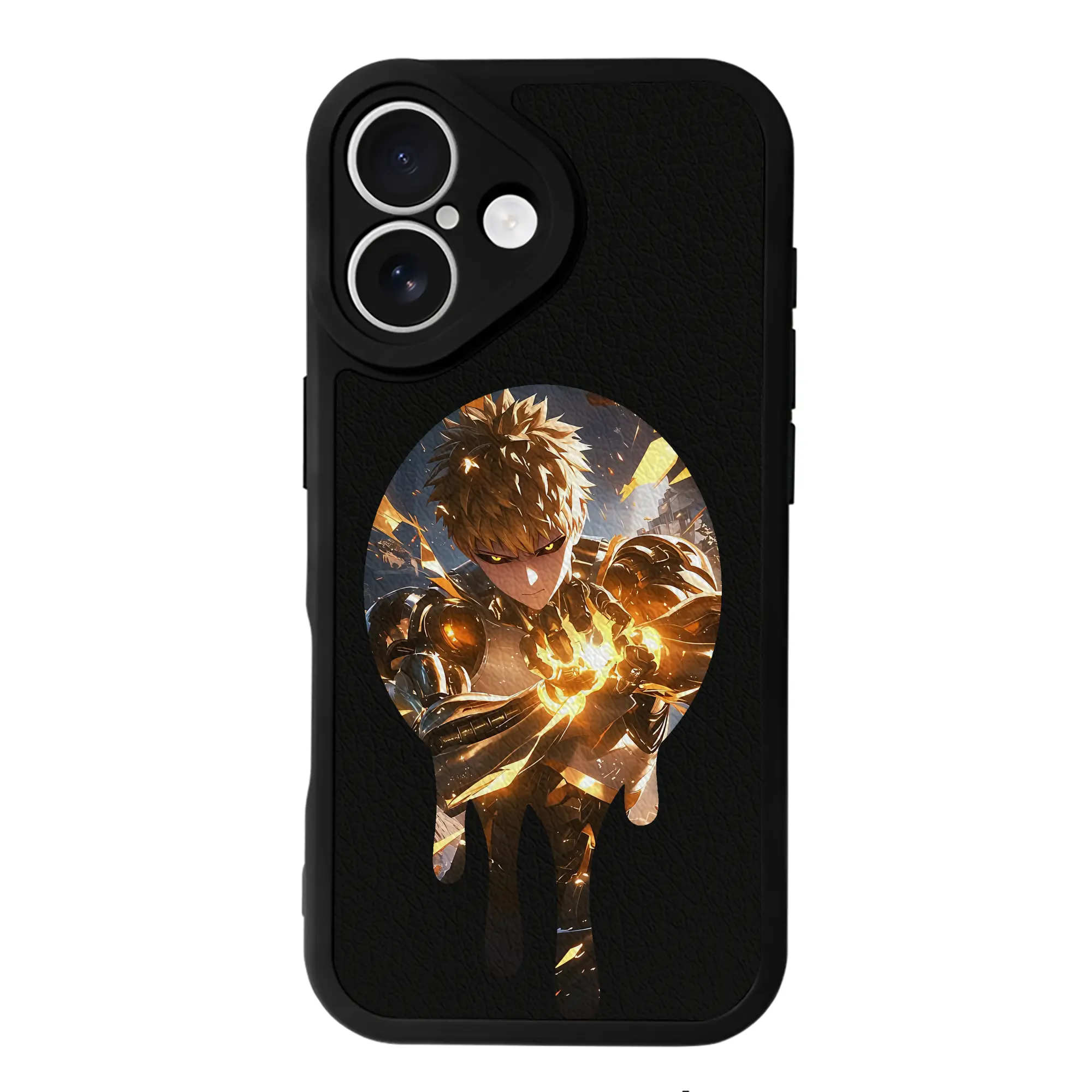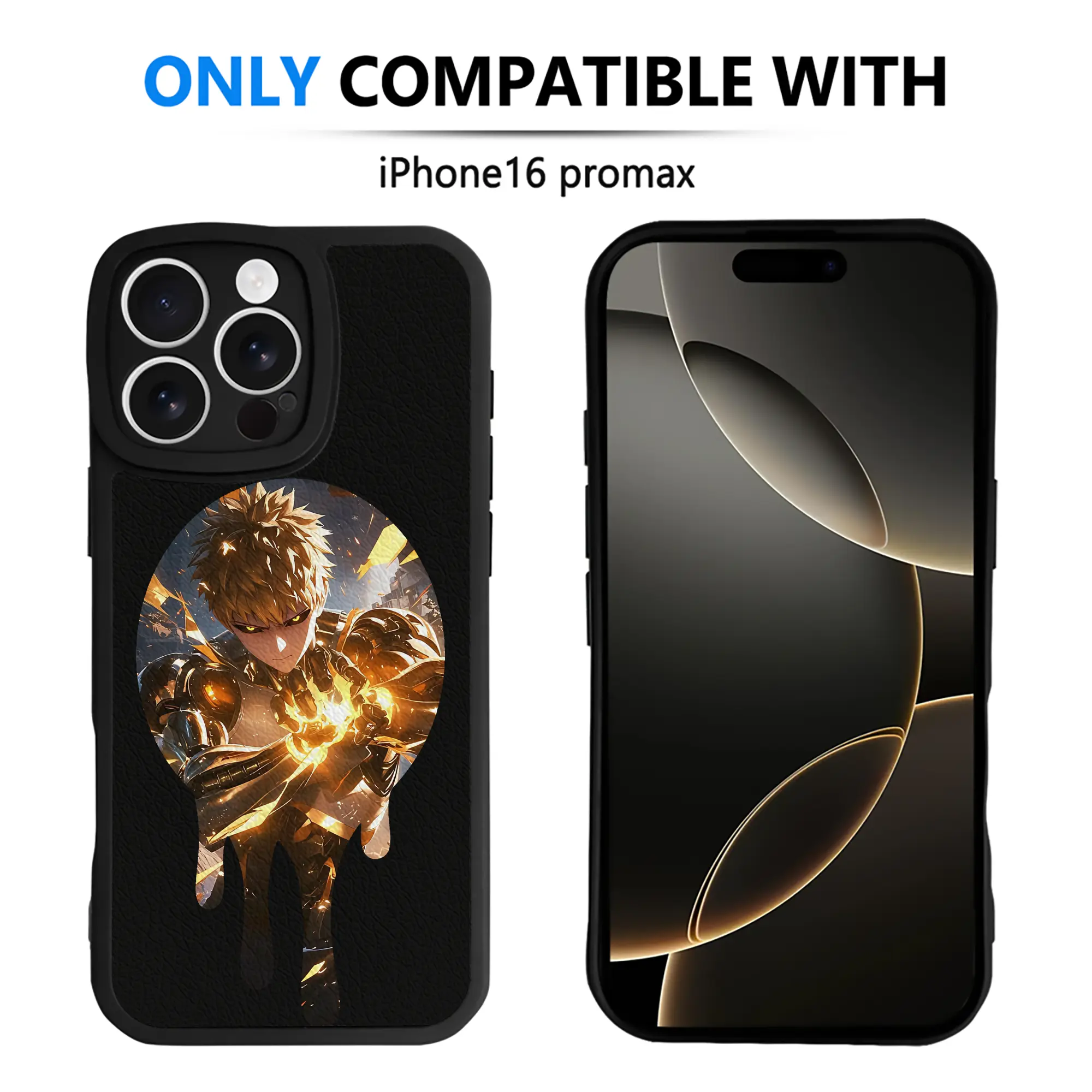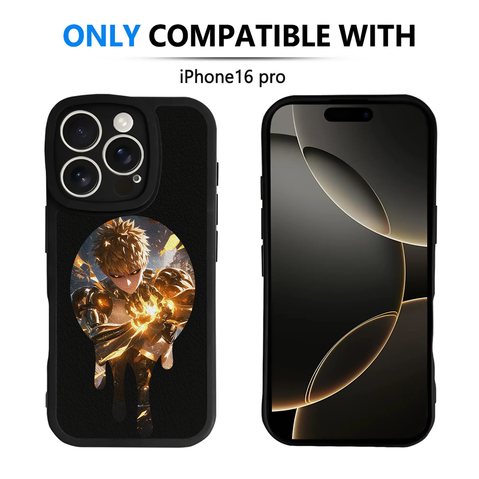 ワンパンマン グッズ ジェノス - IPhone 16シリーズ対応 ・ シリコンスマホケース ・ レザー調 ・ 高精度フィット ・ 耐衝撃 ・ ワイヤレス充電対応 ・ 精密カット