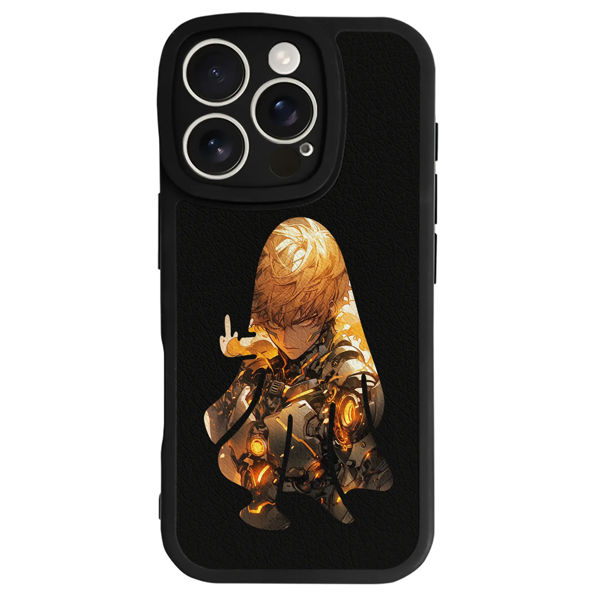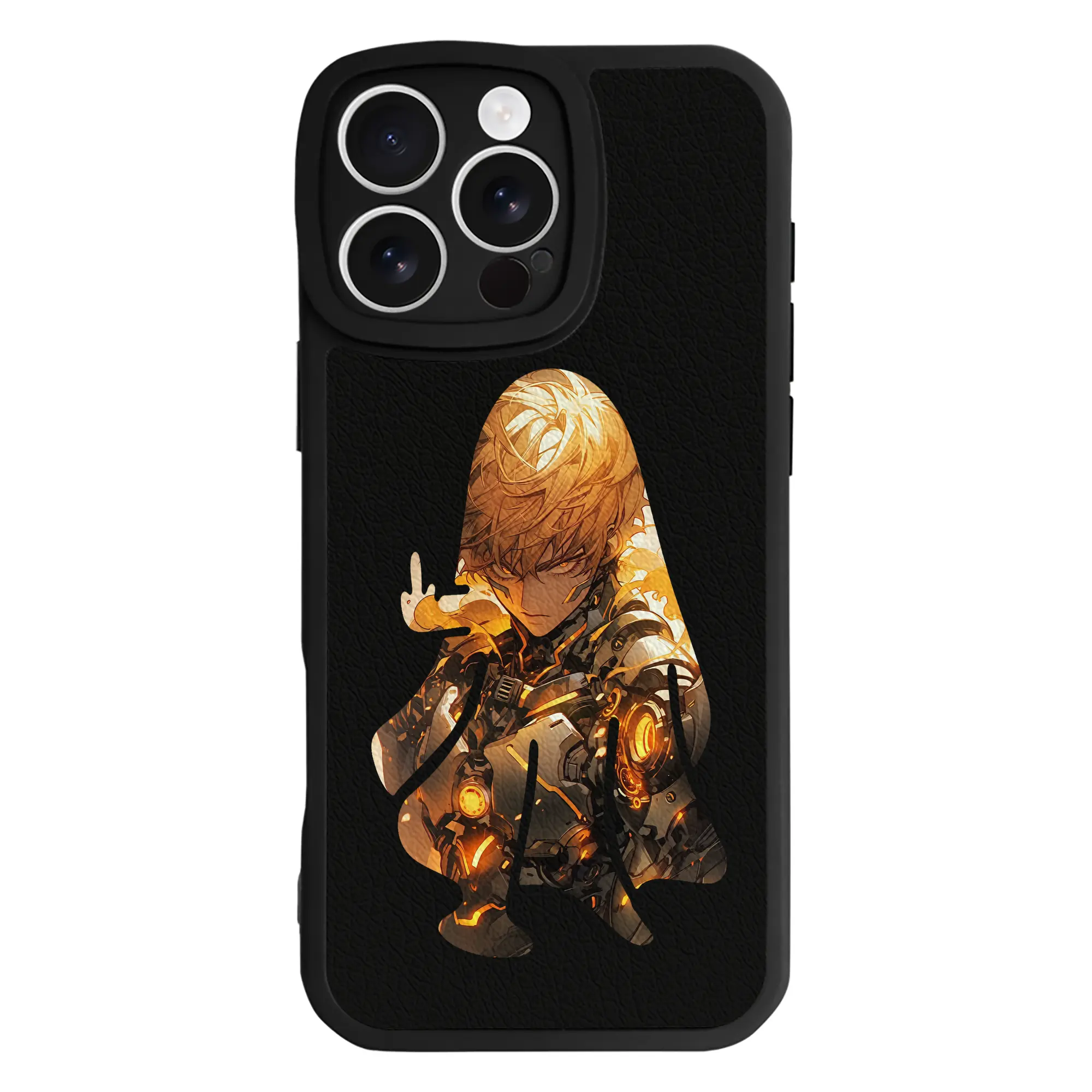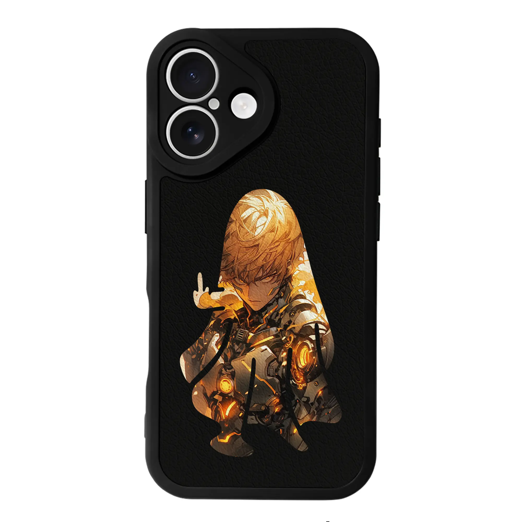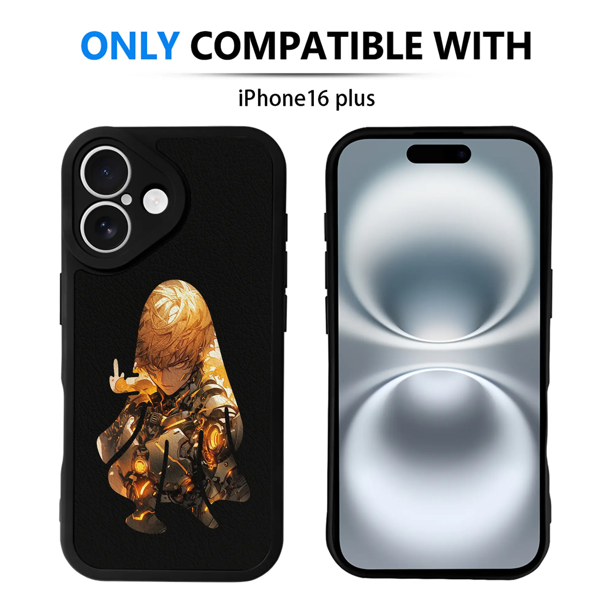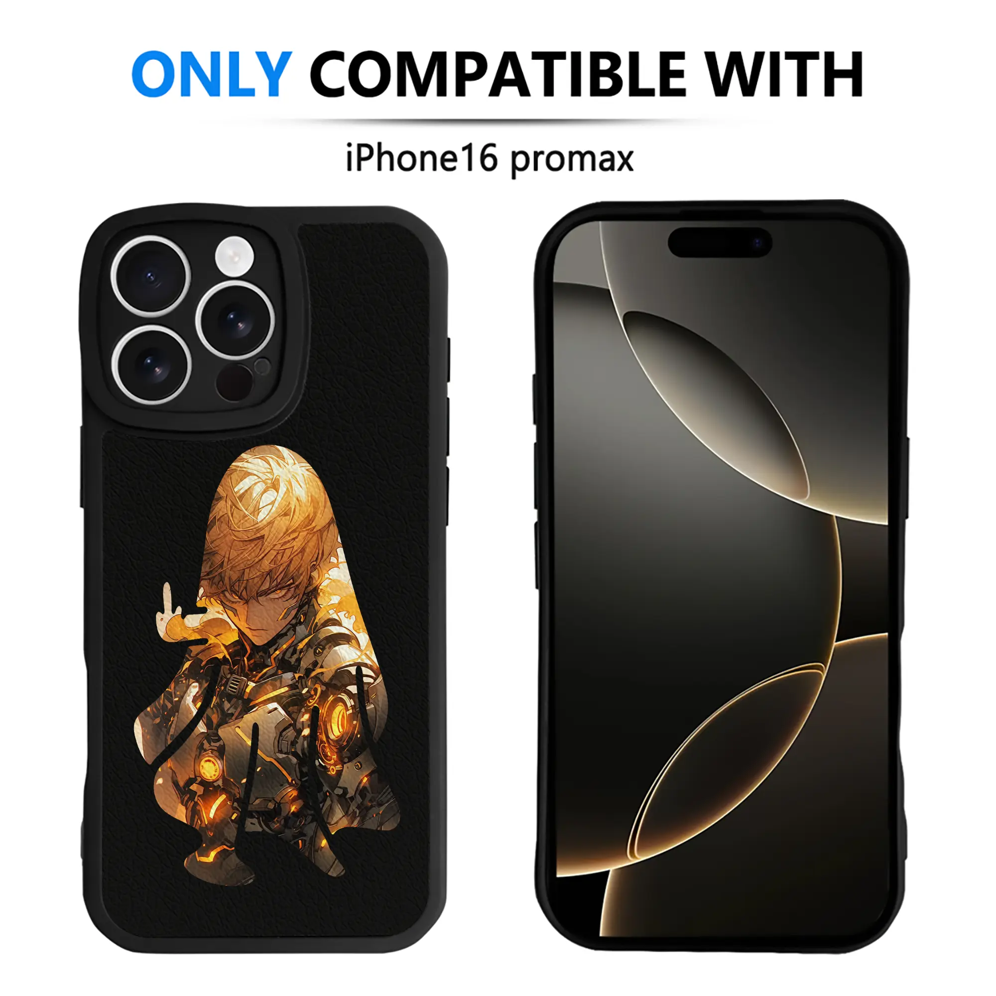 ワンパンマン グッズ ジェノス - IPhone 16シリーズ対応 ・ シリコンスマホケース ・ レザー調 ・ 高精度フィット ・ 耐衝撃 ・ ワイヤレス充電対応 ・ 精密カット