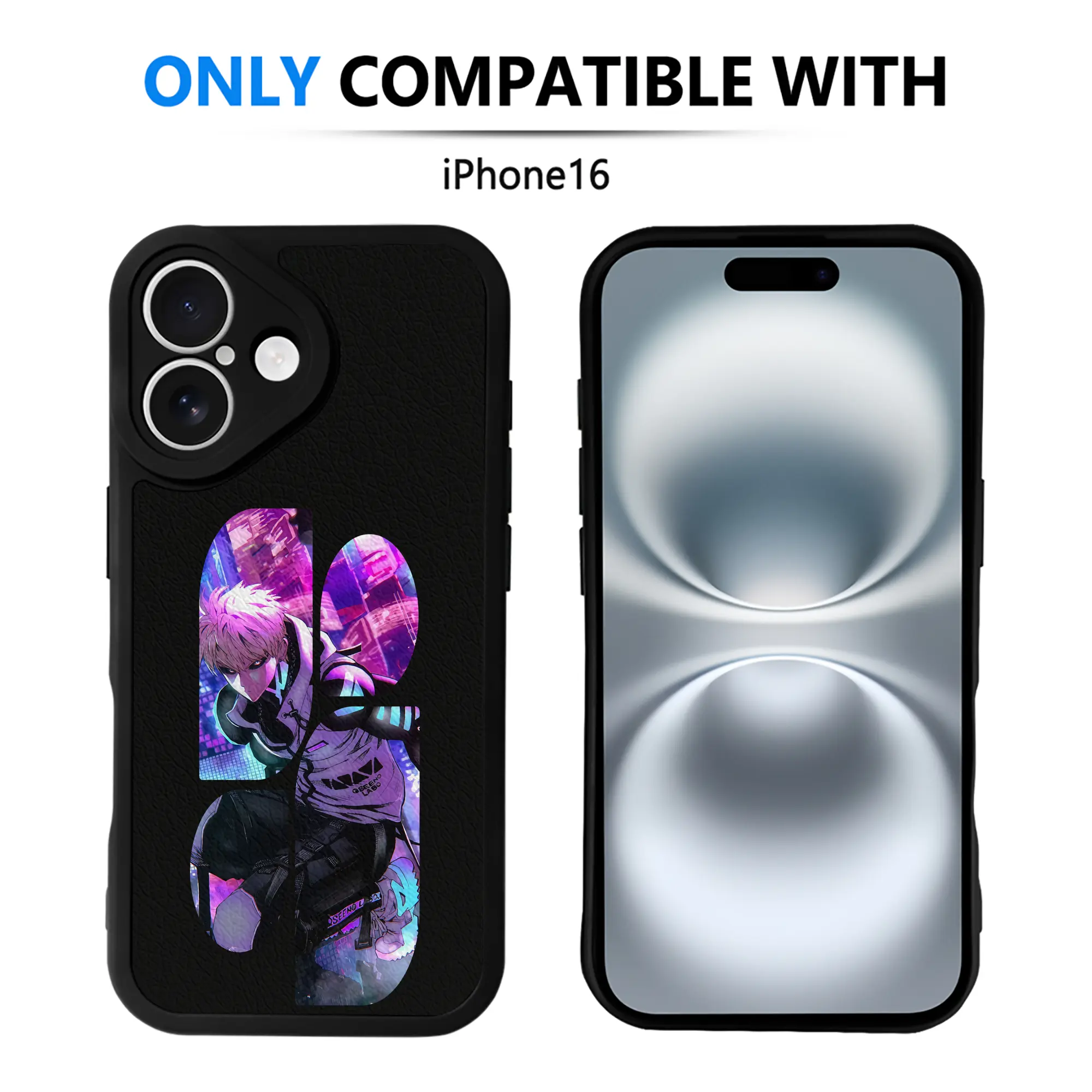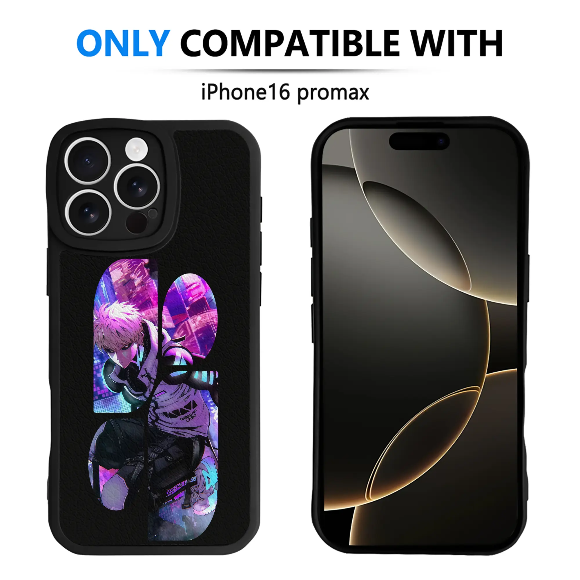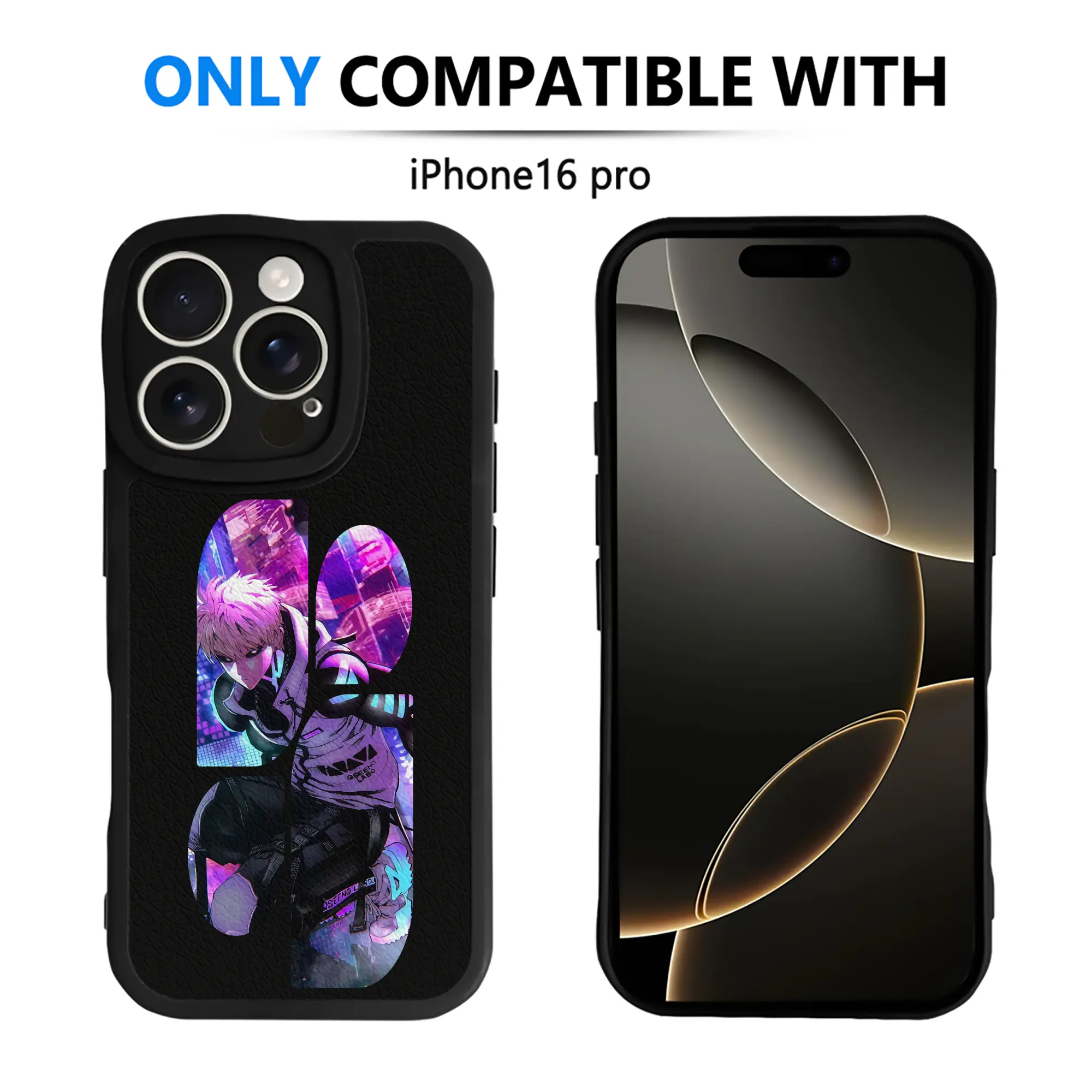 ワンパンマン グッズ ジェノス - IPhone 16シリーズ対応 ・ シリコンスマホケース ・ レザー調 ・ 高精度フィット ・ 耐衝撃 ・ ワイヤレス充電対応 ・ 精密カット