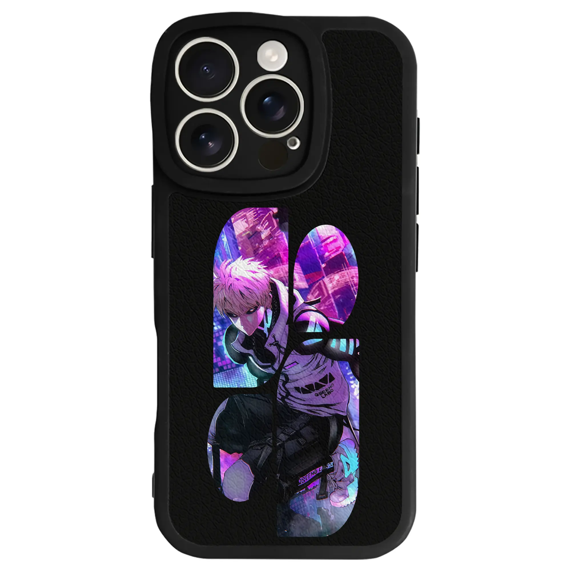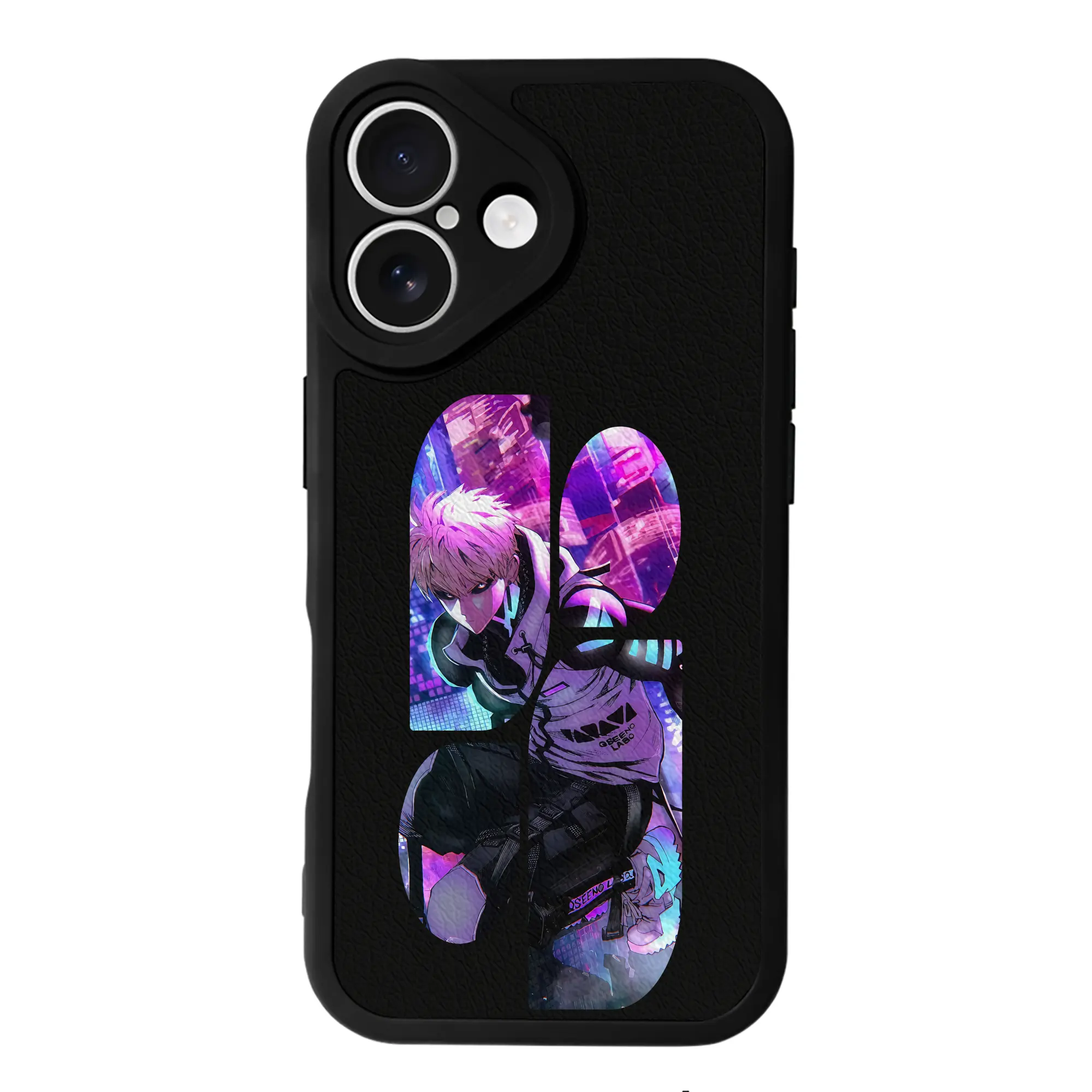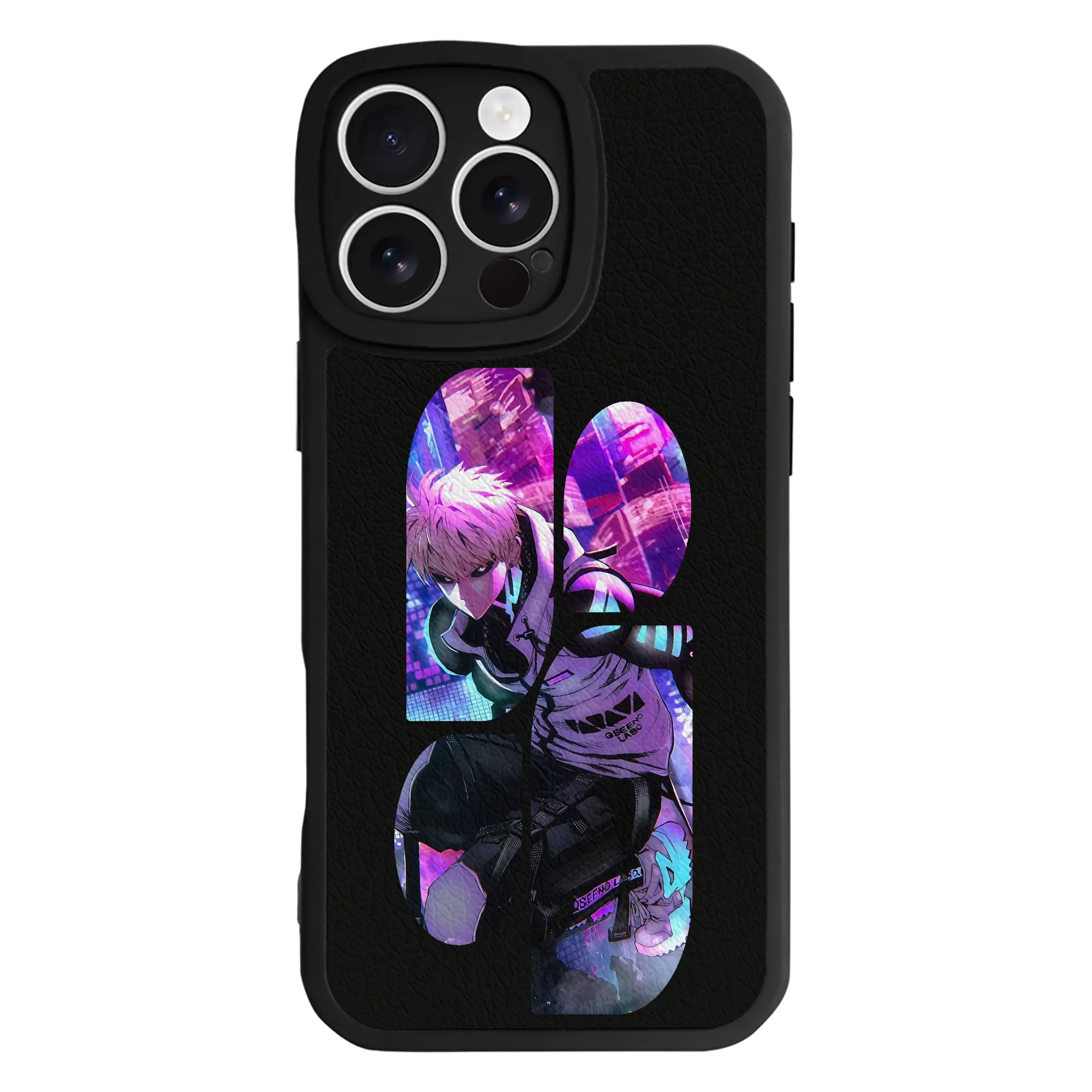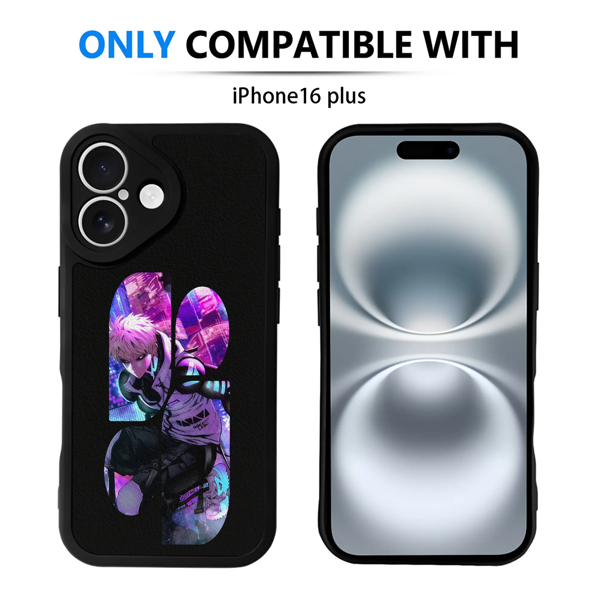 ワンパンマン グッズ ジェノス - IPhone 16シリーズ対応 ・ シリコンスマホケース ・ レザー調 ・ 高精度フィット ・ 耐衝撃 ・ ワイヤレス充電対応 ・ 精密カット