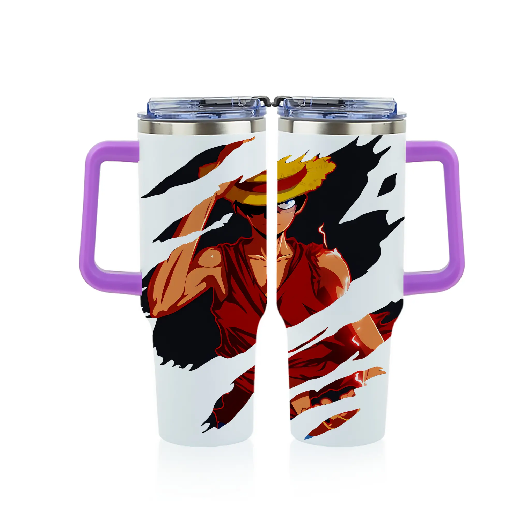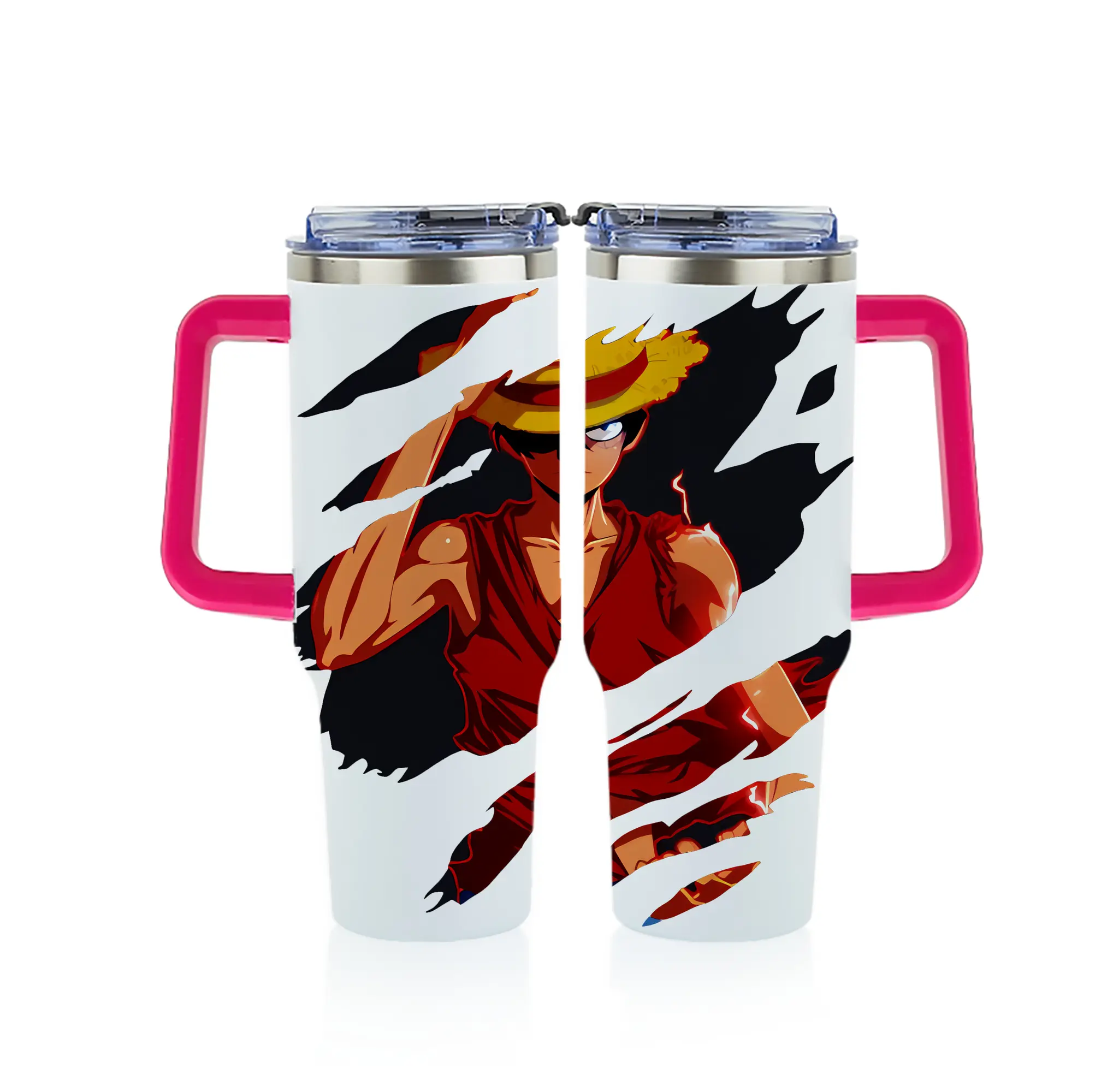 ワンピース グッズ モンキー・D・ルフィ - 1200mL フルプリント車用タンブラー ・ 304ステンレス 内側 ・ 201ステンレス 外側 ・ 保温 保冷 ・ 通勤 ドライブ アウトドア用