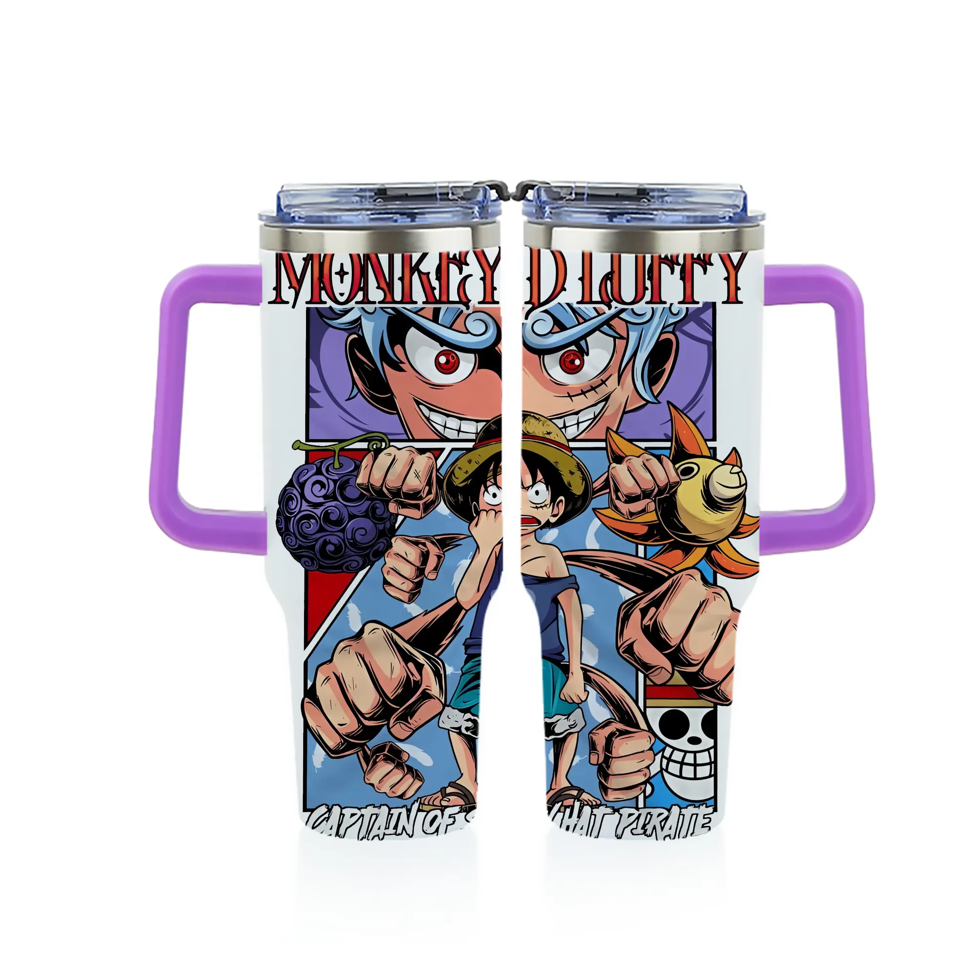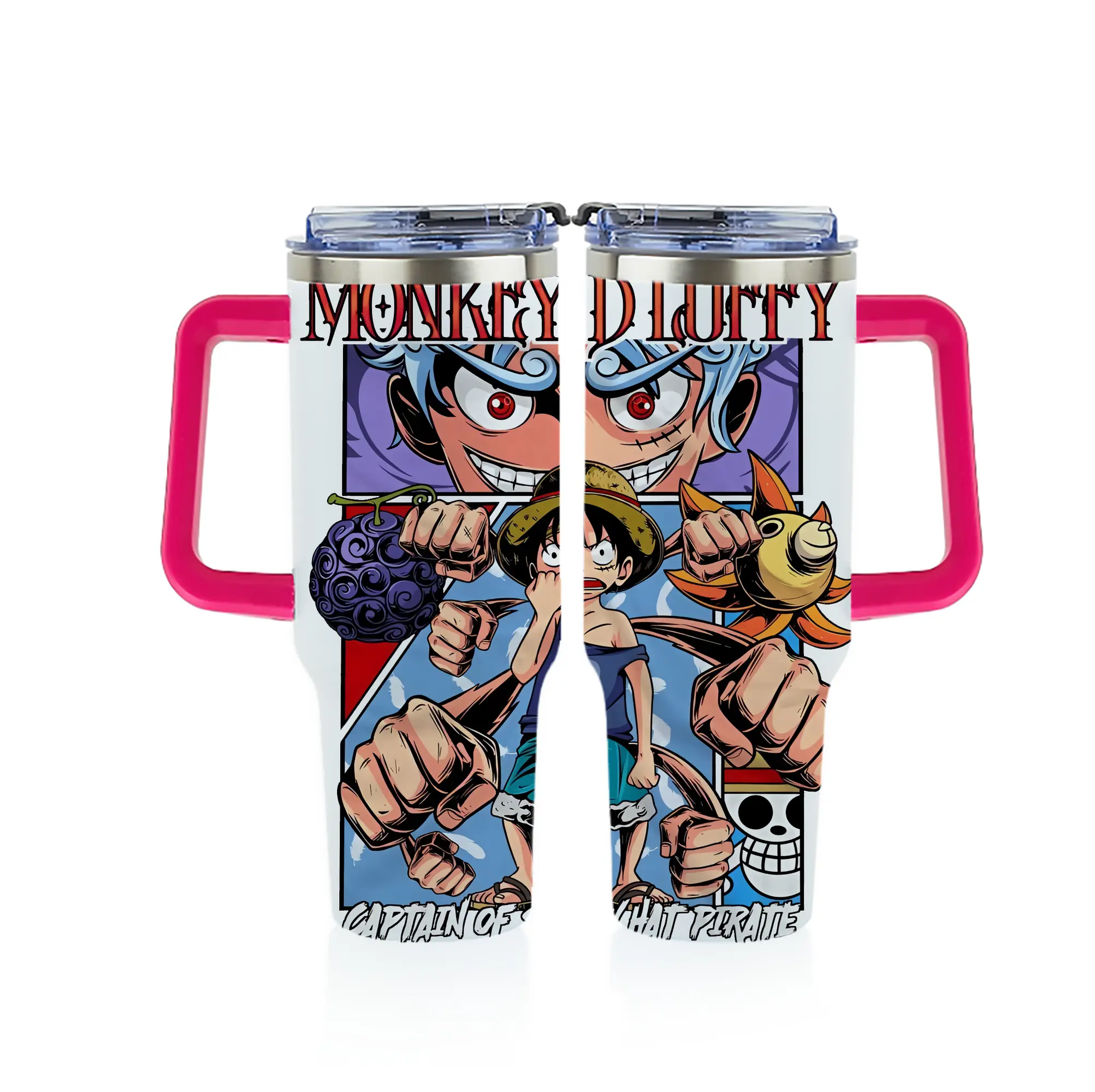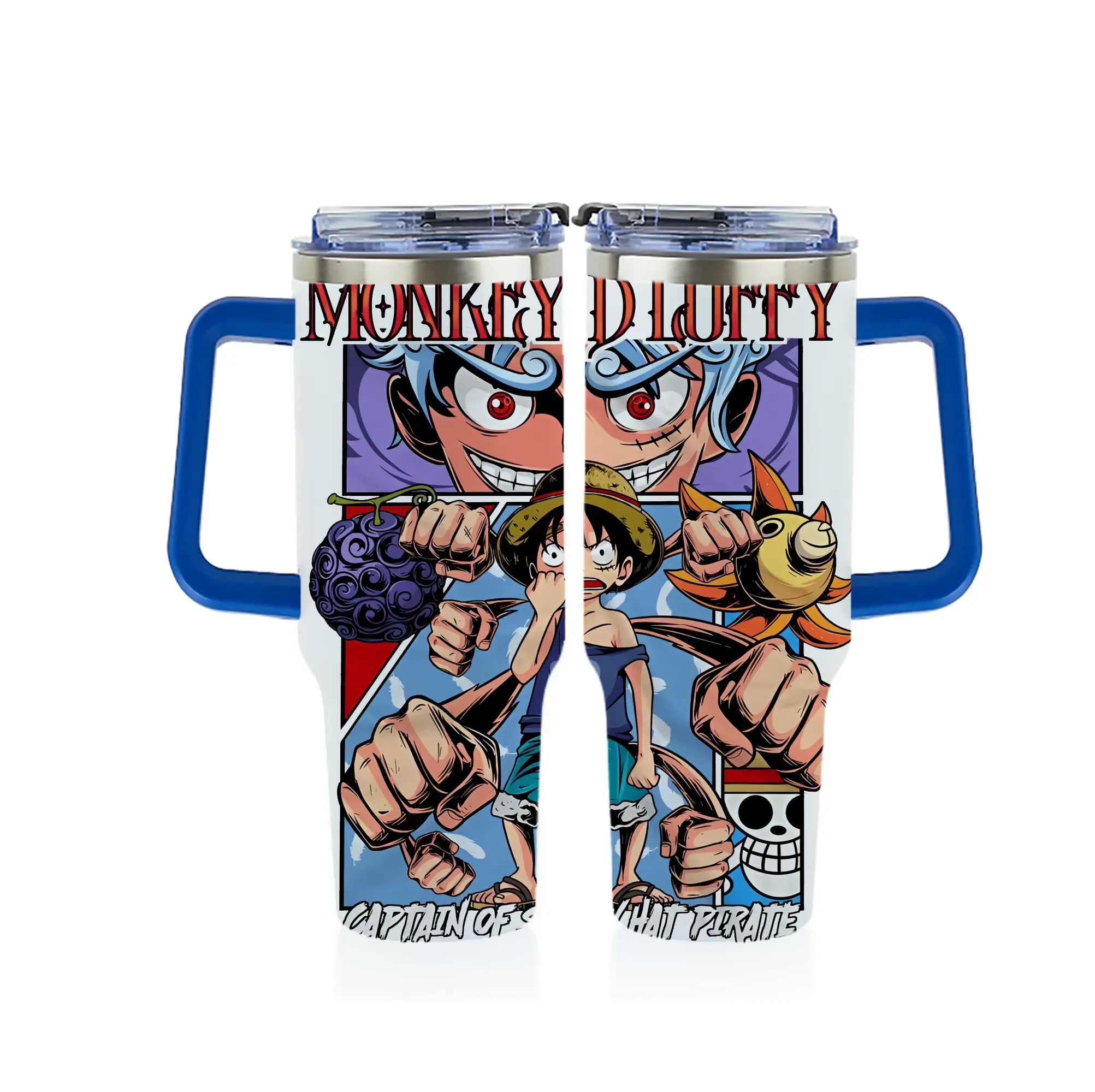 ワンピース グッズ モンキー・D・ルフィ - 1200mL フルプリント車用タンブラー ・ 304ステンレス 内側 ・ 201ステンレス 外側 ・ 保温 保冷 ・ 通勤 ドライブ アウトドア用