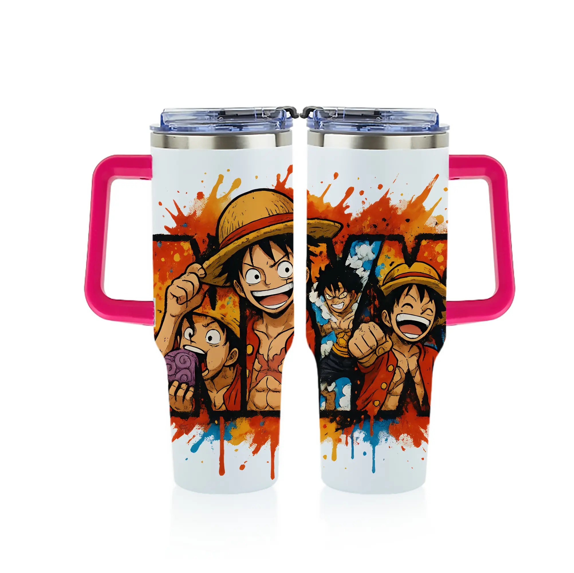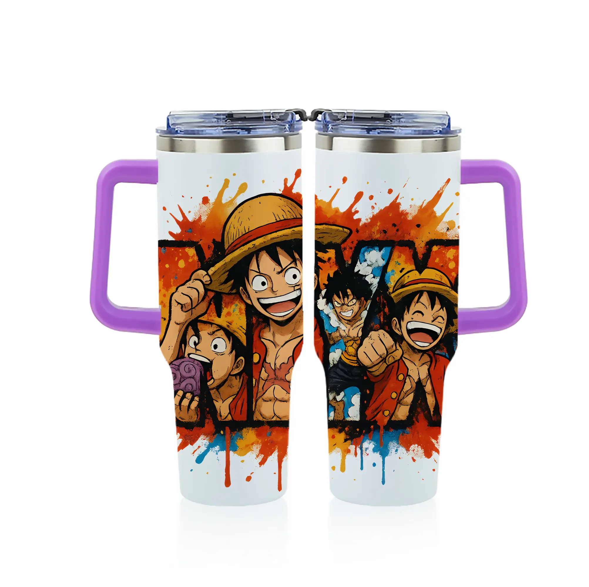 ワンピース グッズ モンキー・D・ルフィ - 1200mL フルプリント車用タンブラー ・ 304ステンレス 内側 ・ 201ステンレス 外側 ・ 保温 保冷 ・ 通勤 ドライブ アウトドア用