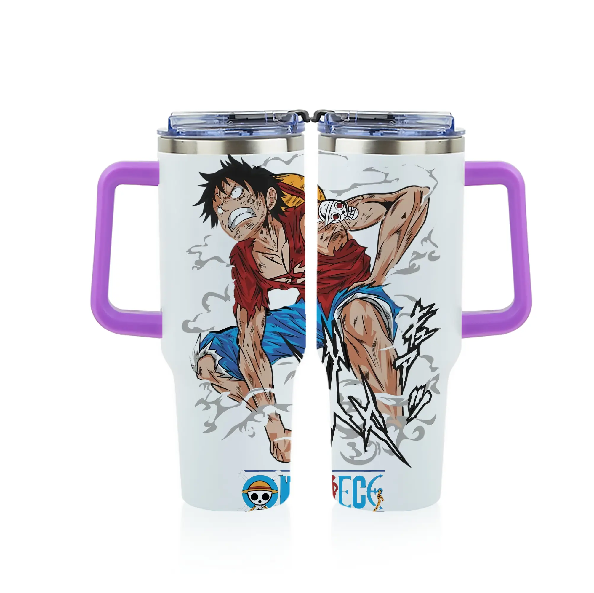 ワンピース グッズ モンキー・D・ルフィ - 1200mL フルプリント車用タンブラー ・ 304ステンレス 内側 ・ 201ステンレス 外側 ・ 保温 保冷 ・ 通勤 ドライブ アウトドア用