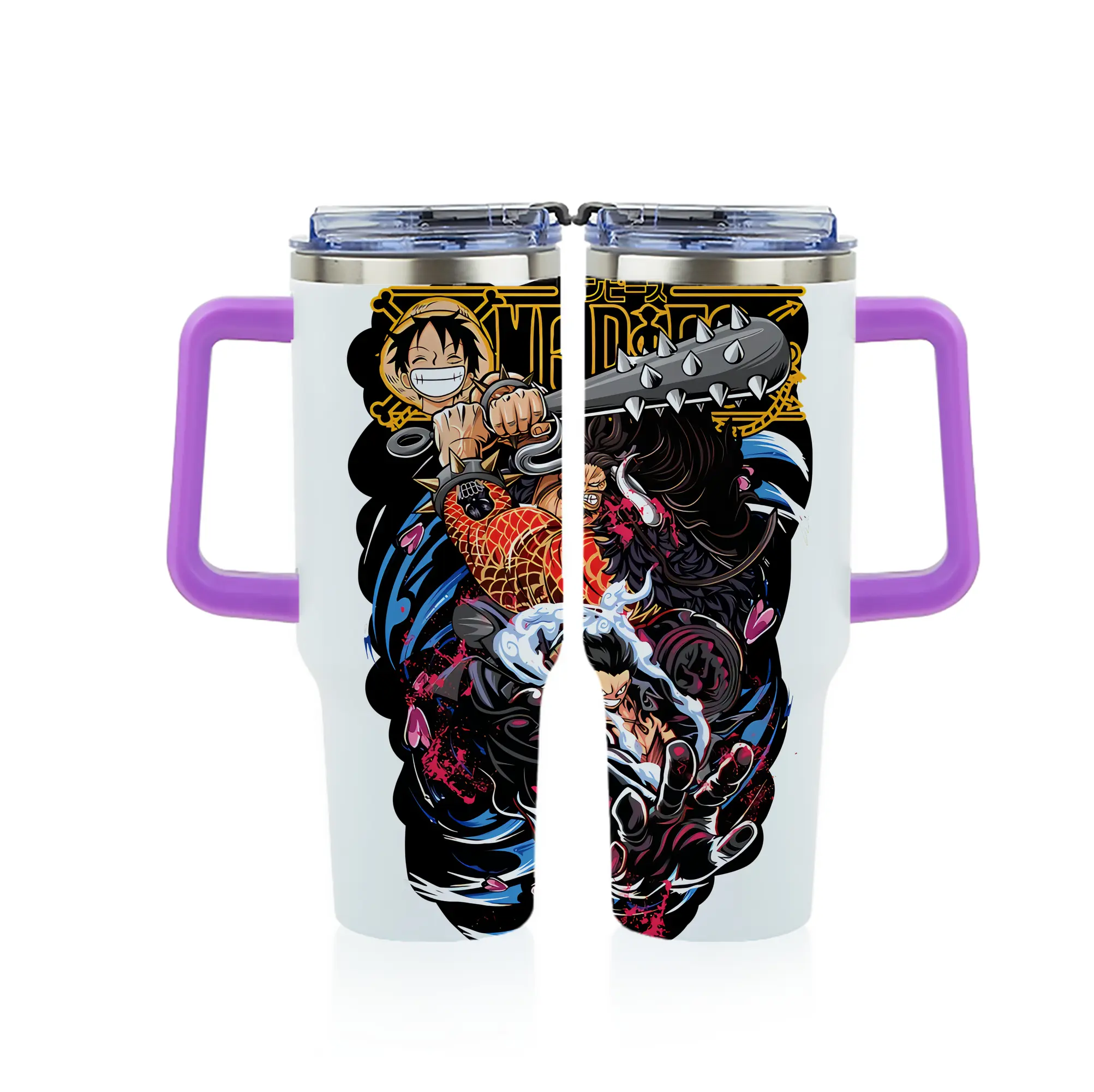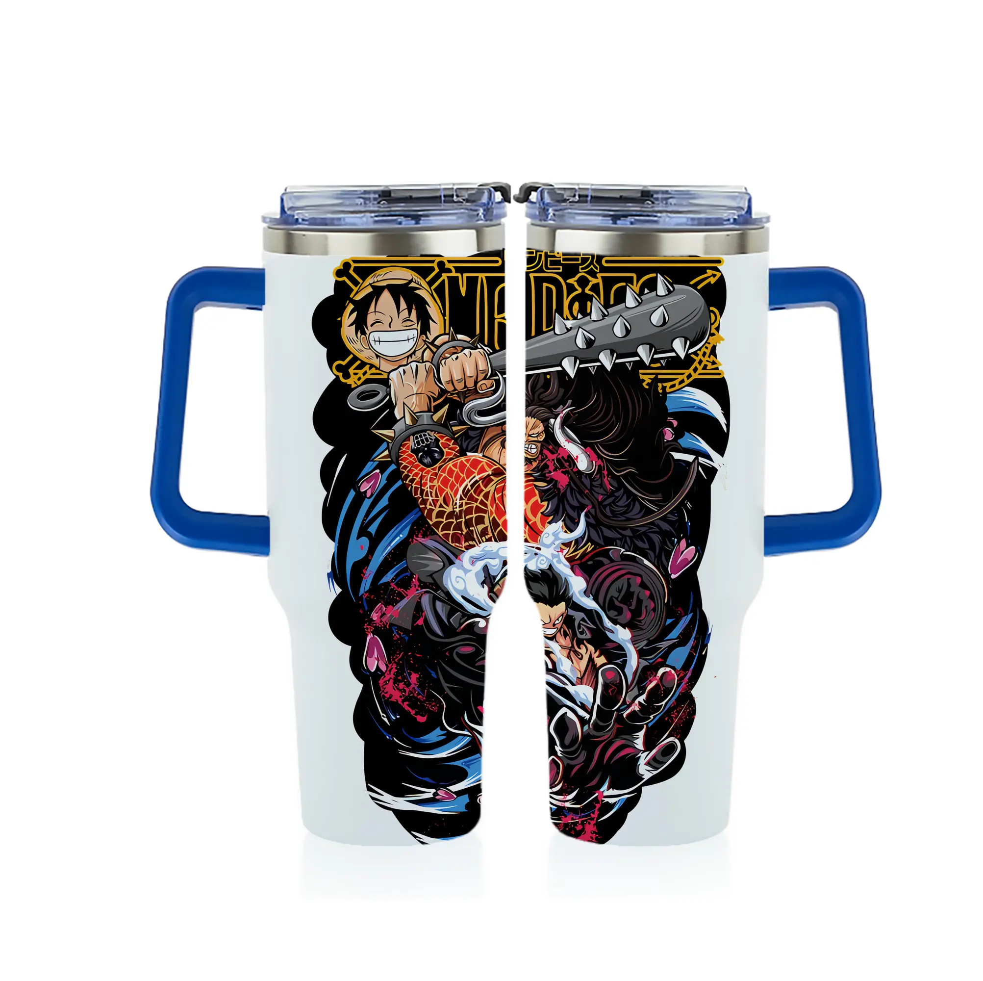 ワンピース グッズ モンキー・D・ルフィ - 1200mL フルプリント車用タンブラー ・ 304ステンレス 内側 ・ 201ステンレス 外側 ・ 保温 保冷 ・ 通勤 ドライブ アウトドア用