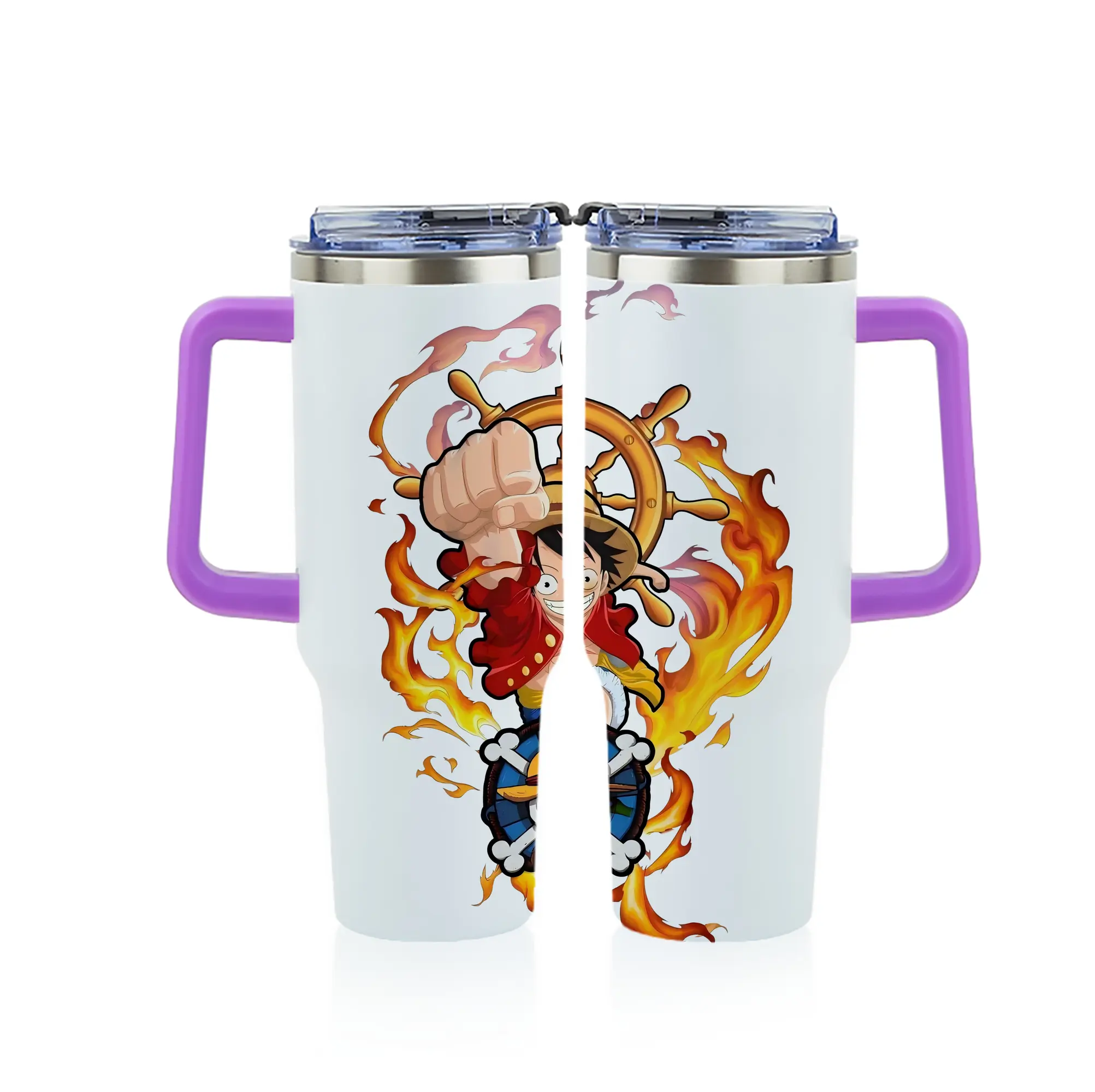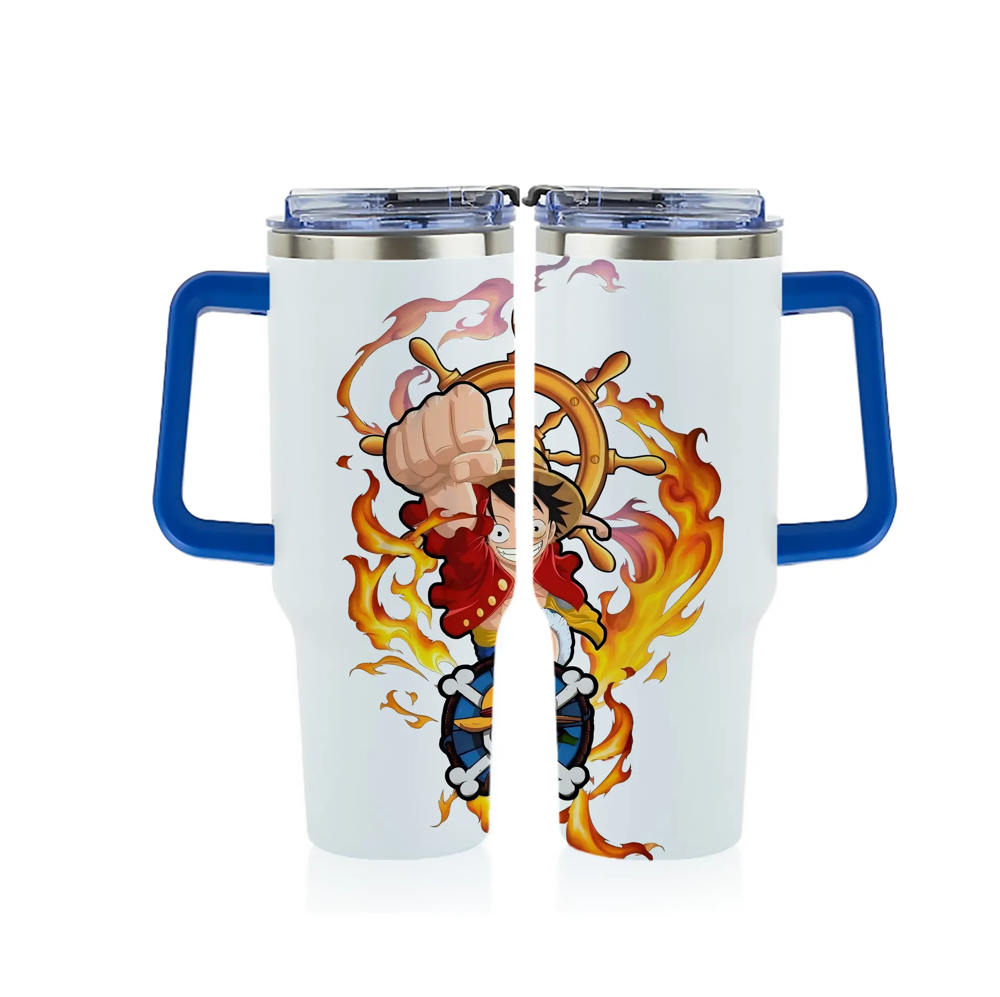ワンピース グッズ モンキー・D・ルフィ - 1200mL フルプリント車用タンブラー ・ 304ステンレス 内側 ・ 201ステンレス 外側 ・ 保温 保冷 ・ 通勤 ドライブ アウトドア用