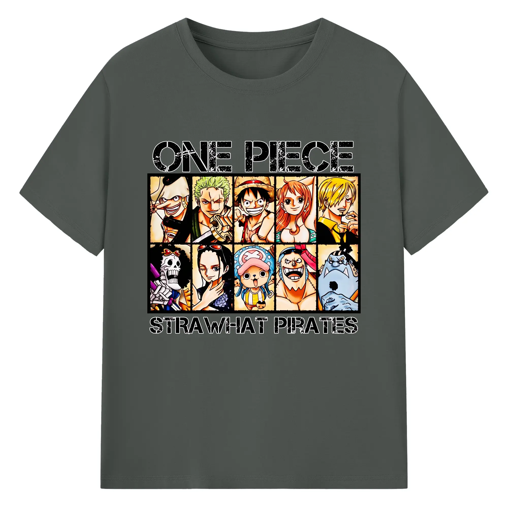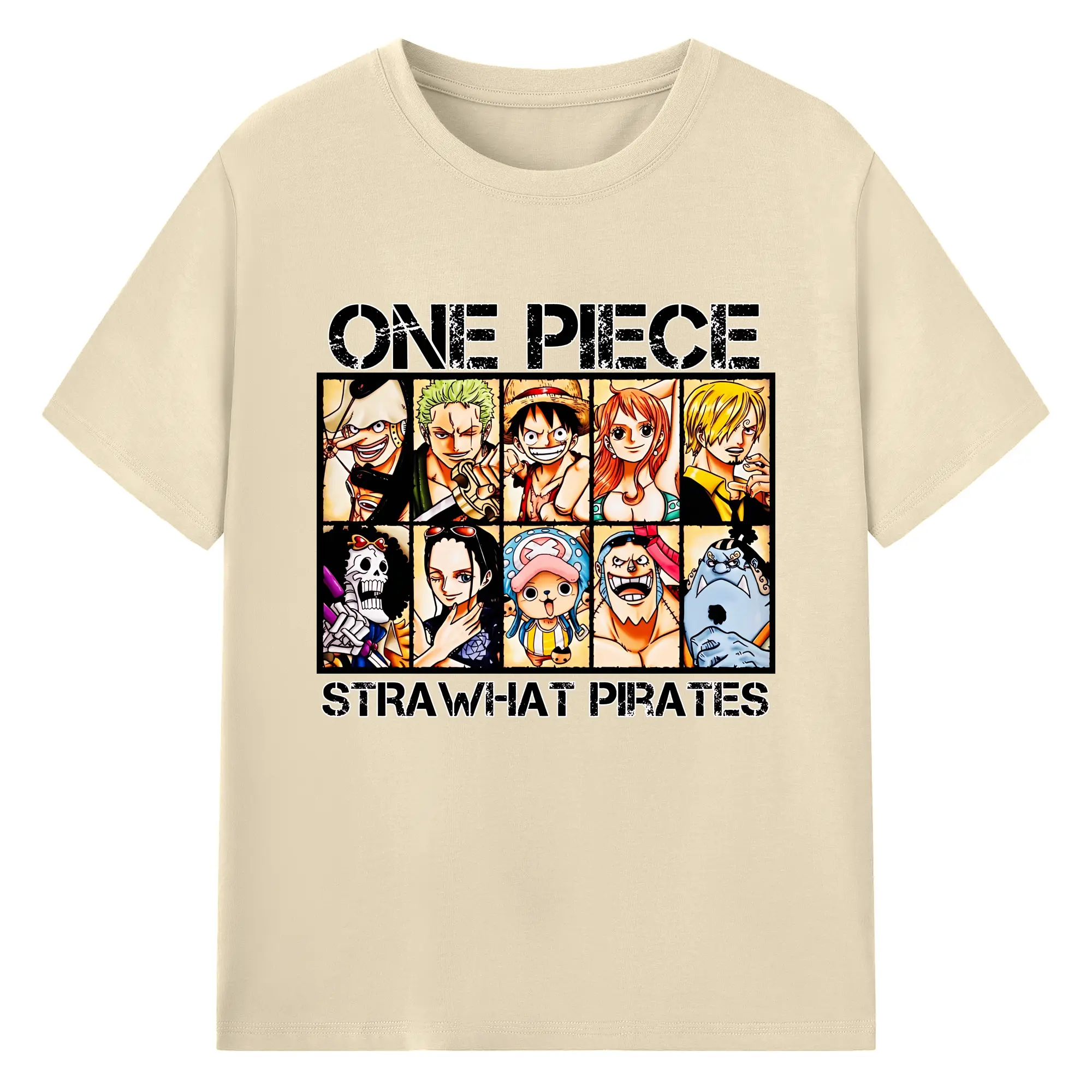 ワンピース グッズ モンキー・D・ルフィ - 綿100% ヴィンテージ風 半袖Tシャツ ・ フロントプリント ・ 柔らか肌触り ・ 通気性 快適 ・ スポーツ カジュアル 外出用
