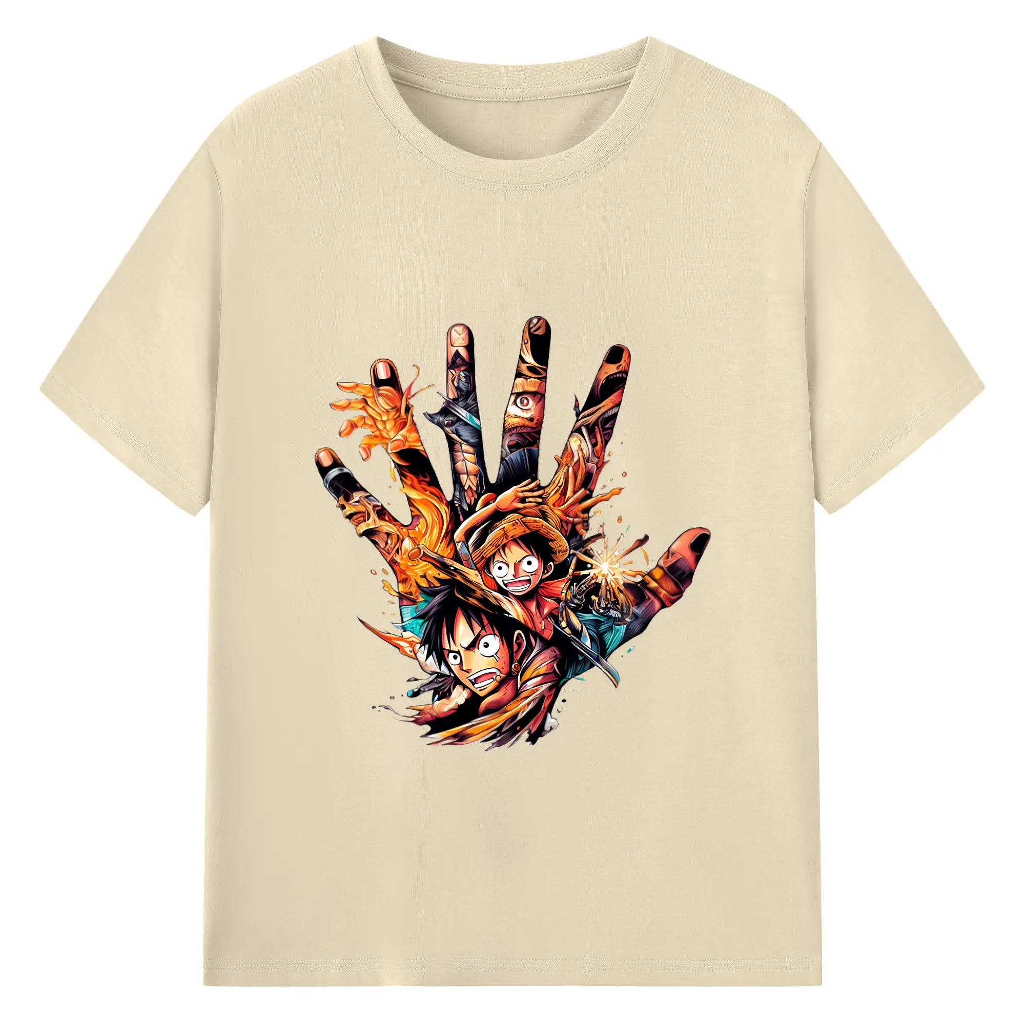 ワンピース グッズ モンキー・D・ルフィ - 綿100% ヴィンテージ風 半袖Tシャツ ・ フロントプリント ・ 柔らか肌触り ・ 通気性 快適 ・ スポーツ カジュアル 外出用