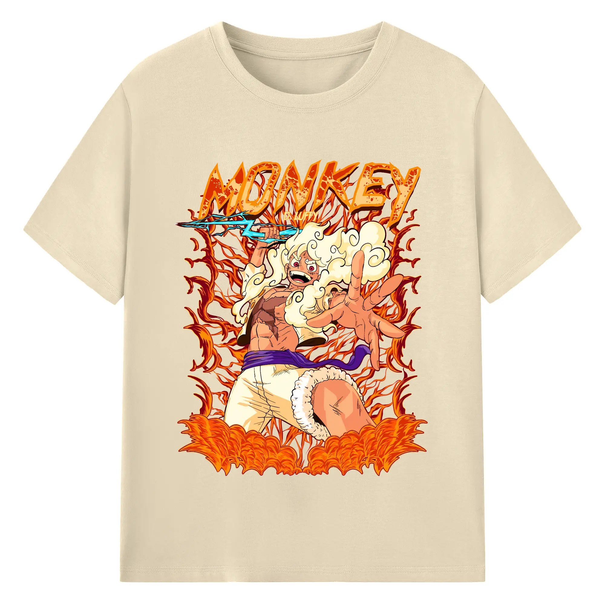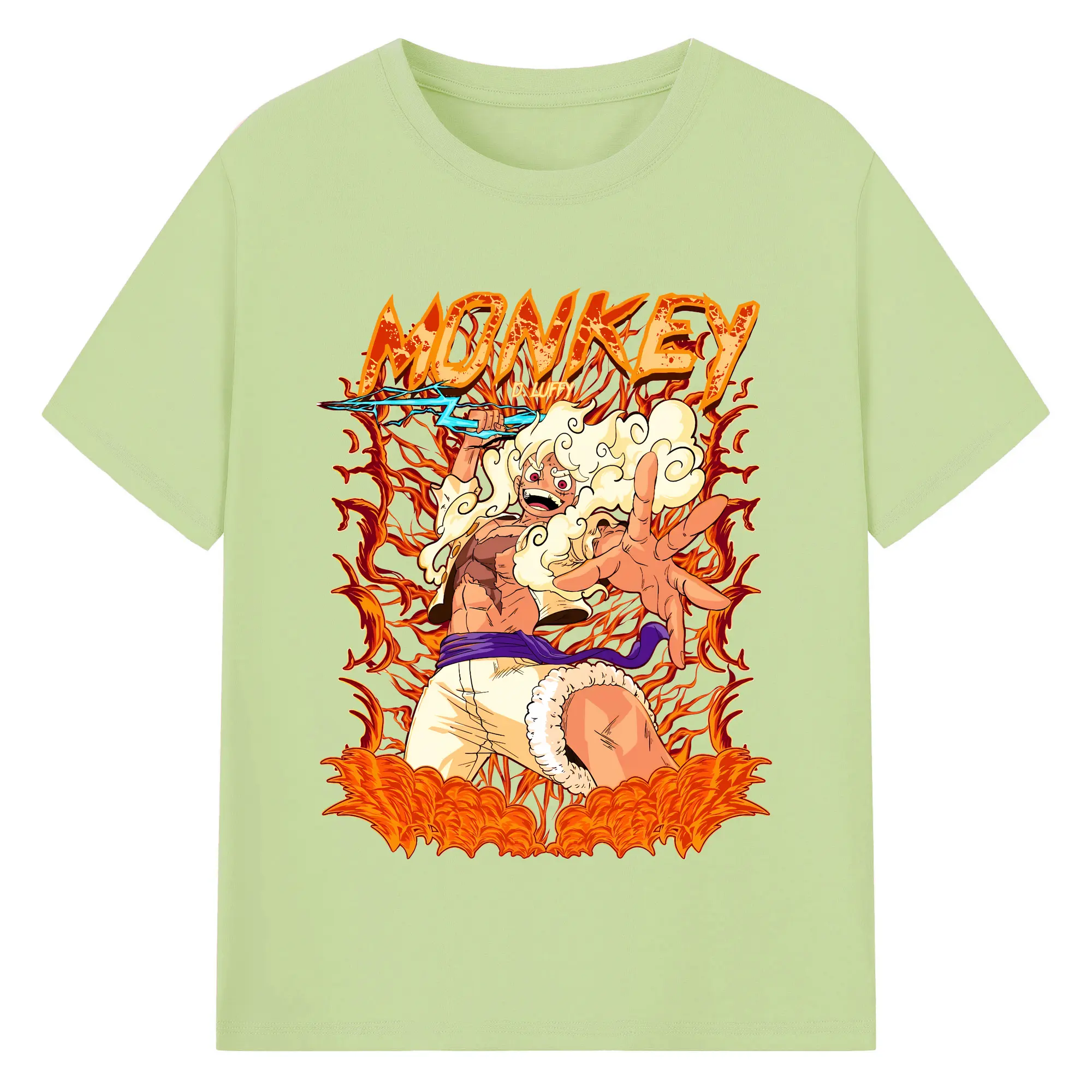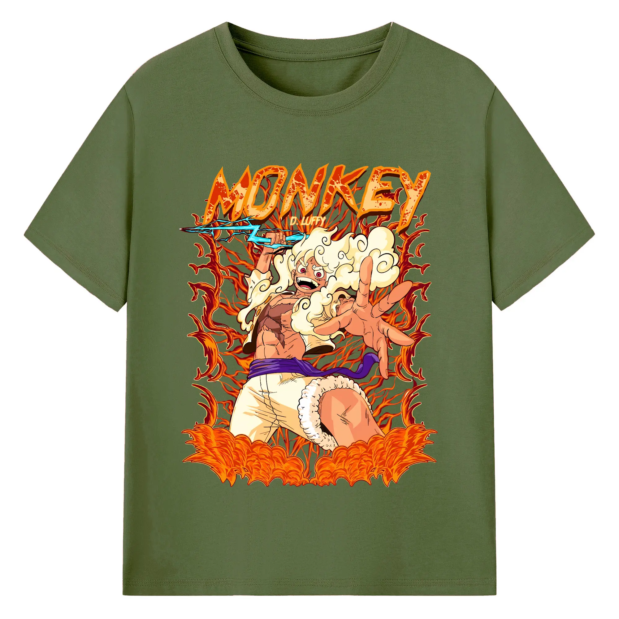 ワンピース グッズ モンキー・D・ルフィ - 綿100% ヴィンテージ風 半袖Tシャツ ・ フロントプリント ・ 柔らか肌触り ・ 通気性 快適 ・ スポーツ カジュアル 外出用
