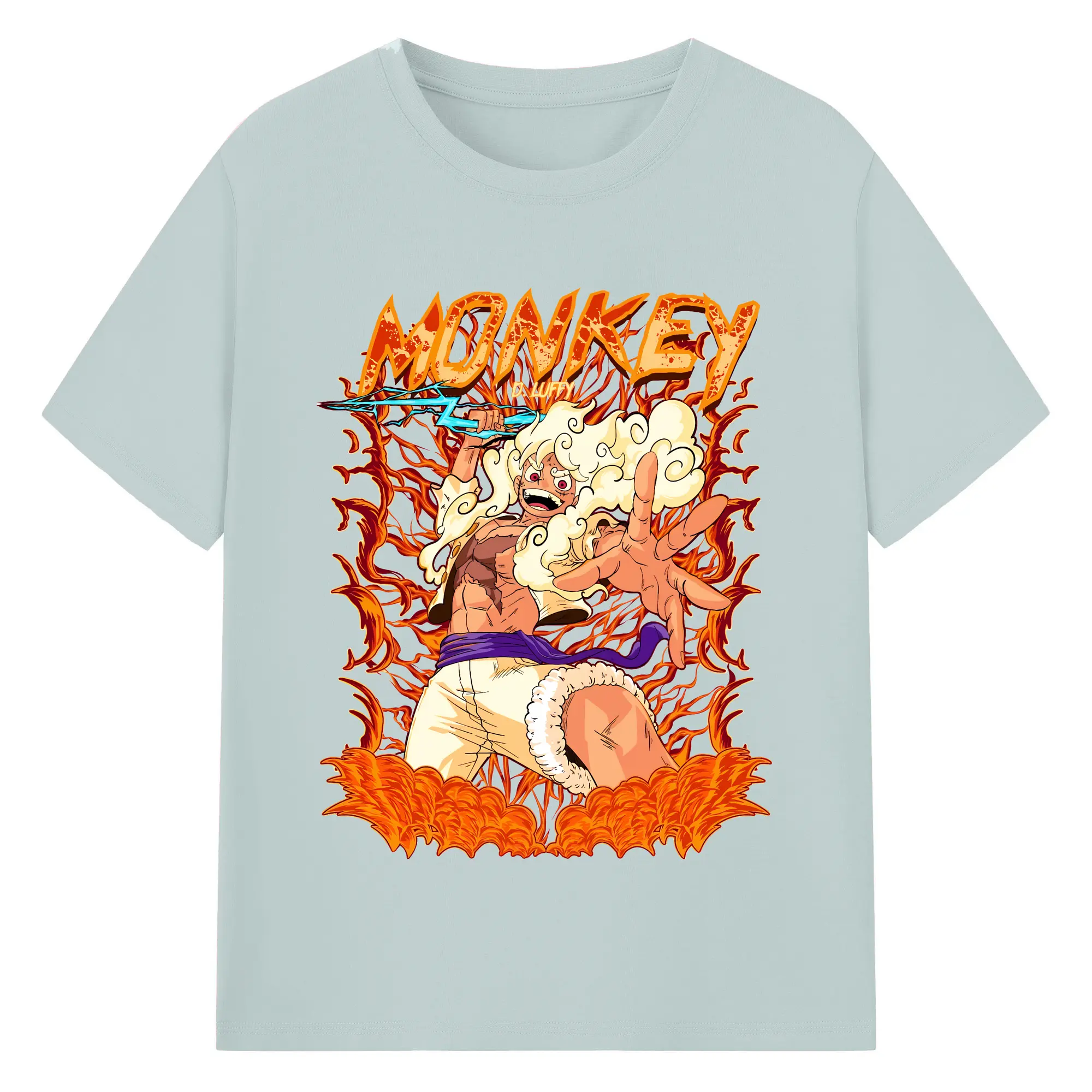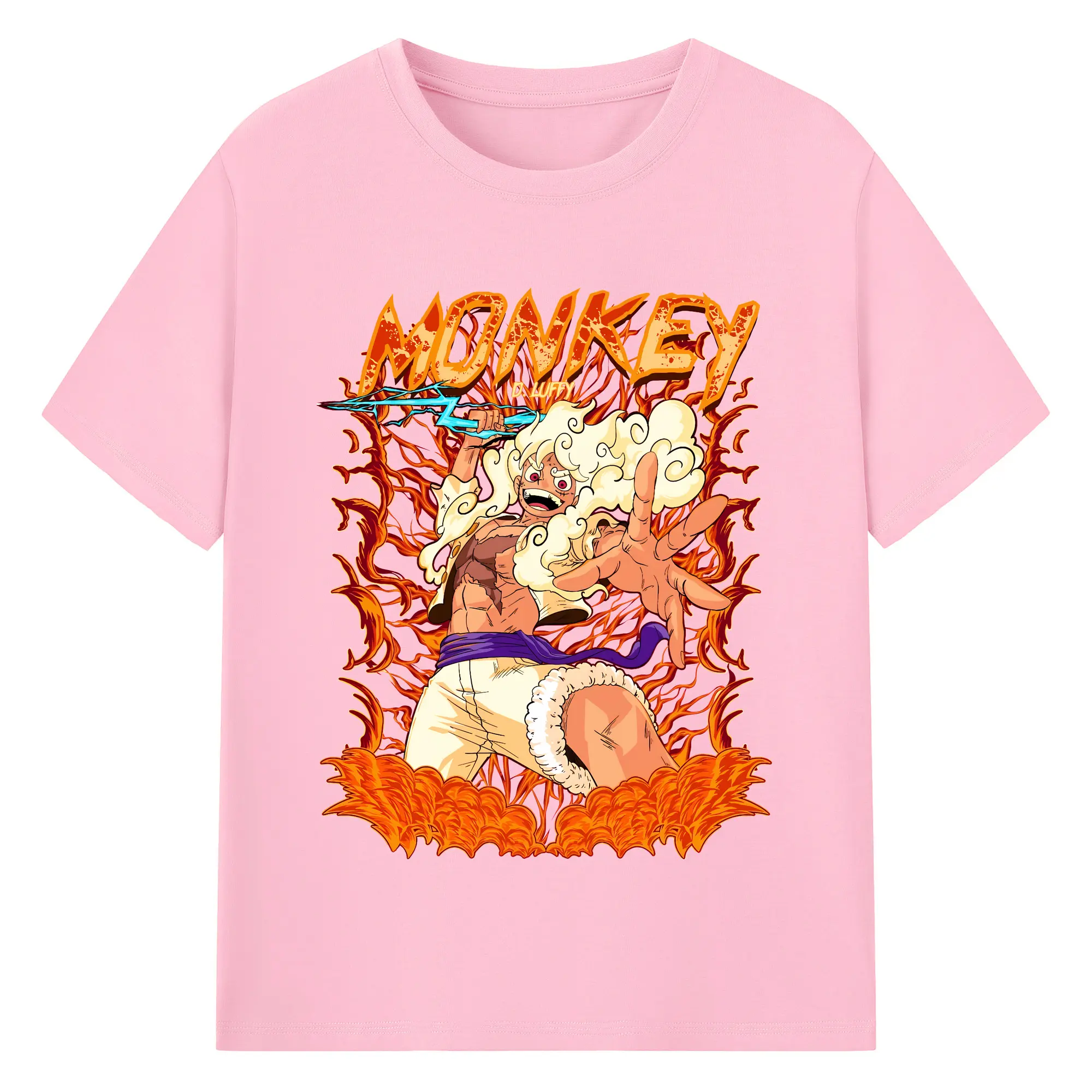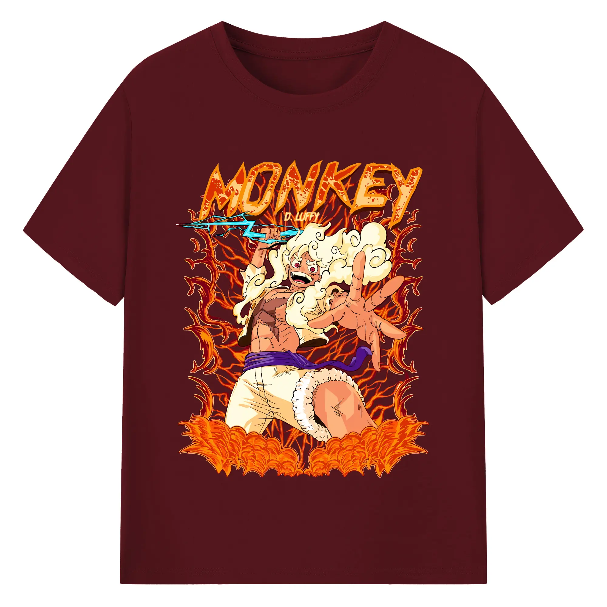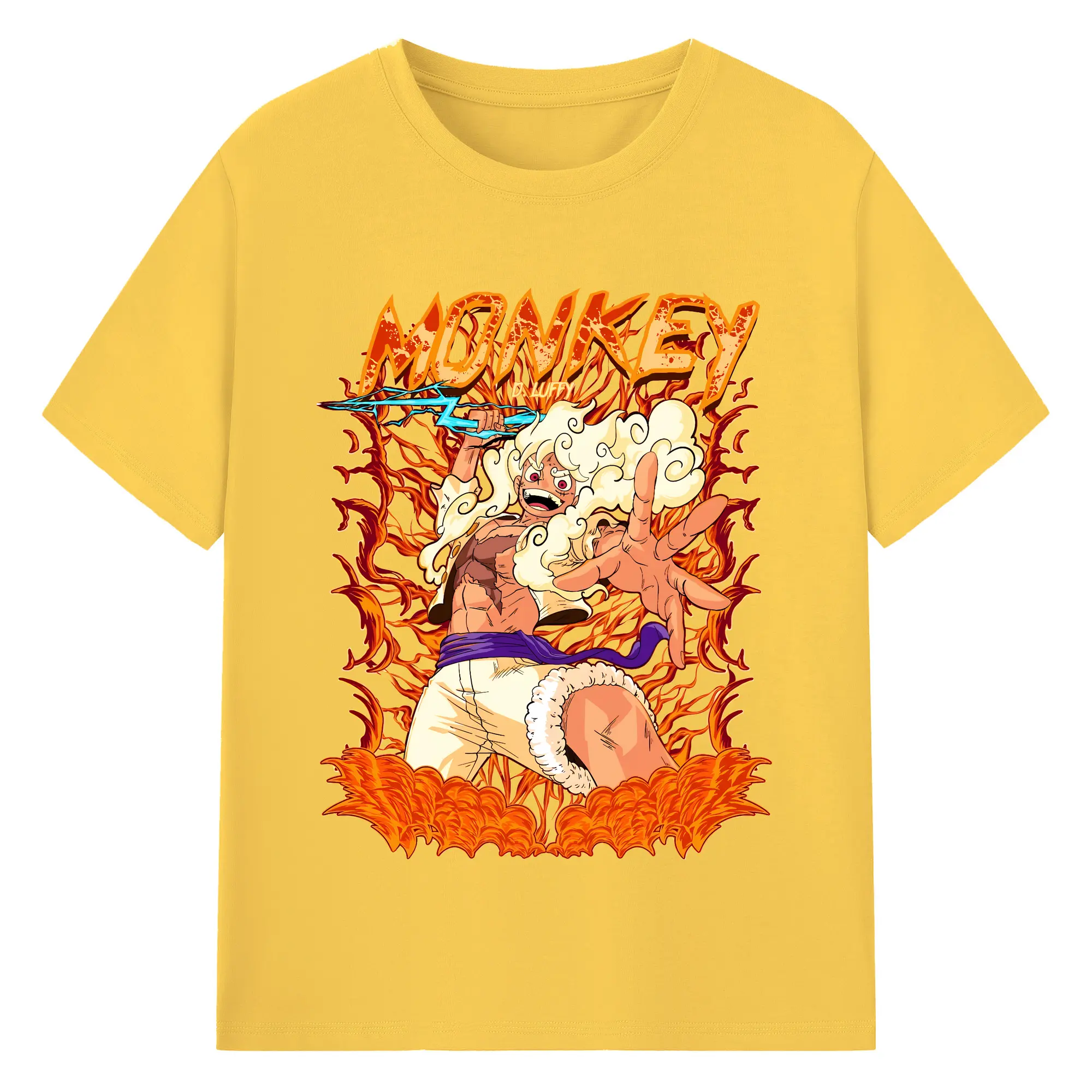 ワンピース グッズ モンキー・D・ルフィ - 綿100% ヴィンテージ風 半袖Tシャツ ・ フロントプリント ・ 柔らか肌触り ・ 通気性 快適 ・ スポーツ カジュアル 外出用